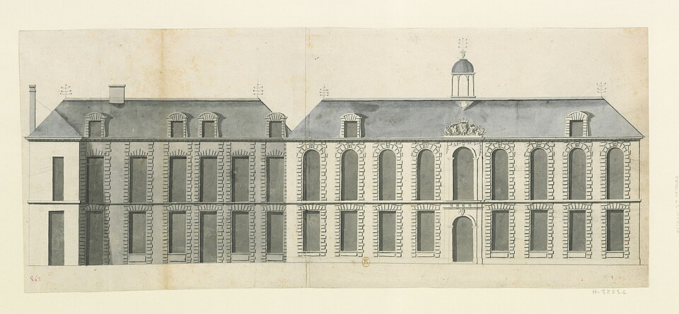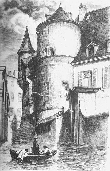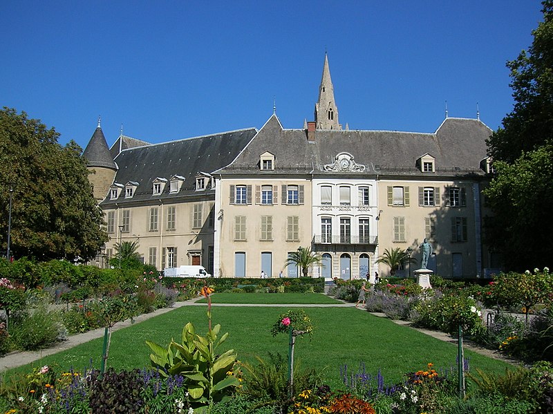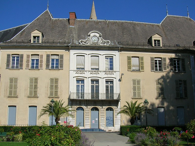 La chapelle de l’abbaye des Augustins et sa sacristie, attenantes au site, sont construites à partir de 1317 en utilisant le mur d’enceinte de la ville comme chevet; la grande baie axiale est percée dans la seconde moitié du xiv e siècle. Aux xve et xvie siècles la nef est prolongée, un portail est ouvert sur la ville et un clocher est élevé en 1508 au-dessus d’une tour de défense; la chapelle sert au culte paroissial de 1570 à 1647 et fait l’objet de réparations en 1579. Au xvi i e siècle, les fenêtres en arc brisé de la nef sont murées au profit des grandes baies actuelles de la façade est, la chapelle du Rosaire est édifiée au‑dessus de la galerie ouest du cloître et, en 1633, un plafond lambrissé couvre la nef et le chœur. À la Révolution, la commune acquiert les bâtiments de l’abbaye et l’église redevient paroissiale; au xix e siècle le diocèse remplace en 1855 le plafond lambrissé par de fausses voûtes d’ogives ornées en plâtre, puis le sol de l’église est refait en ciment en 1882 et les anciennes dalles, en partie funéraires, sont réutilisées dans le cloître.