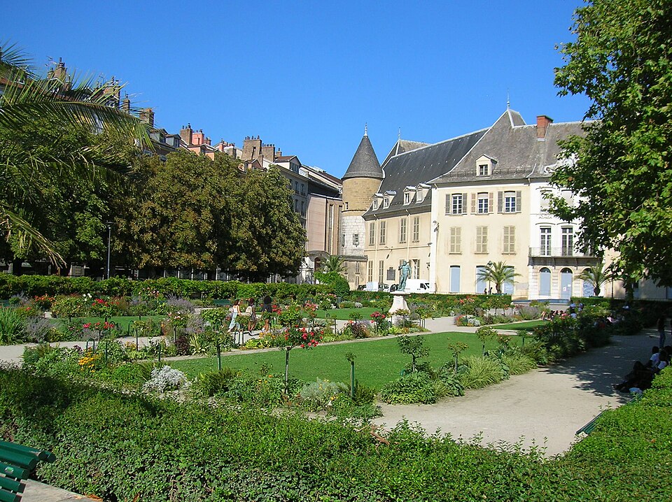 Le jardin de ville, issu du « pré de la Trésorerie », est transformé en jardin pour l’hôtel particulier en 1620 et organisé depuis sa création sur trois niveaux reliés par des escaliers: un jardin de fleurs avec un bassin sculpté par Jacob Richier, une partie boisée dite bosquet et une terrasse plantée de marronniers reliant le quai de l’Isère à la rue Montorge. La fontaine des Caveaux est aménagée dans la terrasse en 1676 par l’architecte Jean Alluys et refaite en 1887; vers 1780 des vases à l’antique de Jacques Argoud ornent les piliers du mur. Après l’acquisition par la ville un jardinier est employé pour l’entretien; le marronnier planté par Lesdiguières se dessèche et est abattu en 1851. Au xixe siècle sont installés la grille côté rue Hector‑Berlioz, un kiosque à musique en 1870 et diverses sculptures, dont Le Torrent d’Urbain Basset qui restera dans le jardin jusqu’à son déplacement au musée de Grenoble après un acte de vandalisme en 2011; une copie a été réinstallée. Une statue d’Hercule venue du parc de Vizille y est aussi placée au xviii e siècle, restaurée après sa détérioration et remplacée par une copie conservée aujourd’hui. Le jardin, d’environ 1,3 hectare, conserve des éléments de patrimoine tels qu’un baromètre anéroïde fabriqué à Grenoble et demeure un espace vert central cité par Stendhal; il accueille des manifestations culturelles contemporaines comme le festival Cabaret frappé. L’hôtel et le jardin sont accessibles aux piétons depuis les stations Victor Hugo et Hubert Dubedout – Maison du Tourisme, desservies par les lignes A, B et D du réseau de tramway.