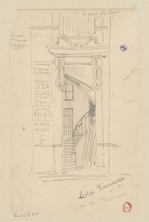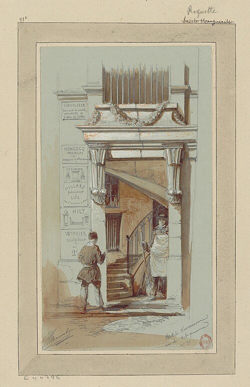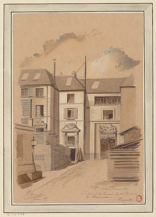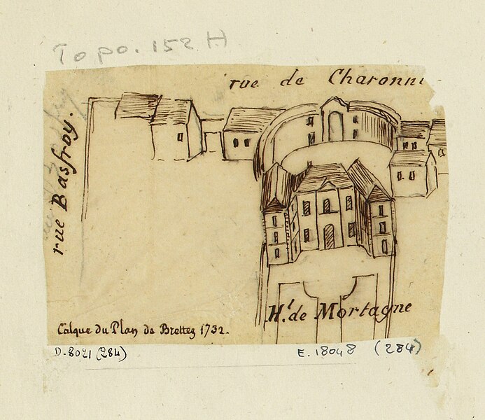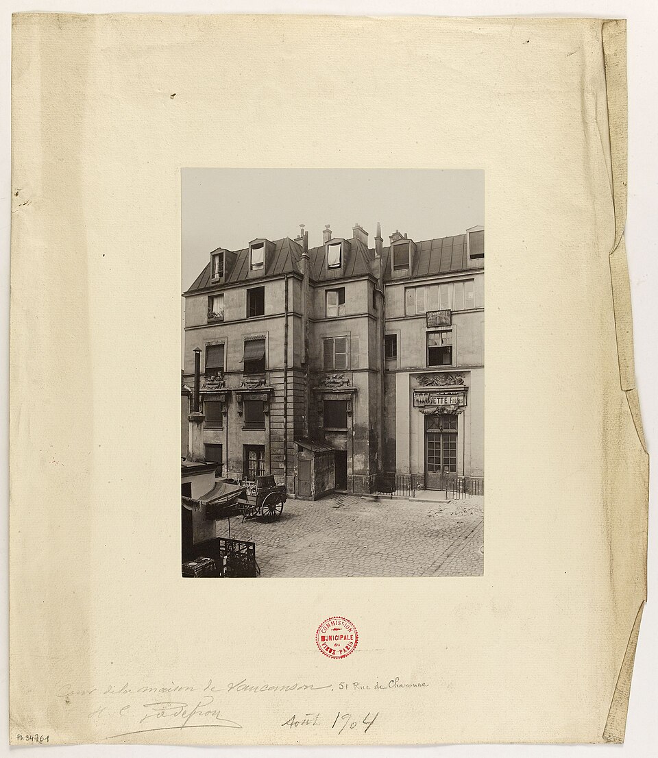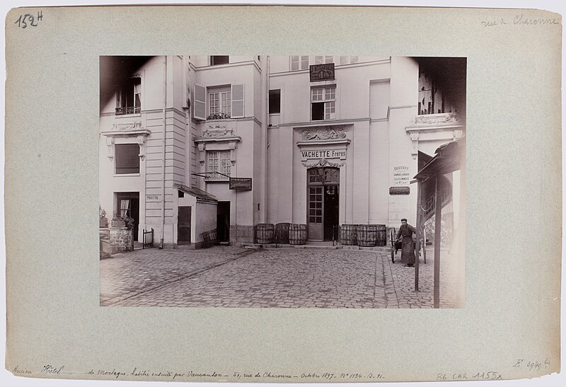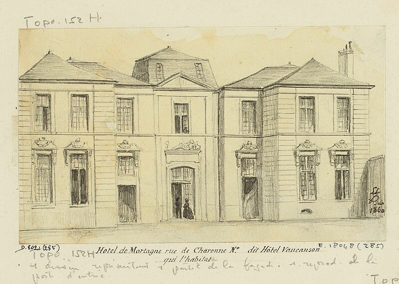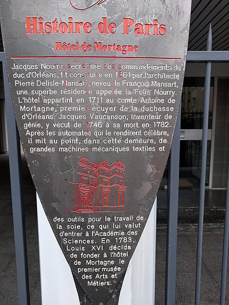 L'ancien hôtel de Mortagne, situé aux 51-53 rue de Charonne, a été construit en 1661 par l'architecte Pierre Delisle-Mansart pour Jacques Nourry ; il fut d'abord connu sous le nom de folie Nourry. En 1711, la propriété appartient au comte Antoine de Mortagne, puis elle devient la résidence de Jacques de Vaucanson, qui y vit de 1746 à sa mort en 1782 et y met au point une grande partie de ses automates et métiers à tisser la soie. À la mort de Vaucanson, ses machines sont léguées au roi et, en 1783, Louis XVI achète l'hôtel pour y installer le Cabinet des mécaniques du roi, ancêtre du musée des Arts et Métiers. Alexandre-Théophile Vandermonde, conservateur du musée de 1785 à 1792, y enrichit les collections de plus de cinq cents machines. Après le transfert du musée en 1800 vers les bâtiments de l'ancien prieuré Saint-Martin-des-Champs, le site est mis en 1814 à la disposition de l'inventeur Grégoire, qui y installe une manufacture de tissage du velours. Vendu ensuite par l'État, l'hôtel connaît de nombreux propriétaires et se détériore fortement au cours du XXe siècle. Sa restauration débute à la suite de la vente d'une partie du terrain donnant sur la rue de Charonne, où un immeuble d'habitation de six étages a été élevé et masque désormais la façade sur la rue ; l'hôtel reste toutefois visible depuis le passage Charles-Dallery. Les façades avant et arrière sont inscrites au titre des monuments historiques le 19 octobre 1928 et un panneau Histoire de Paris rappelle son histoire aux numéros 51-53. Diderot aurait situé une partie de son roman La Religieuse dans le cadre de cet hôtel, attribution signalée comme à confirmer.