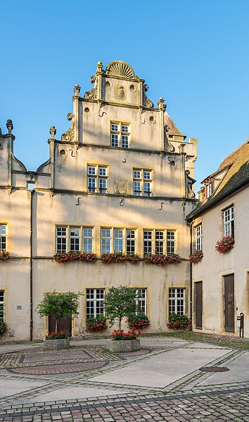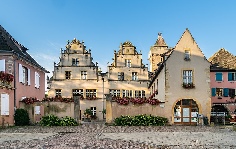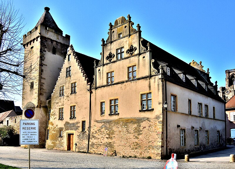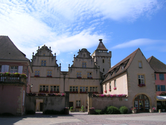 L'ancien hôtel de ville de Rouffach, situé 8 place de la République, comprend pour sa partie ouest le premier édifice probablement construit dans le dernier quart du XVe siècle. Il apparaît sur la vue de la ville de 1548 par Munster, doté de deux pignons à redents. En 1581 la ville décida son agrandissement et confia à l'architecte municipal Frantz Baur l'édification d'un second corps de bâtiment parallèle ; il conserva le pignon primitif sur le mur d'enceinte au sud et remania la façade sur la place pour former un ensemble homogène à deux pignons semblables. Au rez-de-chaussée se déroulaient les fêtes des corporations, tandis que l'étage accueillait les réunions du magistrat municipal. Une colonne de fenêtre porte les initiales de Frantz Baur et la date 1581 ; d'autres initiales, W. B., n'ont pas été identifiées. Un incendie affecta l'aile ouest dans la deuxième décade du XVIIIe siècle ; la reconstruction fut menée par l'architecte municipal Joseph Bisatz, qui refit une façade nord identique à celle de F. Baur. À l'intérieur, une colonne de fenêtre porte les initiales I.B.S. et la date 1721, sans que l'interprétation de ces lettres soit formellement établie. Ces colonnes, qui portaient des écus armoriés, ont été bûchées à la Révolution. Après la construction d'un nouvel hôtel de ville plus près de l'église Notre-Dame, le bâtiment accueillit une école, puis en 1870 l'école d'agriculture, ce qui entraîna le percement de nouvelles ouvertures et des transformations intérieures. Abandonné et sans entretien durant la première moitié du XXe siècle, il fit l'objet d'une restauration importante en 1973 sous la direction de l'architecte en chef des Monuments historiques Bertrand Monnet. Les élévations extérieures furent soigneusement remises en état, tandis que l'intérieur fut profondément remanié : suppression du local voûté des archives au premier étage dans l'aile est, suppression de plusieurs escaliers (un escalier en vis contre le mur sud ayant déjà été supprimé auparavant) et déplacement d'une porte à chambranle mouluré du XVIe siècle. Un grand espace de réunion fut aménagé au premier étage pour les associations. L'édifice est classé au titre des monuments historiques depuis 1921.