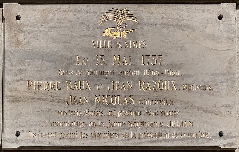 L'ancien Hôtel-Dieu de Nîmes, situé 25-27 rue Jean-Reboul et 12 rue de la République, abrite depuis 1936 les locaux de la Chambre de commerce et d'industrie de Nîmes et est inscrit au titre des monuments historiques depuis 2000. Fondé en 1313 par Raymond Ruffi comme établissement de douze lits, il a fonctionné comme hôpital jusqu'en 1934. Agrandi en 1483, il fut saccagé au XVIe siècle pendant les guerres de Religion puis remis en état, avec des reconstructions notables de la chapelle en 1660 et du cloître en 1663. Un portail monumental est attribué à Dardalhon en 1740. Le chœur de la chapelle, placée sous le vocable de saint Joseph, présente un plafond à l'italienne avec voussure et un décor peint imitant le marbre; le maître-autel, son retable en marbre et la table de communion sont l'œuvre de Mazzety (1783). Le grand quadrilatère dénommé hôpital Ruffi a été édifié d'après les plans de l'architecte Charles Durand en 1830, qui a également réalisé la façade actuelle. L'ensemble a été mutilé par la destruction du portail de Charles Durand en 1937 et par la disparition du cloître en 1978. Le bâti forme un U ouvert sur la rue de la République, composé de trois corps de bâtiments autour d'une cour d'honneur, avec un corps principal de deux étages et un grand escalier au fond de la cour. L'édifice se situe dans le département du Gard, en Languedoc-Roussillon.