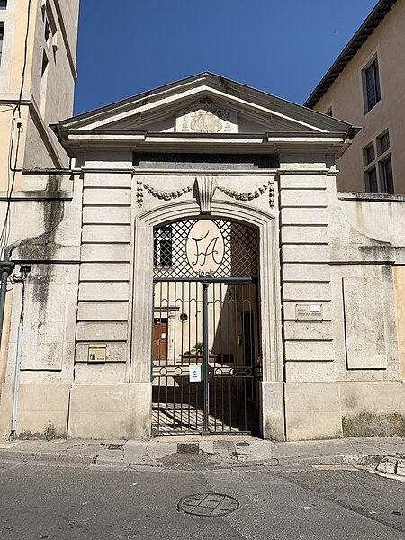 Chapelle sise 25, rue Jean-Reboul ; façades et toitures avec le grand escalier de l'actuel foyer Maurice Albaric sis 27, rue Jean-Reboul ; façades et toitures, grand escalier et salle des séances située au premier niveau de l'actuelle Chambre de Commerce et d'Industrie sise 12, rue de la République (cad. EZ 24, 25, 547) : inscription par arrêté du 13 octobre 2000