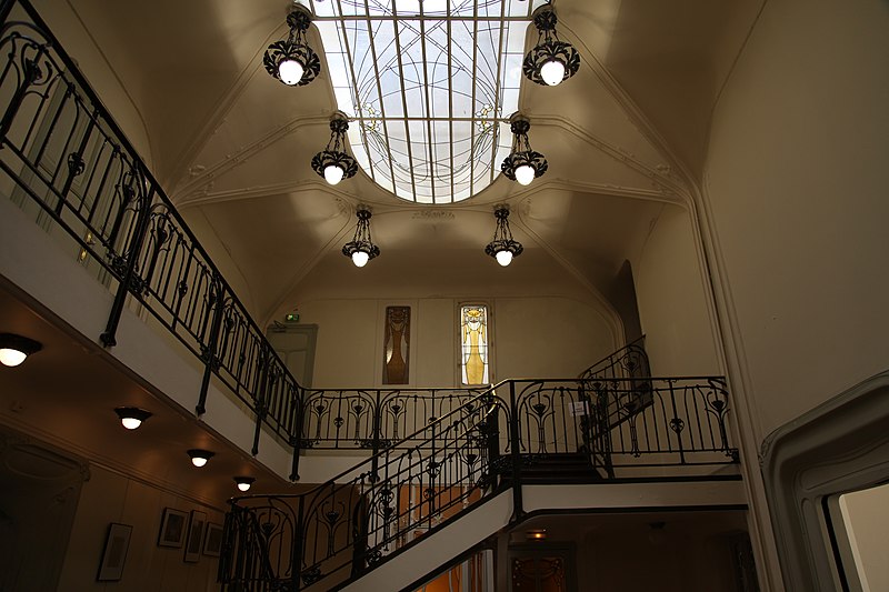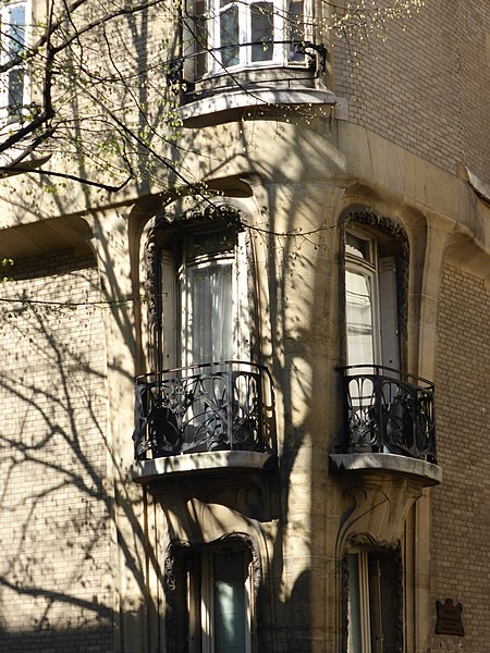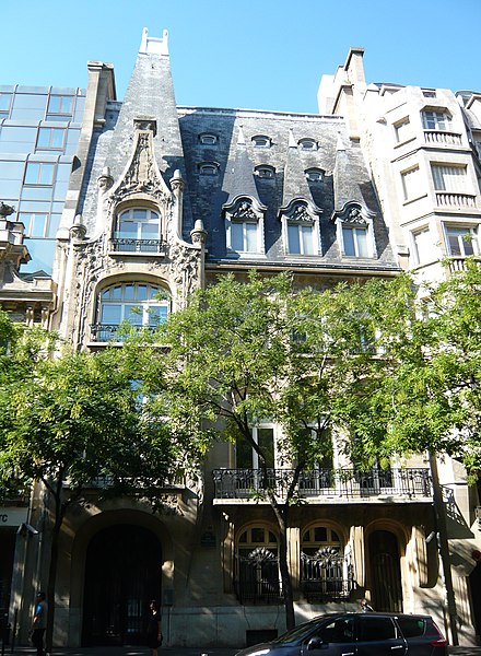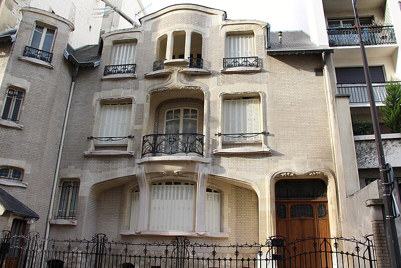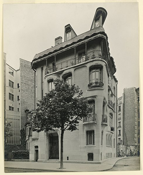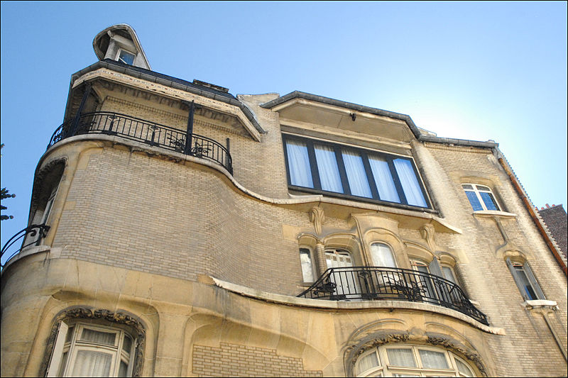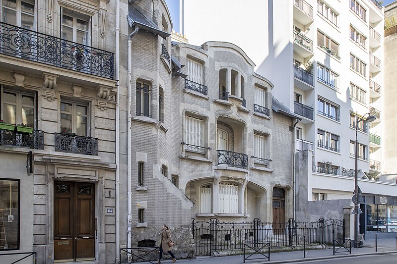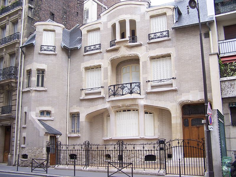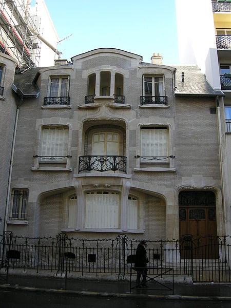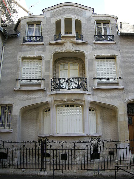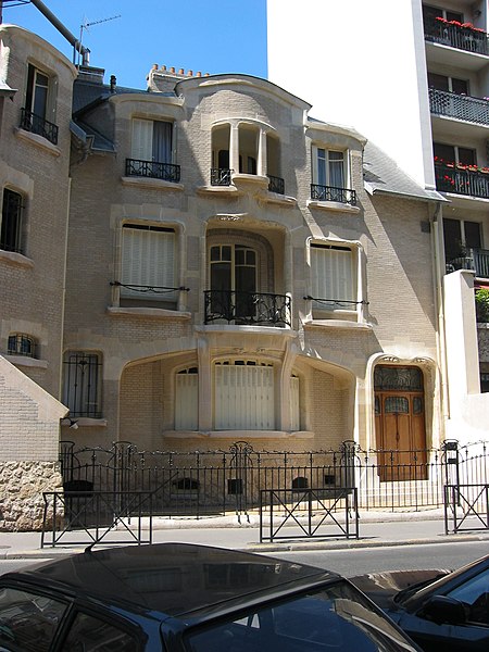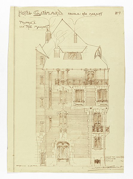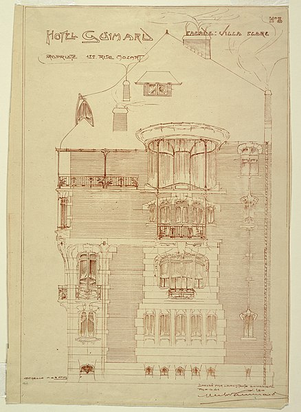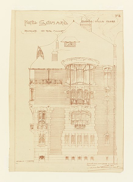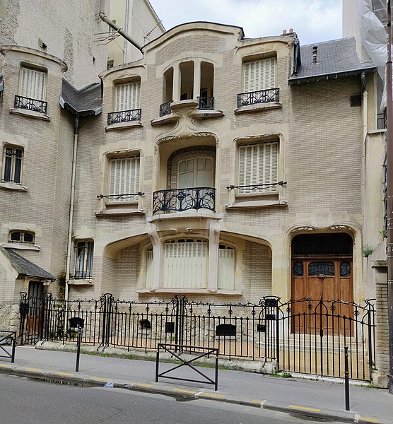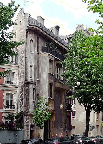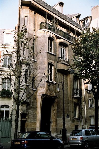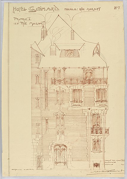 L'hôtel Guimard, situé au 122 avenue Mozart dans le 16e arrondissement de Paris, a été construit par Hector Guimard, figure majeure de l'Art nouveau, pour y abriter son agence, son domicile et l'atelier de son épouse. La parcelle triangulaire fut acquise en 1909 ; une demande de permis de construire datée du 14 juin 1909 précéda des travaux de gros œuvre commencés en 1910 et l'achèvement de l'aménagement intérieur en 1912. Le couple y vécut de 1913 à 1930. Conçu pour tirer parti d'un terrain étroit, l'édifice en pierre et brique limite les murs porteurs à la façade extérieure, offrant un plan libre qui varie à chaque niveau. Cette liberté de plan aboutit au premier étage à une salle à manger ovoïde imposant un mobilier spécialement conçu. Guimard renonça à un escalier encombrant et desservit les étages par un ascenseur tapissé de miroirs, aujourd'hui disparu. L'agence se situait au rez-de-chaussée ; au premier étage se trouvaient la salle à manger et le grand salon de plan ovale ; le deuxième étage comportait une chambre ; le troisième abritait l'atelier de Mme Guimard et une chambre d'amis, tandis que trois pièces pour les domestiques occupaient les combles. Architecte et maître d'œuvre de son propre projet, Guimard réalisa aussi les éléments intérieurs — moulures, vitraux, meubles, objets et tissus — pour créer l'harmonie stylistique caractéristique de l'Art nouveau. Après leur départ, en 1930 Guimard proposa d'offrir l'immeuble à l'État pour en faire un musée de l'Art nouveau ; à sa mort en 1942, Mme Guimard poursuivit ce projet mais l'État refusa. Contrainte, elle fit donation de parties du mobilier et le décor fut dispersé : le musée des Beaux-Arts de Lyon reçut en 1948 un ensemble de vingt-huit pièces formant la chambre à coucher ; une horloge de parquet rejoignit les collections des Arts décoratifs à Paris ; certaines pièces furent données à la Ville de Nancy puis présentées au musée de l'École de Nancy ; les boiseries et le mobilier de la salle à manger furent exposés au Petit Palais ; le reste fut donné à des musées américains ou vendu aux enchères, acquis principalement par des collectionneurs américains. Les archives furent détruites et l'immeuble fut ensuite morcelé en appartements puis vendu. Inscrit à l'inventaire supplémentaire des monuments historiques en 1964 et partiellement classé en 1997, le bâtiment est resté longtemps en mauvais état, avec des balustrades rouillées et la signature de Guimard devenue illisible. L'encadrement sculpté de la porte d'entrée a fait l'objet d'une restauration partielle en 2006. Des travaux de restauration des façades et des couvertures ont été engagés après le dépôt d'un dossier le 21 décembre 2016. L'intérieur a néanmoins été profondément modifié depuis l'origine, malgré la qualité et l'unité du décor initial.