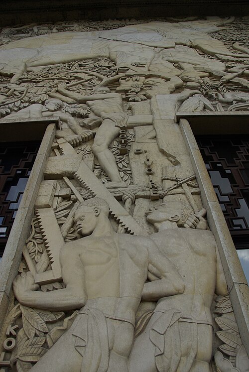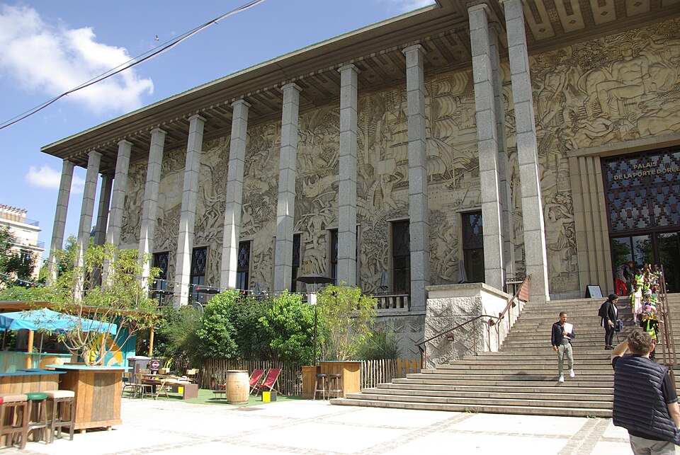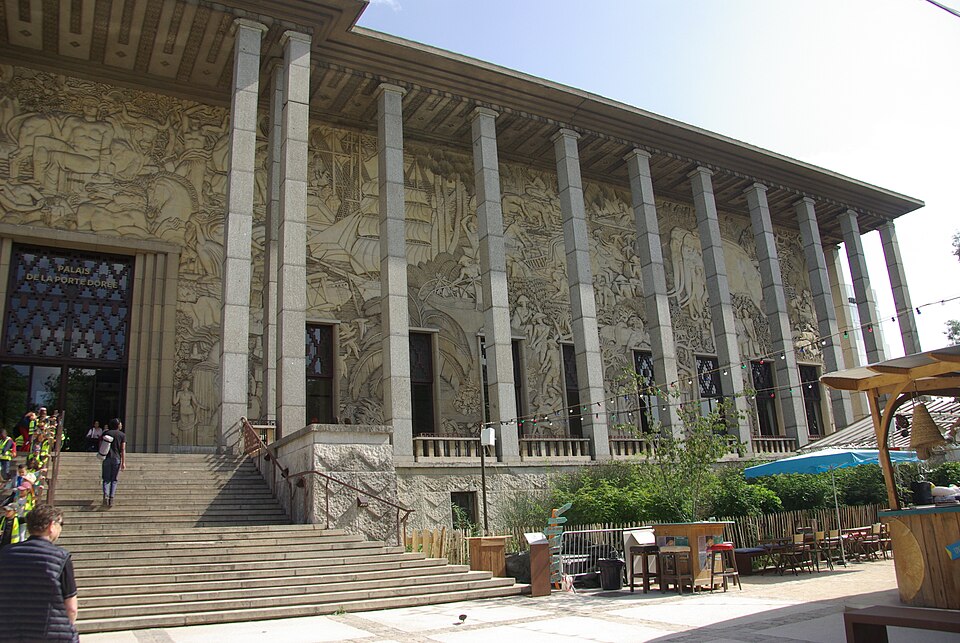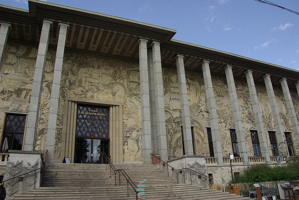 Le Palais de la Porte-Dorée, situé à la Porte-Dorée dans le 12e arrondissement de Paris, a été construit à partir de 1928 par les architectes Léon Jaussely et Albert Laprade, assistés de Léon Bazin, et inauguré en mai 1931 pour l'Exposition coloniale internationale. Conçu en matériaux durables (moellon et béton armé), il est le seul pavillon de cette exposition à avoir été édifié dans cette permanence constructive et s'étend sur 17 000 m2. L'édifice, souvent considéré comme un joyau de l'Art déco parisien, associe des références classiques — façade symétrique, péristyle évoquant les temples grecs et la colonnade — à des procédés inspirés de l'architecture marocaine, comme l'éclairage zénithal et la ventilation naturelle. La façade est ornée d'un bas‑relief monumental en pierres du Poitou, signé Alfred Janniot, qui mesure 13 mètres de hauteur sur 90 mètres de largeur et occupe 1 128 m2 ; il illustre, selon sa conception, les richesses économiques et humaines des colonies. Au‑dessus de la porte d'entrée figurent deux déesses antiques, Cérès et Pomone, entourées de scènes évoquant ports, aéroports et voies maritimes, ainsi que des motifs continentaux représentant des activités agricoles, artisanales et religieuses. L'ensemble décoratif associe des artistes et artisans renommés : peintres (Pierre‑Henri Ducos de La Haille, Louis Bouquet, André et Ivanna Lemaître entre autres), ferronniers (Edgar Brandt, Raymond Subes, Jean Prouvé), et ensemblier(s) (Jacques‑Émile Ruhlmann, Eugène Printz), ainsi que des sols et mobiliers signés par des maisons spécialisées. La salle des fêtes, aujourd'hui appelée Forum, abrite une grande fresque de Pierre‑Henri Ducos de La Haille, conçue pour illustrer les apports de la France aux colonies, tandis que deux salons ovales, ornés et meublés de façon spécifique, servaient de lieux de réception pour les autorités de l'époque. Le décor et la muséographie originels présentent une vision idéalisée et propagandiste de l'empire colonial, valorisant les bienfaits de la métropole et occultant les aspects négatifs de la colonisation. Dès sa création, le palais a également accueilli un aquarium tropical au sous‑sol, destiné à montrer la faune des colonies ; longtemps le seul aquarium parisien, il conserve aujourd'hui une riche collection de poissons d'eau douce et de mer, cnidaires, crustacés, mollusques, coraux, raies, tortues et alligators, et propose des expositions temporaires. Le bâtiment a connu plusieurs affectations muséales : Musée des Colonies puis Musée de la France d'Outre‑Mer, Musée des Arts d'Afrique et d'Océanie à l'instigation d'André Malraux, Musée national des Arts d'Afrique et d'Océanie, avant d'accueillir la Cité nationale de l'histoire de l'immigration inaugurée en octobre 2007, devenue musée national de l'Histoire de l'immigration depuis le 1er janvier 2012. L'Établissement public du Palais de la Porte Dorée, créé par décret en janvier 2012, gère le monument historique, le musée et l'aquarium, et a pour mission de valoriser l'ensemble patrimonial et de développer les projets scientifiques et culturels du site. Une partie du palais, notamment la façade, a été classée au titre des monuments historiques en 1987 et le reste du bâtiment a été inscrit la même année. Le Palais de la Porte‑Dorée témoigne à la fois d'une ambition architecturale Art déco, d'un programme décoratif et muséographique lié à l'histoire coloniale et d'une réaffectation contemporaine consacrée à l'histoire et aux cultures de l'immigration.