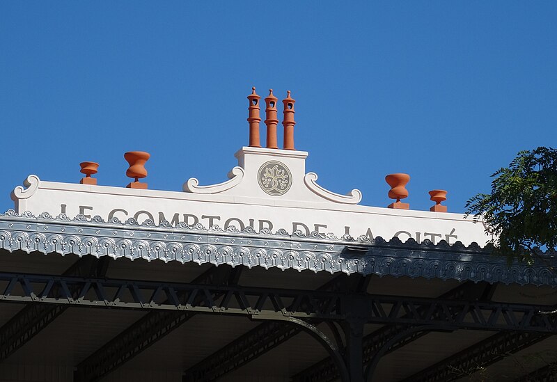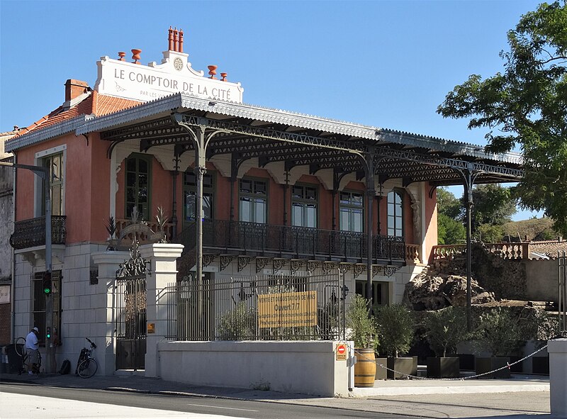 L'ancien palais de la liqueur « La Micheline », dit « La Belle Époque », a été érigé à la fin du XIXe siècle pour abriter les bureaux de la distillerie Sabatier et une salle des fêtes au premier étage. Le bâtiment présente une large façade à l'ouest et deux pignons au sud et au nord. Un important auvent, probablement ajouté en 1901, protège une grotte en rocaille et permettait le passage du haut de la bouteille Or‑Kina, réservoir alimentant le jardin en contre‑bas par l'eau de la Cité. La façade ouest est très ouverte ; au rez‑de‑chaussée, les aménagements d'origine de la maison Sabatier ont disparu. Le premier étage est entièrement occupé par la salle des fêtes, dont le décor est riche : stucs, sculptures, peintures, glaces, moulures et dorures. Sur le mur ouest, côté terrasse, deux statues féminines posées sur des sellettes encadrent le panneau central où, sous un entablement sculpté, est mis en scène un buste de Michel Sabatier. Au‑dessus, deux termes féminins soutiennent un entablement surmonté d'une lyre, symbole de la passion musicale de l'industriel. Le plafond présente un grand motif central encadré de deux cartouches avec angelots portant les initiales entrelacées de Michel Sabatier et les dates 1885, pour la fondation de l'entreprise, et 1901, pour la création de la salle.