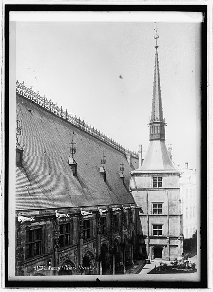 Le palais des ducs de Lorraine, ancienne demeure des ducs, est un édifice mêlant gothique flamboyant et Renaissance, situé au cœur du secteur sauvegardé de Nancy, à côté de l'église des Cordeliers. Il fut la résidence principale des ducs durant la Renaissance jusqu'à la période classique, lorsque la cour fut transférée au château de Lunéville. Il abrite aujourd'hui le Musée lorrain, qui retrace l'histoire du territoire lorrain de la préhistoire à l'époque moderne, en mettant l'accent sur le duché de Lorraine. Après la bataille de Nancy et la défaite de Charles le Téméraire, le château des ducs était dans un état de délabrement avancé. René II ordonna en 1502 la reconstruction dans le style de la Renaissance ; les travaux se poursuivirent jusqu'en 1512 sous le règne du duc Antoine, qui est sans doute à l'origine de la porterie ornée de sa statue équestre. La porterie, de style proche de celle du château de Blois, présente un impressionnant gâble flamboyant attribué à l'architecte Jacques Vauthier en 1511-1512 et une décoration typique de la première Renaissance lorraine, avec décors italiénisants tels que candélabres végétaux, angelots et coquilles. La statue équestre de 1512 due à Mansuy Gauvin fut détruite en 1792 puis remplacée par une œuvre de Giorné Viard en 1851. Le pavillon Moret est une adjonction de la fin du XVe siècle. Le palais fut largement réduit sous Léopold Ier, qui voulu construire un vaste « Nouveau Louvre » et fit démolir une grande partie du palais de René II et de la collégiale Saint-Georges ; faute de moyens et en raison de l'occupation française, le projet resta inachevé. Sur les fondations de cet ensemble inachevé, Stanislas Leszczyński fit édifier le palais du Gouverneur et son jardin. Le bâtiment fut très endommagé par un incendie en 1871 ; une partie septentrionale de la façade fut ensuite restaurée dans un style Renaissance plus affirmé. Le palais figure parmi les monuments historiques depuis la liste de 1840 ; le cartouche sculpté de la porte d'accès du gardien a été inscrit le 14 mars 1944 et le cartouche provenait autrefois de l'avenue (ou rue) Notre-Dame, édifice aujourd'hui démoli. Le bâtiment Morey, le bâtiment de la Petite Carrière avec leurs façades et toitures, le mur vestige du Louvre de Boffrand, l'ancienne petite écurie et l'ancien bâtiment scolaire adossés à ce mur, ainsi que les sols des cours du palais et de la petite carrière ont été classés le 21 décembre 2005, et les parties intérieures du bâtiment de la Petite Carrière ont été inscrites la même date. Le palais combine les deux styles architecturaux cités, la façade sur rue étant rythmée par des fenêtres Renaissance et, au premier étage, par des balcons de style gothique flamboyant. L'intérieur de la façade comprend une galerie gothique flamboyant rehaussée de contreforts, de médaillons et de baies, tandis que le premier étage affiche un langage résolument Renaissance. La grande salle à l'étage, appelée Galerie des cerfs, possédait un plafond à caissons peint, premier de ce type en France, détruit lors de l'incendie de 1871. La Tour de l'horloge abrite un escalier en colimaçon qui dessert les ailes du palais et, surmontée d'une flèche, porte les symboles du duché de Lorraine : chardons, croix de Lorraine, alérions et couronne. Le palais avait autrefois un escalier monumental à double révolution, aujourd'hui disparu. Le Musée lorrain présente aussi la cour des ducs jusqu'à l'Empire et met en lumière les artistes qui ont contribué au rayonnement de la cour, tels que Ligier Richier, Georges de La Tour, Jacques Callot, Louis Cyfflé, Clodion et Henri Bergé, ainsi que les manufactures lorraines de faïence comme celle de Lunéville. Il est complété par le Musée des arts et traditions populaires lorraines, installé dans le couvent des Cordeliers attenant, et par l'église et la chapelle des Cordeliers qui abritent les enfeus et tombeaux des ducs. Parmi les œuvres et objets conservés figurent un Jupiter gallo-romain à l'anguipède, le monument à Philippe de Gueldre, des œuvres de Georges de La Tour, une copie du Gladiateur Borghèse, une peinture de François-André Vincent (1778), des œuvres du XIXe siècle comme la scène de la découverte du corps de Charles le Téméraire, ainsi que de nombreuses vues et documents illustrant la porterie, la façade intérieure et la tour de l'horloge.