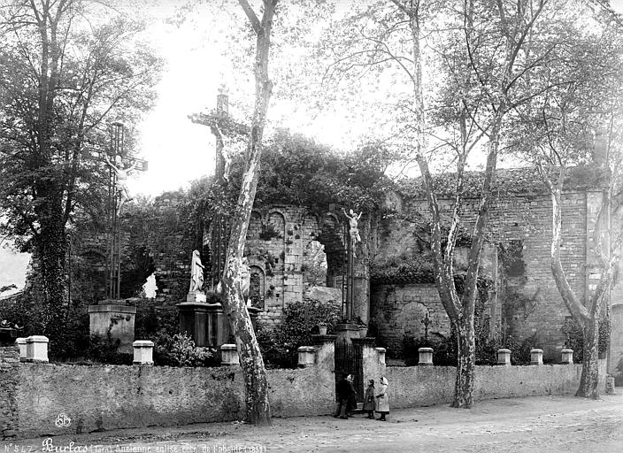Le prieuré de Burlats constitue un ensemble roman homogène implanté dans la commune de Burlats, dans le Tarn, et réunit notamment la collégiale Saint-Pierre, le pavillon d'Adélaïde et la maison d'Adam. Une église est attestée dès le Xe siècle ; une bulle de 1122 indique qu'elle était alors un prieuré-cure dépendant du monastère de Castres, puis elle semble avoir été transformée en prieuré bénédictin. Sous le patronage des Trencavel, la reconstruction de l'ensemble cultuel et conventuel est vraisemblablement engagée à la fin des années 1120 pour recevoir un nombre accru de moines. Au XIIIe siècle, des tribunes sont ajoutées le long des bas-côtés et la nef est surélevée, le berceau primitif étant remplacé par un berceau brisé. En 1318, l'érection en collégiale entraîne un agrandissement de l'église dans un style gothique. Lors des guerres de Religion la collégiale est dévastée : en 1569 les troupes protestantes s'emparent de la ville et le chapitre se réfugie à Castres puis s'installe à Lautrec, transfert reconnu en 1669. Le bâtiment subit des remises en état ponctuelles au XVIIe siècle — une chapelle reçoit des fonds en 1613-1614 — mais il est encore pillé en 1622 et incendié en 1625, ce qui détruit voûtes, clocher, cloître et bâtiments voisins. Un état de délabrement est constaté en 1642 ; le collatéral nord est réparé cette même année et des murs sont partiellement reconstruits en 1659. Après la Révolution, l'édifice se dégrade à nouveau et les bâtiments conventuels sont vendus à un particulier puis transformés pour abriter une fabrique. La commune rachète des parties ruinées en 1835, mais faute de crédits le projet de restauration échoue ; la municipalité transforme alors les ruines en logements et fait construire une nouvelle église. L'église Saint-Pierre est classée monument historique en 1845 ; une décision de consolidation est prise en 1897 et les travaux sont réalisés entre 1902 et 1907. Aujourd'hui, le bras du transept, l'absidiole et le collatéral nord sont occupés par la mairie, tandis que l'absidiole sud sert de débarras. Le pavillon d'Adélaïde est un bâtiment parallélépipédique roman de trois étages dont le dernier, percé de cinq baies romanes décorées de chapiteaux et de voussures, constitue l'élément le plus remarquable ; un bandeau ouvragé court sur la façade côté rivière et les chapiteaux portent des motifs de feuillages, chimères, griffons ou sirènes. Le rez-de-chaussée présente trois grandes arcades restaurées et aurait pu être à l'origine aveugle, servant de cave ou d'entrepôt ; le premier étage, à vocation défensive, possède une fenêtre à meneaux du XVe siècle qui remplace un arc roman, faisant du pavillon un exemple notable de l'architecture dite « raymondine ». La maison dite d'Adam, voisine, présente des baies comparables remaniées au XVIe siècle ; les salles voûtées et un moulin du XVIIIe siècle forment le soubassement des constructions qui relient le pavillon à la porte crénelée de la tour de la Bistoure et aux fortifications. La tradition et la légende entourent certains personnages liés au site : des récits évoquent Constance de France comme réfugiée à Burlats et présentent Adélaïde de Toulouse comme une figure locale ayant animé une cour d'amour réunissant troubadours, mais ces témoignages sont discutés et la présence des personnages dans les bâtiments conservés n'est pas assurée. Burlats n'est pas défiguré lors de la croisade des Albigeois, et le pavillon d'Adélaïde échappe aux destructions de cette période ; en revanche, les guerres de Religion entraînent la ruine de nombreux édifices religieux de la région. Au XVIIIe siècle le pavillon a pu servir d'entrepôt ; au début du XIXe siècle les ruines sont placées sous protection épiscopale et l'église actuelle Saint-Pierre est édifiée en 1843. En 1978, le parc naturel régional du haut Languedoc acquiert plusieurs bâtiments dont le pavillon d'Adélaïde et entreprend des restaurations sous la direction de l'architecte en chef des Monuments historiques : la charpente du XVIe siècle est réparée, les intérieurs sont dégagés des éléments du XIXe siècle, les planchers sont reconstruits et des découvertes archéologiques (baies, meurtrières, cheminée et objets) sont mises au jour et présentées lors de l'ouverture au public. L'ensemble fait l'objet de protections au titre des monuments historiques en date du 29 décembre 1981 : classement pour les ruines de l'ancienne église collégiale, pour les façades et toitures du pavillon d'Adélaïde et pour la façade sur la rivière de la maison dite d'Adam, et inscription pour le reste des bâtiments. Parmi les vestiges visibles se distinguent la façade de l'ancienne collégiale Saint-Pierre, un mur gouttereau, le portail latéral, le chevet, les détails des chapiteaux et la maison d'Adam.
