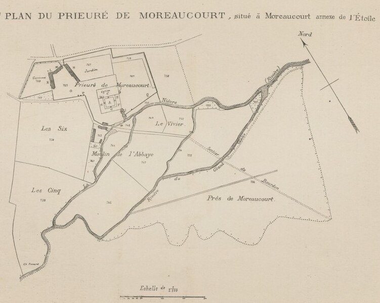 La date de fondation fait l’objet d’interprétations divergentes : la plupart des historiens la placent en 1146 et attribuent la création à Aléaume d’Amiens sur des terres appelées Moreaucourt, tandis que d’autres sources évoquent 1165 ; en l’absence de documents contemporains incontestables, la date exacte reste incertaine. Le prieuré abritait une communauté de moniales de l’ordre de Fontevraud ; une certaine Mathilde en fut prieure. Une bulle du pape Alexandre III, datée du 13 mars 1178, confirma des donations et des privilèges, et le prieuré reçut des libéralités de donateurs tels que le comte Simon de Ponthieu et le châtelain de Péronne ; il s’agrandit en 1228.