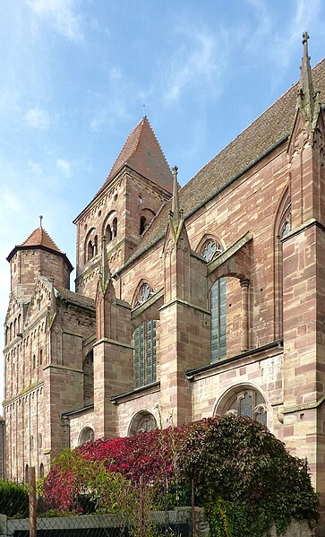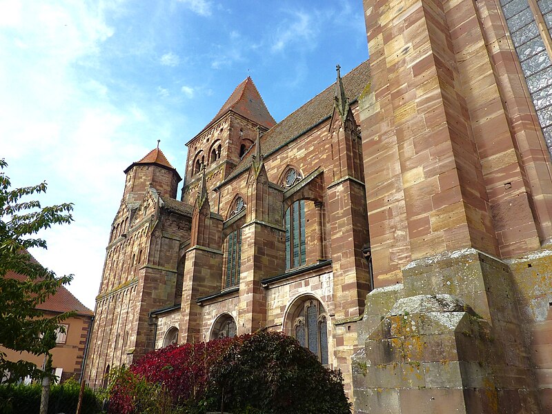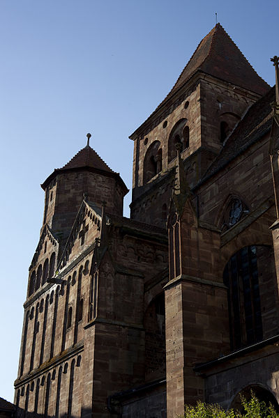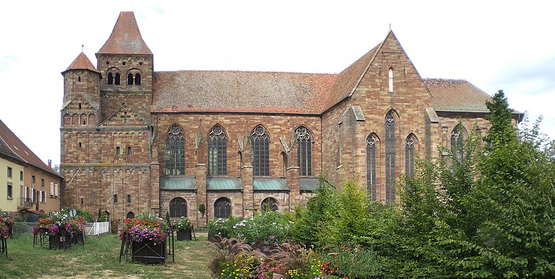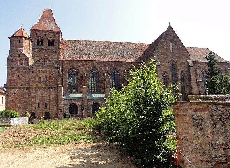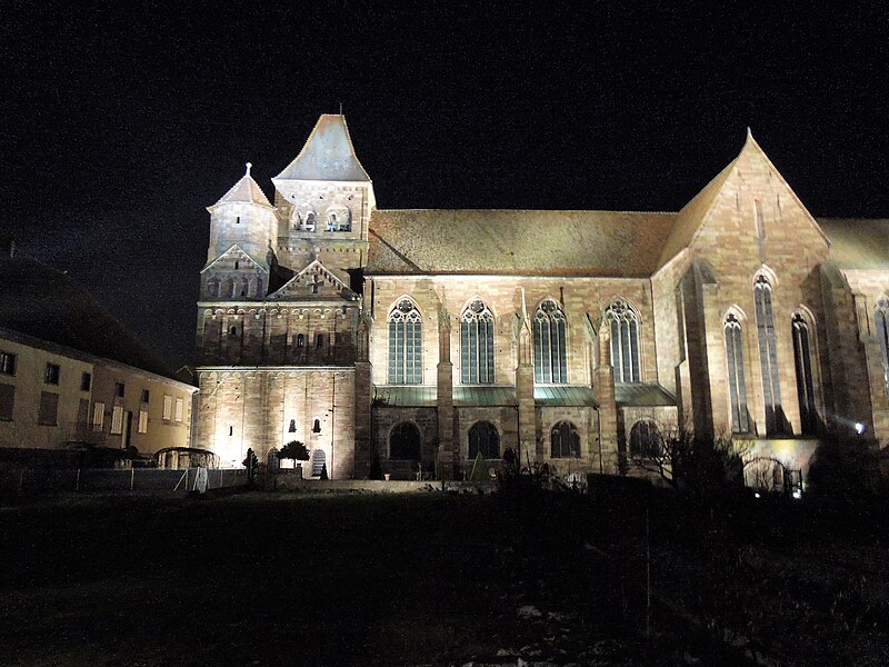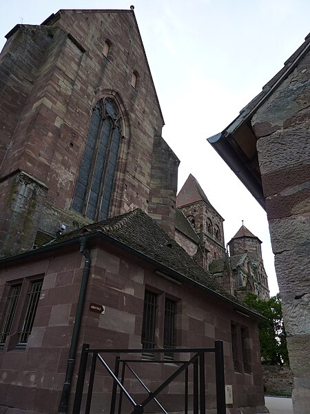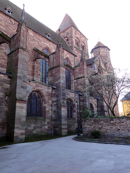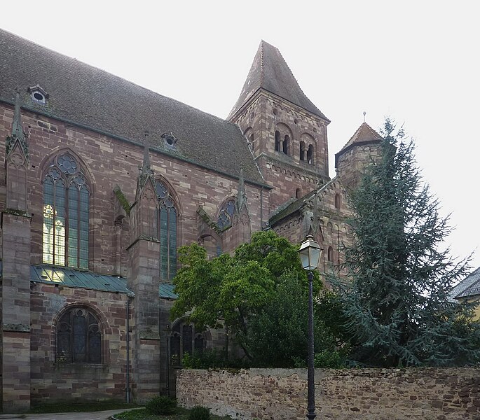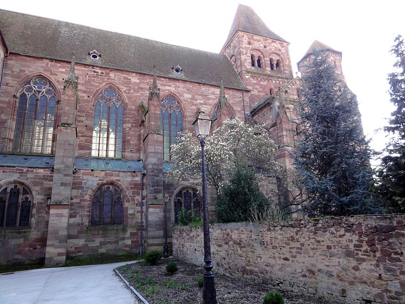 L'ancienne abbaye Saint-Étienne de Marmoutier (Bas-Rhin) est une fondation bénédictine issue, à la fin du VIe siècle, d'un groupe de moines irlandais conduit par saint Léobard. Sa création fut rendue possible grâce à la dotation du roi Childebert, qui séjourna en Alsace en 589. Des fouilles menées de 1974 à 1983 ont dégagé un bâtiment rectangulaire pouvant correspondre à cette époque. Deux incendies au VIIe siècle entraînèrent l'édification d'une nouvelle église au début du VIIIe siècle sous l'abbatiat de saint Maur, qui introduisit la règle bénédictine et donna son nom au monastère (Mauri Monasterium, Marmoutier). Abbaye royale, richement dotée par les rois mérovingiens et propriétaire de vastes domaines, elle accueillit Benoît d'Aniane qui y exerça la direction pendant dix mois en 816. Après un nouvel incendie en 824, l'abbaye fut confiée à Drogon, évêque de Metz et frère de l'empereur Louis le Pieux, puis reconstruite; les reliques des saints Céleste et Auteur y furent transférées. Sous l'abbé Oswald une nouvelle église fut élevée en 960; l'abbatiale fut ensuite rebâtie au XIIe siècle puis en partie au XIIIe siècle. La prospérité dura jusqu'au XIIe siècle avant un lent déclin lié aux inféodations et à l'influence des avoués, en particulier les seigneurs de Geroldseck. L'abbaye subit des pillages, notamment en 1525 où sa bibliothèque disparut, puis connut une période difficile pendant la guerre de Trente Ans avec l'invasion par des troupes suédoises. Le XVIIIe siècle vit un renouveau sous les abbés Anselme Moser et Placide Schweighaeuser, qui firent reconstruire les bâtiments conventuels (1747-1751) et le chœur de l'église (1761-1769), tandis qu'un projet de nouvelle façade resta inachevé à la veille de la Révolution. L'établissement monastique fut supprimé à la Révolution, vendu comme bien national, ses biens dispersés et ses bâtiments conventuels cédés à divers propriétaires et à la commune; l'église abbatiale devint paroissiale sous le vocable de Saint-Étienne. Les vestiges de l'abbaye, dont l'église, ont été classés au titre des monuments historiques dans la liste de 1840. Située sur la Route romane d'Alsace, entre Saverne et Wasselonne, l'église présente une façade romano-byzantine avec un porche à trois arcades flanqué de deux tours carrées; ces tours abritent des escaliers menant à une salle au-dessus du porche et à la grande tribune, vestige de l'église du XIe siècle servant de base au clocher du XIIe siècle. Sur la face extérieure du transept nord subsistent des restes d'une porte du XIIe siècle. L'intérieur relève du style ogival du XIVe siècle; le chœur, reconstruit au XVIIIe siècle dans un esprit ogival, comporte de remarquables boiseries en chêne sculpté et des fenêtres latérales élargies. Contre le mur ouest du transept se trouvent quatre tombeaux de la famille de Geroldseck, datés des derniers temps de la Renaissance. Les orgues, réalisées par André Silbermann en 1710, jouissent d'une réputation universelle et figurent parmi les rares instruments conservés de ce facteur; le docteur Schweitzer y vint jouer et prit l'initiative de leur restauration en 1955. Le buffet, le positif de dos et la console subsistent, de même que la disposition des jeux telle qu'elle a été conservée. Le parc campanaire comprend plusieurs cloches de notes et de poids variés, fondues entre 1707 et 1971, dont la plus ancienne (1707) ne sonne jamais avec les autres. Parmi les bâtiments survivants figurent un ancien bâtiment conventuel de 1750 utilisé comme cellier et entrepôt agricole, une ancienne bibliothèque conventuelle du XVIIIe siècle et des maisons incorporant des éléments des anciens bâtiments monastiques.