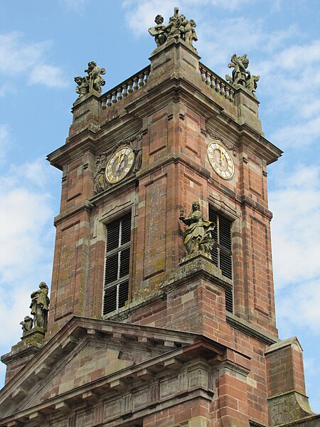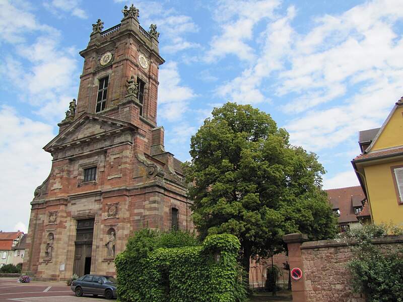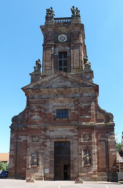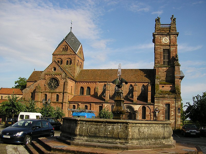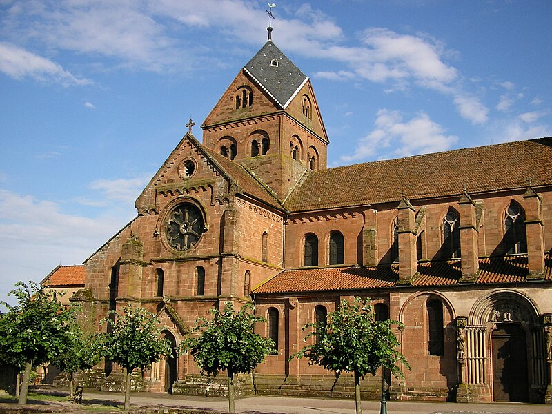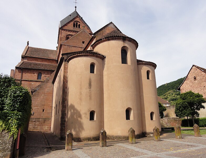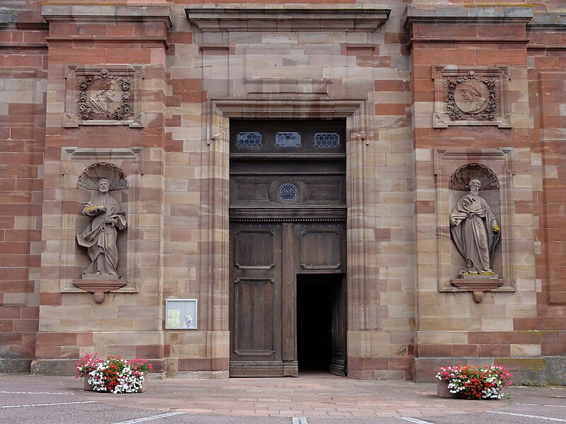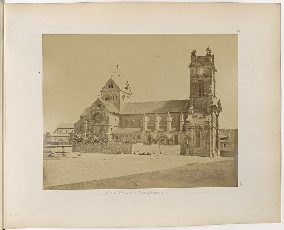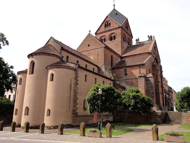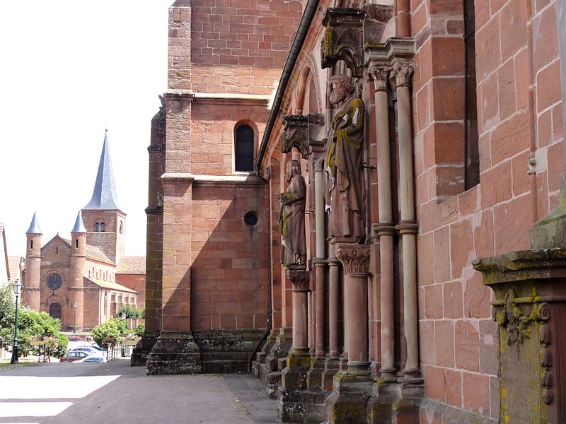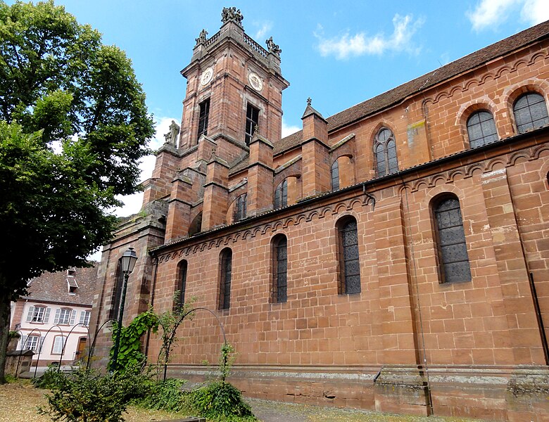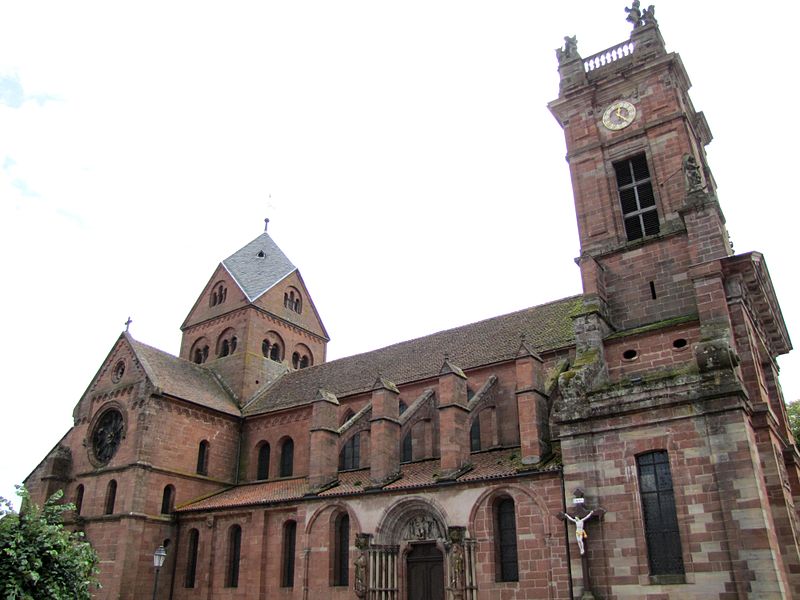 L'abbatiale Saint-Pierre-et-Saint-Paul se situe à Neuwiller-lès-Saverne, dans le Bas-Rhin, et fait l’objet d’un classement au titre des monuments historiques par la liste de 1840. On attribue sa fondation au VIIIe siècle, soit à l'évêque Sigebaud de Metz en 723, soit à saint Pirmin. Des vestiges d'une abside sous le choeur actuel pourraient remonter à cette époque, et le caveau funéraire dit « confession » est vraisemblablement lié au transfert des reliques de saint Adelphe vers 846. La chapelle de chevet date sans doute du milieu du XIe siècle; la sculpture des chapiteaux de la chapelle supérieure a été ajoutée dans la première moitié du XIIe siècle. Un incendie en 1177 entraîne la reconstruction de l'église, et des travaux sont encore mentionnés dans un texte de 1192. Le choeur, le transept et la première travée double de la nef correspondent à une campagne de construction située entre environ 1180 et 1220, tandis que le reste de la nef a été bâti entre 1220 et 1258; la charpente de la nef a été posée en 1258-1259 selon l'analyse dendrochronologique. Des aménagements postérieurs datent probablement du XVe ou XVIe siècle, notamment un escalier en vis au nord du choeur et une coursière en bois dans le bras sud du transept. Le massif occidental a été élevé de 1768 à 1773 par l'architecte de l'évêché de Strasbourg François Pinot; la couverture en plomb de la tour, exécutée en 1773 par le serrurier-bronzier et architecte Jean-Baptiste Pertois, comportait deux dômes séparés par un lanternon, et le décor sculpté est sans doute l'œuvre de Jean-Etienne Malade, cité dans les comptes du chapitre. Après la Révolution, l'abbatiale est dévolue à la paroisse; la couverture de la tour occidentale déposée en 1788 est remplacée en 1811 par un toit en terrasse. L'architecte Émile Boeswillwald restaure l'église de 1852 à 1858 : il consolide la face sud du choeur, reconstruit la sacristie et remplace le dôme de la tour de croisée par la flèche rhomboïdale qui subsiste. À la fin du XIXe siècle, les remplages disparus des fenêtres de la nef sont restitués en 1899 dans le style du XIIIe siècle. L'abbatiale se distingue par la diversité de ses styles — roman, roman de transition, gothique et baroque — et par son importance en Basse-Alsace. L'église à clocher occidental est prolongée par deux chapelles superposées au chevet; la chapelle Saint-Sébastien abrite des tapisseries de la fin du XVe siècle représentant la vie de saint Adelphe. L'intérieur conserve un mobilier remarquable : le reliquaire de saint Adelphe, des fonts baptismaux du XIIe siècle, l'orgue Dupont du XVIIIe siècle, des sculptures en bois du XVe siècle acquises lors de l'enchérissement de 1792, une chaire à prêcher de 1684, des stalles du XVIIIe siècle, un saint sépulcre daté de 1478, un reliquaire monumental gothique du XIIIe siècle, une châsse-reliquaire en bois des XVIIe–XVIIIe siècles et plusieurs Vierges à l'Enfant, dont l'une datée de 1430. L'ensemble des éléments architecturaux et des œuvres mobilières fait de cette abbatiale un ensemble patrimonial majeur de la région.