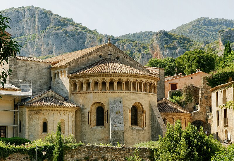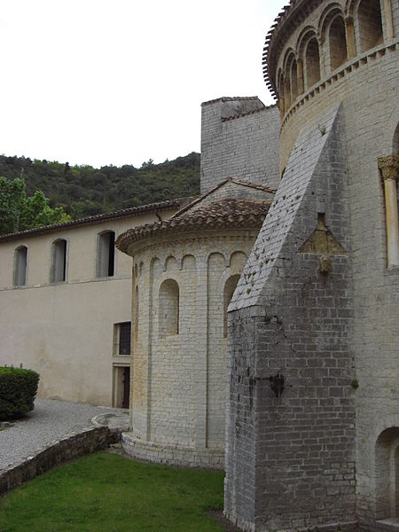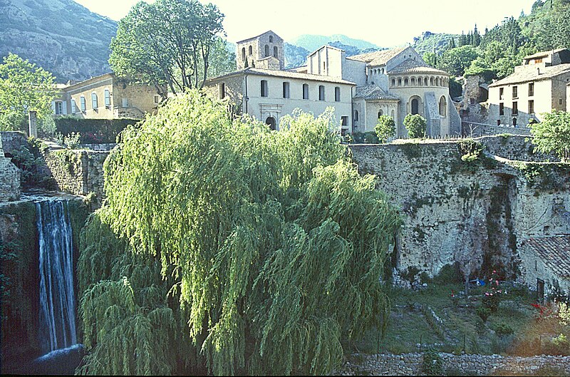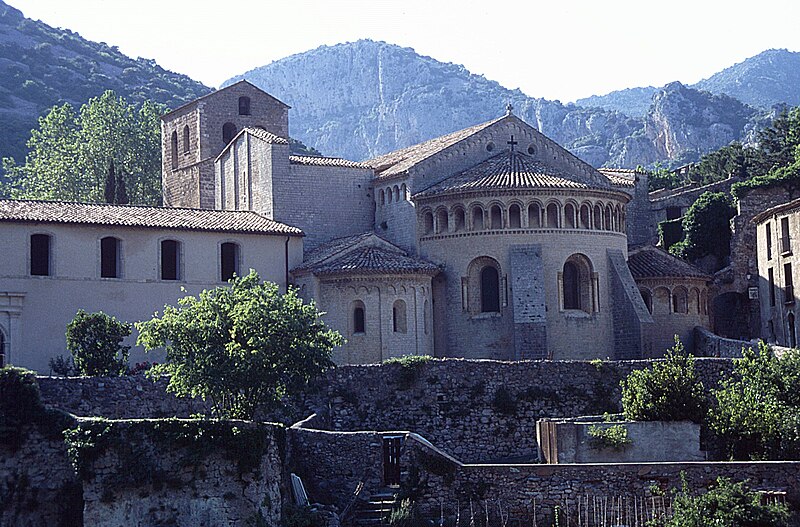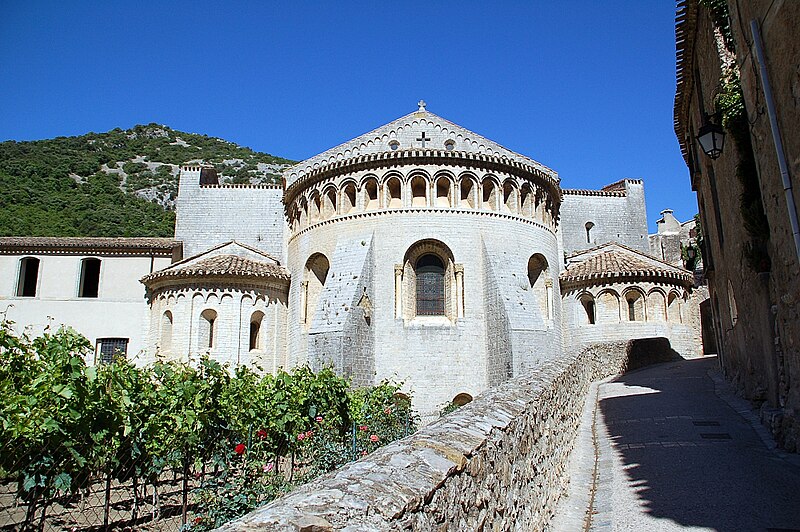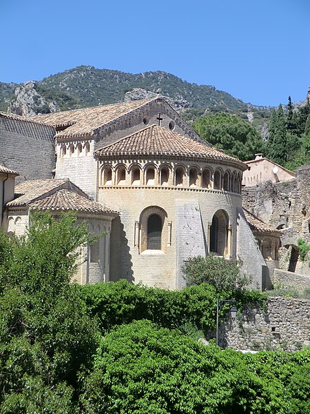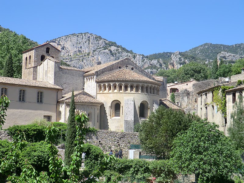 L'ancienne abbaye de Gellone, fondée en 804 par Guilhem, duc d'Aquitaine, se trouve à Saint-Guilhem-le-Désert, dans l'Hérault. Sous l'influence de Benoît d'Aniane, son fondateur se retira à Gellone et l'abbaye développa rapidement un rôle spirituel et pèlerin. Elle obtint un privilège d'exemption qui la mit hors de la juridiction des évêques de Lodève, mais cela n'empêcha pas des conflits récurrents avec l'abbaye voisine d'Aniane. L'abbaye conserva des reliques précieuses, notamment un fragment de la Vraie Croix attribué à Charlemagne, et les restes de Guilhem furent longtemps l'objet d'une grande vénération, attirant de nombreux pèlerins.