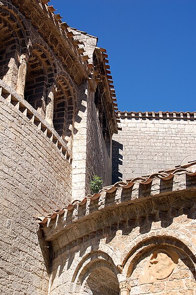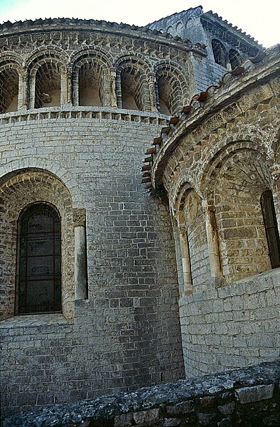 Les vestiges actuels de l'abbaye résultent de plusieurs campagnes de construction et de remaniements. Les éléments les plus anciens de l'église datent du milieu du XIe siècle : la travée de la nef qui entoure la tribune des orgues, une partie de la travée suivante et les deux tiers de la tour sud. Après l'incendie de 1066, d'autres travées de la nef, les bas-côtés et deux absidioles creusées dans l'épaisseur de l'ancien chevet furent reconstruits, et la dédicace de l'église est actée en 1076. Au XIIe siècle on reconstruit le chœur et le cloître inférieur, le cloître supérieur étant achevé à la fin du XIIe siècle ; la tribune du croisillon nord date du début du XIVe siècle et celle du croisillon sud de la fin du même siècle. Le clocher carré posé sur le narthex est élevé au milieu du XVe siècle.