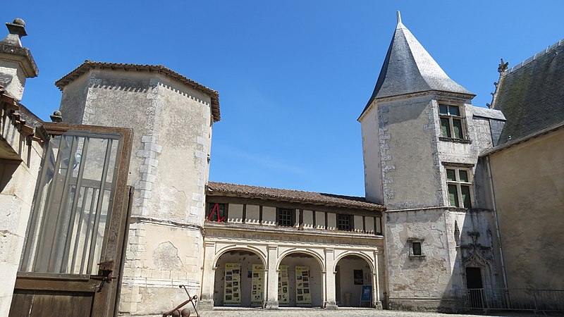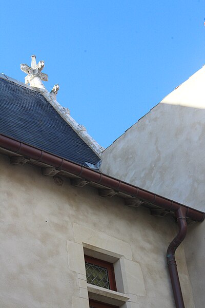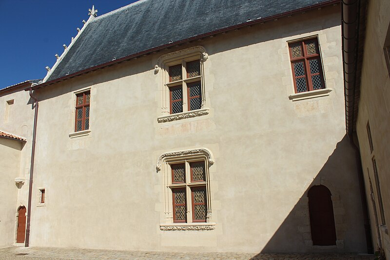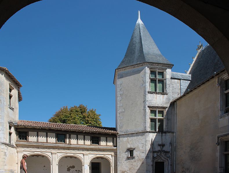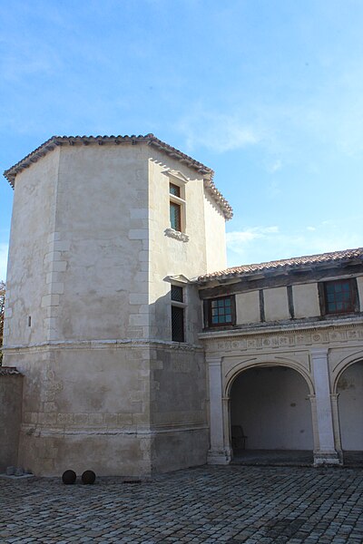 L'ensemble bâti, en grande partie daté du début du XVIe siècle, se compose d'un corps principal à rez-de-chaussée, un étage et un vaste comble, terminé à chaque extrémité par un haut pignon orné de crochets sculptés. Dans l'axe de la façade sur cour, au premier étage, une grande baie à meneau et traverse en pierre est encadrée de colonnettes à base polygonale et coiffée de pinacles à crochets ; son appui et son bandeau supérieur sont sculptés d'entrelacs typiques du XVIe siècle. Deux tours octogonales occupent les angles formés par le corps principal et les ailes en retour ; la plus importante abrite un large escalier en pierre à noyau central et s'ouvre sur une porte du XVIe siècle surmontée d'arcs en accolade ornés de crochets et de fleurons sculptés. Aux étages, deux croisées de la même époque sont décorées de bandeaux sculptés, et la tour est ceinte d'un bandeau en pierre orné de pampres et d'entrelacs. Aux retours est et ouest subsistent plusieurs travées d'un portique dorique du XVIe siècle dont l'entablement porte tryglyphes et rosaces ; une galerie à colonnettes le surmontait, dont quelques éléments demeurent. Le logis pourrait dater du XVe siècle ; les galeries et les tours ouest et nord-est sont attribuées à la fin du XVIe siècle ou au début du XVIIe siècle, avec des travaux secondaires au XVIIIe siècle. L'édifice a été restauré entre 1960 et 1966 ; la porte provenant de la caserne Toiras y a été installée à cette occasion.