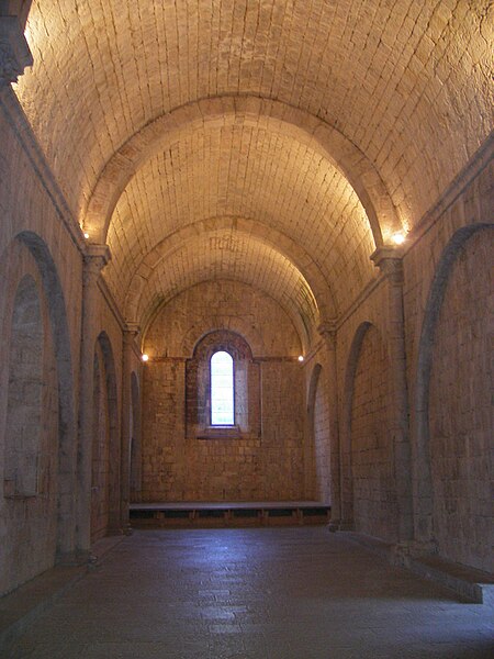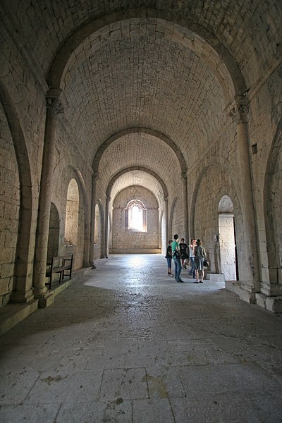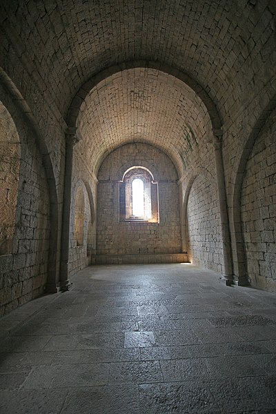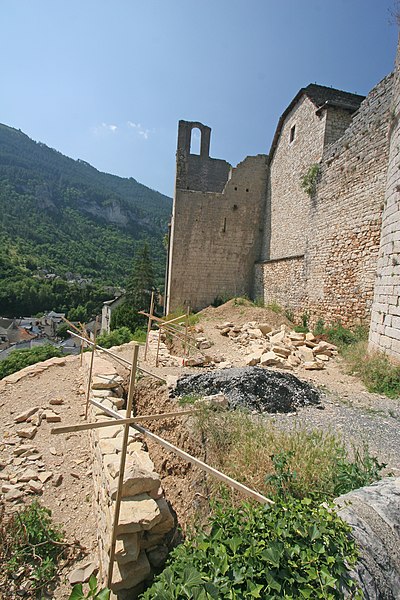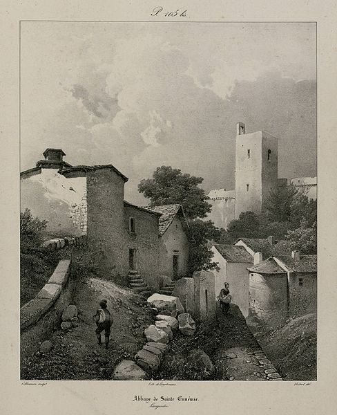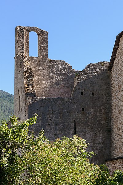 L'ancienne abbaye de Sainte-Enimie, située en Lozère (France), est liée à la légende selon laquelle Enimie, fille du roi Clotaire II, fut guérie de la lèpre en se baignant dans les sources de Burles. Entre le VIIIe et le Xe siècle, deux monastères — l'un de femmes, l'autre d'hommes — furent détruits par des invasions. Au Xe siècle le site paraît dépeuplé ; en 951 l'évêque de Mende céda les ruines du monastère masculin à l'abbaye de Saint-Chaffre-en-Velay, et le monastère subsista jusqu'en 1789. La chapelle moderne de l'Ermitage abrite la grotte où aurait vécu sainte Enimie. Les bâtiments conservés ne remontent pas au-delà du XIIe siècle et s'organisent en équerre sur une plateforme. Le corps de bâtiment faisant face au midi a été largement remanié ; seule une salle voûtée, à l'extrémité est, conserve des chapiteaux sculptés et une cheminée du XVe siècle à l'étage. À l'est, un bâtiment plus complet présente une longue salle de quatre travées voûtée en berceau avec colonnes engagées ; des arcs latéraux allègent les murs selon la tradition provençale. Une salle voûtée, peut-être destinée à un cellier, est conservée en sous-sol et, au-dessus, subsistent les restes d'un clocher. Plus au nord, derrière le premier bâtiment, s'élève une petite chapelle romane voûtée en berceau avec abside en cul-de-four ; toutes les autres constructions de l'abbaye ont disparu. Les sources écrites indiquent une présence monastique dès le VIe siècle, attribuée à l'évêque saint Ilère, puis un déclin avant la restauration de 951. Lors de cette restauration, le monastère fut confié à Dalmace du couvent de Saint-Théofred et placé sous la règle de saint Benoît ; l'acte de donation fut signé à Rome devant des autorités ecclésiastiques. Les terres du monastère devinrent une sauveté, ce qui a contribué au nom du causse de Sauveterre. L'établissement connut ensuite une période de prospérité et de pèlerinage ; au XVe siècle il semble avoir été élevé au rang d'abbaye et comptait alors une douzaine de moines. Une longue succession de prieurs et d'abbés est attestée, avec notamment les familles Alamand, de Châteauneuf, de Pontaut et des noms tels que François Alamand, Antoine Raymond ou Jean Malroux. Des protections et privilèges royaux ou pontificaux sont mentionnés, ainsi que des mesures pour la sauvegarde des biens du monastère. À la fin de l'Ancien Régime, la sécularisation et les mesures révolutionnaires entraînèrent la suppression de la vie monastique ; l'abbaye fut vendue comme bien national, morcelée et partiellement incendiée. Aujourd'hui, la bourgade de Sainte-Enimie conserve principalement l'ancien réfectoire et la chapelle Sainte-Madeleine, le réfectoire servant parfois de lieu d'expositions. L'ancienne abbaye est classée au titre des monuments historiques.