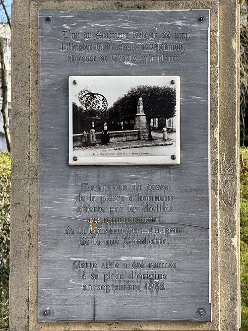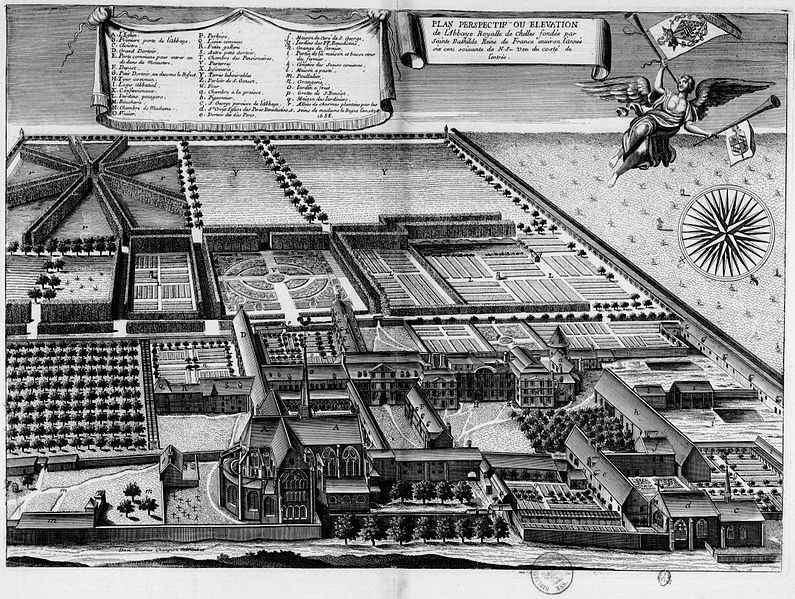 L'abbaye de Chelles est une ancienne abbaye royale de moniales bénédictines située à Chelles, à l'est de Paris. Un oratoire royal dédié à saint Georges y fut édifié en 538 dans la villa de Clotilde, épouse de Clovis. L'abbaye fut fondée avant 646 par sainte Bathilde, épouse du roi Clovis II, qui soutint l'établissement et agrandit l'oratoire de Clotilde. Elle fit construire une église dédiée à la Sainte-Croix, s'y retira vers 665 et y fut inhumée après son trépas le 30 janvier 680 ou 681 dans un mausolée placé au fond de l'abside orientale de Sainte-Croix. L'abbaye semble également avoir bénéficié du soutien de saint Éloi, à en juger par plusieurs objets précieux provenant du monastère. Sous les Carolingiens, plusieurs femmes de la famille impériale occupèrent la charge d'abbesse. En 833, Helvide fit retirer le sarcophage de Bathilde le 26 février, puis le 17 mars les ossements furent déposés dans une chapelle nouvelle derrière l'autel en présence de l'évêque de Paris après la messe. Sous le règne de Louis le Pieux, le culte de sainte Bathilde fut célébré les 30 janvier et 17 mars, avec des répons tirés de la Vita Bathildis du VIIIe siècle. L'abbaye, comme d'autres établissements religieux, souffrit matériellement et spirituellement pendant la guerre de Cent Ans et les guerres civiles sous Charles VII. À la fin du XVe et au début du XVIe siècle s'amorça un mouvement de réforme : de 1500 à 1518, les religieuses de Chelles contribuèrent à réformer treize abbayes, dont Notre-Dame du Val-Profond et l'abbaye de Montmartre à Paris. Par une bulle du pape Innocent III, entre 1198 et 1216, l'abbaye passa sous la dépendance directe du Saint-Siège tout en conservant des liens avec la famille royale pour certaines célébrations. En 1719, Louise Adélaïde d'Orléans devint abbesse en remplacement d'Agnès Charlotte de Villars ; la nouvelle abbesse était en partie influencée par le jansénisme. La même année, le compositeur Jean-Baptiste Morin fut nommé maître de musique de l'abbaye. L'abbaye subsista jusqu'à la Révolution française : elle fut fermée en 1792, vendue comme bien national en 1796 et détruite. Parmi les vestiges encore visibles figurent les églises Sainte-Croix et Saint-Georges, réaménagées aujourd'hui en centre de culture contemporaine, ainsi que des vestiges du cloître intégrés à la mairie. L'église Saint-Georges a été édifiée aux XIe et XIIe siècles sur l'emplacement du sanctuaire du VIe siècle, et l'église Sainte-Croix date du XIIIe siècle avec des remaniements au XVIe siècle. Les anciens jardins de l'abbaye correspondent sensiblement à l'actuel parc du souvenir Émile Fouchard. Les restes du cloître et les sols de l'ancienne église abbatiale ont été classés au titre des monuments historiques le 15 octobre 1974, et les églises Sainte-Croix et Saint-Georges ont été classées le 13 septembre 1984. Des fouilles du XXe siècle ont mis au jour des fragments de sculptures du XIIe siècle, certains datés des années 1110-1120 et d'autres vers 1140, conservés au musée Alfred-Bonno. Le cloître est aujourd'hui intégré à l'hôtel de ville, propriété de la commune. La gouvernance de l'abbaye fut assurée par une longue succession d'abbesses, depuis sainte Bertille, première abbesse, jusqu'à Anne de Clermont-Chaste de Gessans qui gouverna jusqu'en 1790, et inclut des figures telles que Gisèle, sœur de Charlemagne, Helvide Ire de Saxe, mère de l'impératrice Judith, et Louise Adélaïde d'Orléans. Parmi les religieuses et personnalités liées à Chelles figurent Swanahilde, Thérèse-Angélique de Pasquier de Franclieu, ancienne religieuse devenue abbesse à Yerres et décédée en 1814, et Martine du Moulin, religieuse à Chelles avant d'exercer des charges abbatiales ailleurs et morte en 1535 à l'âge de 86 ans. L'abbaye possédait et gérait des biens, comme la vente en 1179 par l'abbesse de trois quartiers de vigne à Saint-Hilaire au profit du Chapitre de Paris.