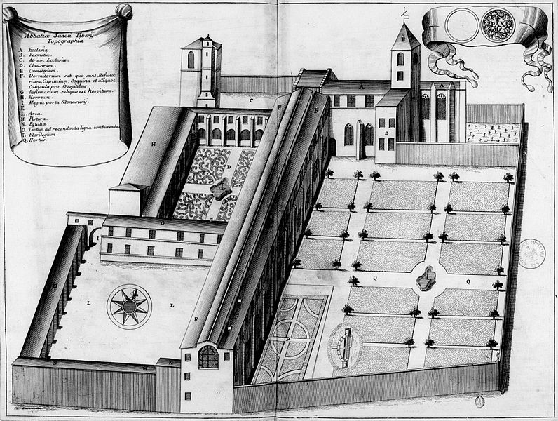 En totalité, les anciens bâtiments claustraux ainsi que les sols des parcelles correspondant à l'enceinte monastique, y compris celles correspondant à la cour méridionale, ainsi que les vestiges du grand portail sud de cette cour (cad. AB 317, 320 à 331, 333, 339 à 349, 351 à 363, 466, 468 à 476, 479, 480, 845, 961, 962, 1020, 1021, 1030 ) : inscription par arrêté du 21 février 2005
