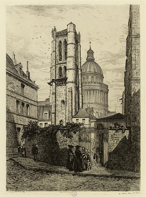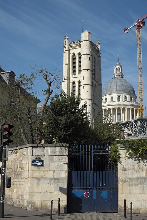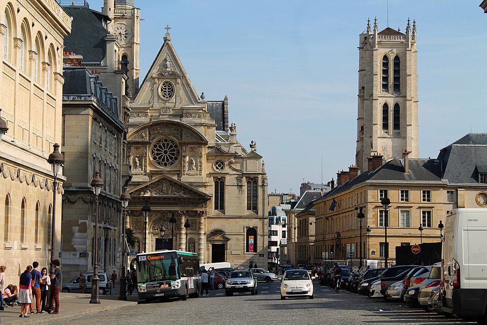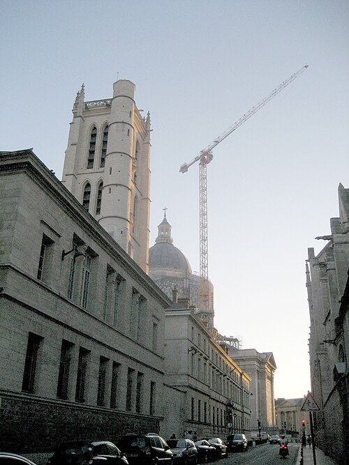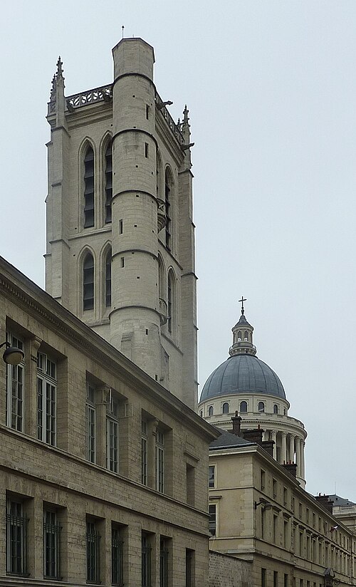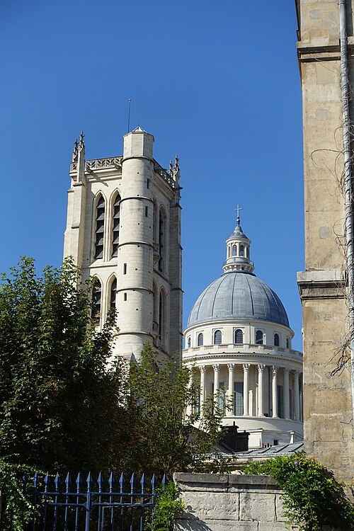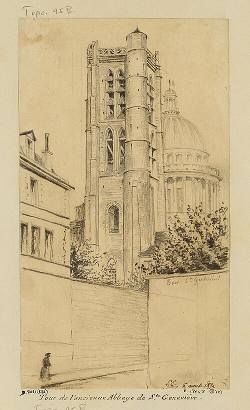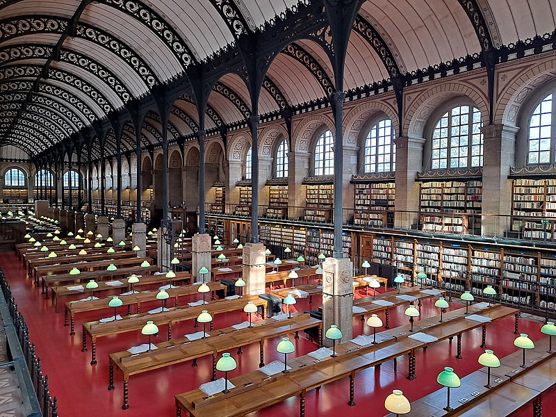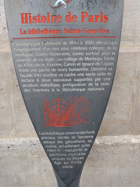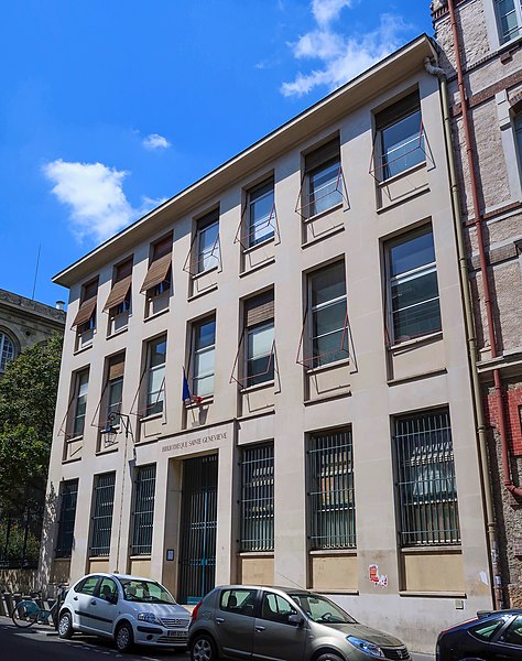 La Bibliothèque Sainte-Geneviève (BSG) est une bibliothèque interuniversitaire et publique située au 10, place du Panthéon, dans le 5e arrondissement de Paris, installée dans un bâtiment édifié par Henri Labrouste et inauguré en 1851. L'édifice, construit entre 1843 et 1850 sur l'emplacement de l'ancien collège de Montaigu, est classé au titre des monuments historiques avec ses aménagements et décors d'origine. La BSG est l'héritière de la bibliothèque de l'abbaye Sainte-Geneviève, qui fut pendant longtemps l'une des trois plus importantes d'Europe et occupait autrefois le dernier étage de ce qui est aujourd'hui le lycée Henri-IV. Bibliothèque d'État à vocation interuniversitaire (Paris 1, 2, 3, 4 et 7) et ouverte au public, elle est accessible aux personnes majeures ou titulaires du baccalauréat. Ses collections encyclopédiques totalisent environ deux millions de documents répartis entre la Réserve (fonds anciens, rares et précieux), le Fonds général (ouvrages, périodiques et autres documents publiés depuis le début du XIXe siècle jusqu'à aujourd'hui) et la Bibliothèque nordique, qui propose un important fonds finno-scandinave. L'origine de la bibliothèque remonte à l'abbaye Sainte-Geneviève fondée autour d'une basilique consacrée aux apôtres Pierre et Paul et liée à la tombe de sainte Geneviève ; l'existence d'un service de livres est attestée dès le XIIe siècle. Des mentions antérieures signalent des legs de volumes et l'existence probable d'un scriptorium ; le développement carolingien fut ensuite affecté par les invasions vikings et les conflits des siècles suivants. La réforme monastique du XIIe siècle renforça le soin porté aux collections et à la copie des textes, et au XIIIe siècle un catalogue recensait déjà plusieurs centaines d'ouvrages. Les guerres et les dissensions religieuses entraînèrent des pertes, si bien qu'au début du XVIIe siècle la bibliothèque dut être presque entièrement reconstituée. La refondation de 1624 par l'abbé devenu cardinal de La Rochefoucauld relança les acquisitions, complétées par des donations majeures comme celles de Gabriel Naudé et de l'archevêque Charles-Maurice Le Tellier, dont le legs introduisit également une classification alphabétique encore partiellement en usage. Au XVIIIe siècle la bibliothèque s'ouvrit au public et, sous l'impulsion de bibliothécaires comme Alexandre‑Guy Pingré, développa ses collections scientifiques et échappa, lors de la Révolution, à une dispersion totale de ses fonds. Devenue propriété nationale en 1790, elle s'enrichit de confiscations révolutionnaires et d'apports divers, et fut successivement désignée sous le nom de Bibliothèque du Panthéon avant de retrouver son appellation. À l'étroit dans l'ancien lycée, la bibliothèque fut transférée provisoirement en 1842 puis dotée d'un édifice nouveau conçu et réalisé par Henri Labrouste sur une parcelle étroite au sommet de la montagne Sainte-Geneviève. L'édifice de Labrouste, premier bâtiment autonome en France conçu spécialement pour une bibliothèque, se caractérise par une architecture sobre et rationaliste, l'emploi apparent de la fonte associé à la pierre, et l'usage innovant de structures métalliques visibles dans la façade et la salle de lecture. Conçu en trois volumes séparant le stockage des ouvrages rares de la vaste salle de lecture, le bâtiment offre une salle principale, dessinée sur un plan basilical, longue et lumineuse, soutenue par dix‑huit fines colonnes en fonte et dotée d'une galerie supérieure desservie par quatre escaliers d'angle. La façade, d'allure dépouillée et symétrique, porte la gravure de 810 noms d'auteurs et savants correspondant aux rayonnages situés derrière le mur et présente les tirants métalliques qui traduisent la structure interne. À l'intérieur, le parcours d'entrée conduit depuis un vestibule à colonnes et sol de marbre vers la salle de lecture, selon un dispositif symbolique d'accès à la connaissance ; les magasins du rez-de-chaussée, organisés autour de colonnes massives, ont été remaniés depuis leur état originel. Labrouste utilisa la pierre pour les façades et éléments porteurs extérieurs et la fonte pour la charpente et les colonnes intérieures, tandis que le mobilier conçu pour la salle de lecture, pour une grande part conservé, est en bois et marbre. Le Fonds général compte notamment près de 950 000 volumes, des milliers de périodiques et de microformes ainsi que de nombreuses ressources électroniques destinées à un public universitaire et de recherche ; la Réserve conserve plus de 6 300 manuscrits, quelque 160 000 imprimés anciens et plus de 50 000 estampes, tandis que la Bibliothèque nordique réunit plus de 190 000 volumes, des milliers de publications en série et une collection patrimoniale. La bibliothèque a par ailleurs été pionnière en matière de numérisation et de diffusion : elle a contribué au projet Internet Archive dès 2009, ouvert une collection d'images en 2015 et mis en ligne plusieurs milliers d'ouvrages sur sa bibliothèque numérique Genovefa. Ouverte au public du lundi au samedi de 10 heures à 22 heures et quelques dimanches par an en période d'examens, elle compte plus de 43 000 lecteurs inscrits. La direction a été assurée par une succession de conservateurs depuis Alexandre‑Guy Pingré jusqu'à Cécile Bajard (depuis 2025), et de nombreuses personnalités, parmi lesquelles Marcel Duchamp, Jules Vallès, Jules Laforgue, Simone de Beauvoir et Francis Ponge, y ont travaillé ou fréquenté les lieux. La bibliothèque a inspiré de nombreux écrivains et figures littéraires et a servi de décor à plusieurs films, soulignant son rôle à la fois patrimonial, scientifique et culturel dans la vie parisienne.