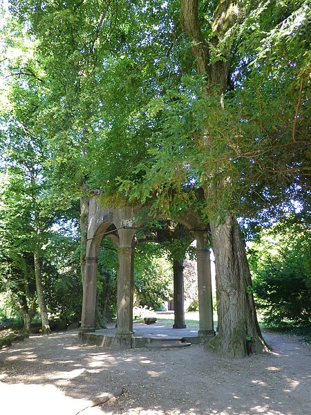 L’ensemble conventuel a été profondément remanié entre 1680 et 1720 ; les bâtiments visibles aujourd’hui datent en grande partie de cette période. L’église primitive, de plan circulaire, ne conservait au XVIIIe siècle que sa partie hémisphérique transformée en chœur ; elle fut détruite par un incendie en 1809 et reconstruite dans un style néo-médiéval par l’architecte Prosper Morey entre 1866 et 1869. La tour romane du XIIe siècle et le clocher octogonal à couronnement de dômes superposés figurent parmi les éléments les plus anciens conservés. Le cloître, en grès rose enduit, était de plan carré avec quatre galeries à arcades reposant sur des pilastres toscans ; l’aile nord a disparu à la suite de l’incendie et l’aile est a été occupée par la nouvelle église. Le logis abbatial en L relève de deux campagnes distinctes : la partie sud datée de 1728-1749 et la partie nord de circa 1763-1766. La grande salle dite « salle des abbés » a conservé l’essentiel de son décor d’origine, notamment lambris, bibliothèque murale et cheminée de marbre. Les communs formaient une cour largement ouverte sur vergers et potager ; ils comprennent un bâtiment agricole au nord daté de 1731 et la bibliothèque de 1719.