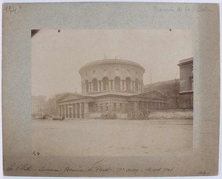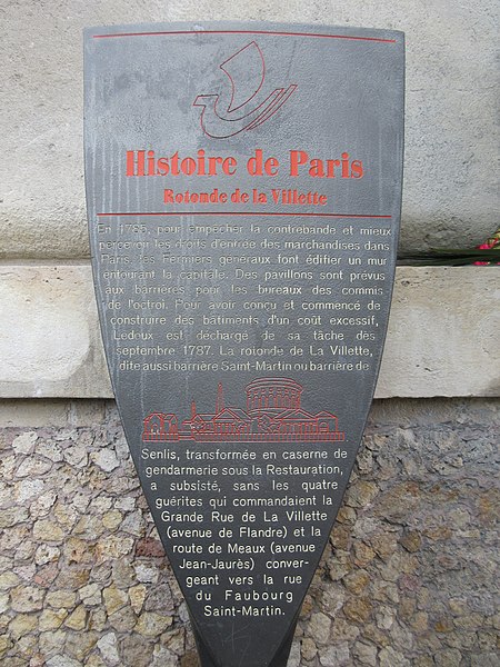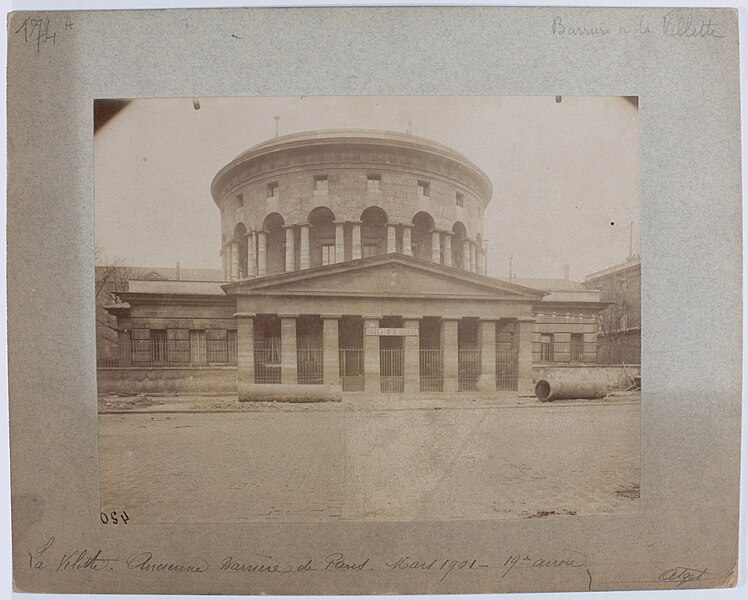 La rotonde de la Villette, également appelée barrière Saint-Martin, est l'une des barrières d'octroi du mur des Fermiers généraux conçue par Claude-Nicolas Ledoux. Elle se dresse sur l'actuelle place de la Bataille-de-Stalingrad, face au bassin de la Villette, dans le 19e arrondissement de Paris. Réalisée entre 1784 et 1788 dans le cadre des « propylées » de Paris, elle constituait le bâtiment le plus imposant de l'ensemble destiné à abriter les bureaux de perception de l'octroi. Au faubourg Saint-Martin, Ledoux livre un dispositif composé de deux petits monuments formant la barrière de la Villette (appelée barrière de Senlis jusqu'en 1798), de deux autres formant la barrière de Pantin, et de la rotonde monumentale. Les petites barrières contrôlaient les passages sur les routes de Flandre et d'Allemagne, tandis que la rotonde, monument ornemental, abritait le receveur, les contrôleurs et un corps de garde chargé de la surveillance. Les commerçants devaient passer par les guérites des barrières puis se rendre aux bureaux de la rotonde pour déclarer leurs marchandises et payer l'octroi ; le papier délivré était ensuite vérifié à la guérite. Le lieu marque aussi la première étape de la fuite de Louis XVI et de sa famille, lorsqu'ils changèrent de voiture au début de leur départ des Tuileries. L'octroi supprimé dès 1791, la rotonde fut ensuite affectée à diverses fonctions : casernement de la garde municipale de 1830 à 1860 puis grenier à sel de 1865 à 1921. Elle échappa à la démolition lors des travaux haussmanniens liés à l'extension de Paris, fut incendiée pendant la Commune de 1871 puis restaurée, et ne fut pas détruite lors de l'implantation de la ligne 2 du métro entre 1900 et 1903, dont le tracé la contourne par trois virages. Classée au titre des monuments historiques par un arrêté du 24 avril 1907, la rotonde fut touchée pendant un raid aérien le 30 janvier 1918. À partir de 1960 elle abrita les services archéologiques et la Commission du Vieux Paris, qui y demeura jusqu'en 2004. Réhabilitée en 2009, la rotonde accueille depuis un restaurant et une galerie d'art contemporain ; elle comprend une terrasse paysagée de 1 500 m2, une salle de réception, un mini-club dans une annexe et des bureaux au dernier étage. Parmi la quarantaine de bureaux d'octroi dessinés par Ledoux, la rotonde est l'un des plus imposants et figure parmi les six propylées encore visibles aujourd'hui. Construite en pierre de taille, elle associe un carré extérieur en croix grecque et un vaste cylindre intérieur percé d'un puits zénithal ; chaque façade du rez-de-chaussée présente huit piliers toscans surmontés d'un entablement et d'un fronton triangulaire surbaissé. La galerie centrale, composée d'arcs en plein cintre et de baies à linteaux en serliennes soutenues par quarante colonnes doriques jumelées, évoque l'architecture palladienne ; le toit en entonnoir et la cour circulaire jouent le rôle de puits de lumière, tandis que l'édifice est couronné d'une corniche dorique alternant métopes et triglyphes. Le dessin général réunit des formes épurées et des volumes contrastés librement inspirés des modèles antiques et de la Renaissance italienne.