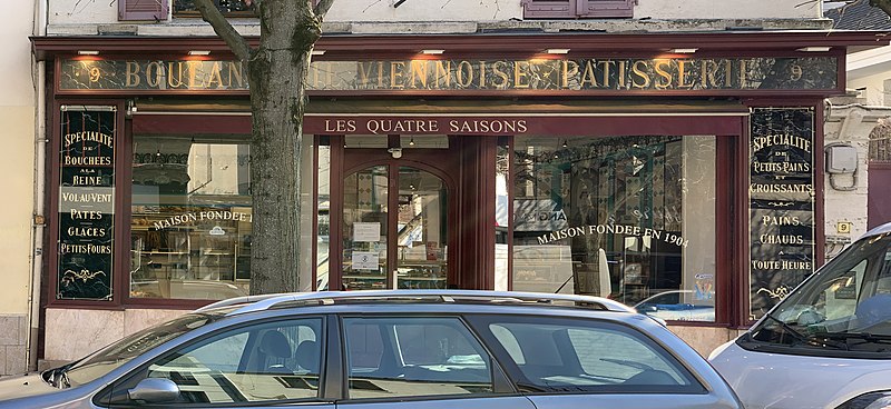 Boulangerie installée en 1904, elle a conservé la quasi-totalité de son décor évoquant les saisons, le travail du pain et la pâtisserie. Les panneaux de carreaux de faïence, au décor peint sous glaçure et signés Ebel, sont encadrés de laiton pour renforcer l'illusion d'une exposition de tableaux. Le plafond fleuri, une toile peinte et fixée sous verre, est signé de l'atelier Benoist. Des verres gravés participent au caractère luxueux du magasin.