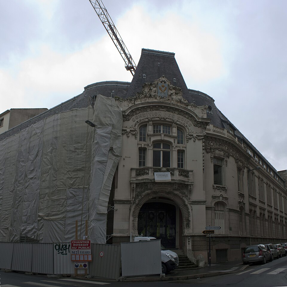 L'édifice, construit par les architectes Léon et Marcel Lamaizière et achevé en 1910, abritait la Condition des Soies de Saint-Étienne. Jusqu'en 1962, y étaient effectuées les opérations techniques et réglementaires de la rubanerie : décreusage, conditionnement de la soie dans des conditions d'humidité contrôlée afin d'obtenir le poids marchand des ballots et le titrage. Les locaux étaient auparavant installés, dès 1823, dans le Palais de la Bourse construit par Jean-Michel Dalgabio. En 1909, la Chambre de commerce, par l'intermédiaire de son président Clément Brossy, commanda aux Lamaizière un nouveau bâtiment ; Brossy annota les plans et obtint des modifications. L'emplacement choisi se situe au cœur de "l'espace réservé de la Fabrique", à proximité des places Jacquard, Marengo (actuelle Jean-Jaurès) et de l'Hôtel-de-Ville. Les rubaniers souhaitaient faire de cet immeuble le fleuron architectural de leur activité, et la décoration extérieure et intérieure a été remarquablement exécutée. La façade présente des courbes d'inspiration art nouveau. La décoration, vraisemblablement due à Marcel Lamaizière, intègre les motifs de la rubanerie et du mûrier, tant sur la partie extérieure que dans le fer forgé des fenêtres, de la grille d'entrée et de la rampe d'escalier. La minutie du détail s'illustre notamment dans les grilles de la porte principale, où figurent des feuilles de mûrier et des rubans entrelacés. L'édifice porte la signature rue d'Arcole : "L.LAMAIZIERE Architecte, M.LAMAIZIERE Arch.D.P.L.G., 1909-1910." Le corps de bâtiment sur la cour a été rehaussé de deux niveaux en 1955. La Condition des Soies a cessé son activité en 1962 ; des services de comptabilité y sont restés jusqu'en 1980. De 1969 à 1997, l'Institut supérieur du commerce s'y installe ; l'École supérieure de commerce de Saint-Étienne occupe le bâtiment de 1982 à 1997, entraînant des modifications intérieures. La Chambre de commerce et d'industrie a vendu l'immeuble au Conseil général en juin 2001 pour une extension de ses locaux ; les dernières parties spécifiques de la Condition des Soies ont alors été détruites. La salle de direction, restée non remaniée, conserve ses boiseries et des linteaux en tissu au-dessus des portes portent encore des traces de peinture avec des motifs d'oiseaux. Les façades et toitures, ainsi que l'escalier avec sa cage, sont inscrits au titre des monuments historiques par arrêté du 29 mai 2002. Il s'agit d'une ancienne condition des soies de Saint-Étienne, dans le département de la Loire.