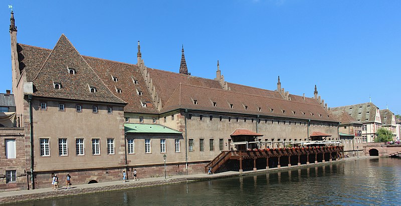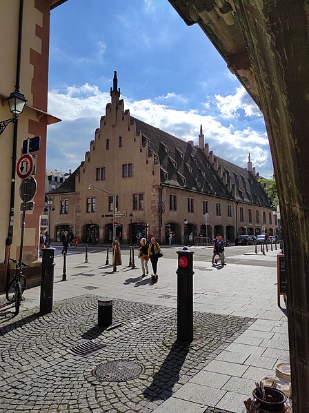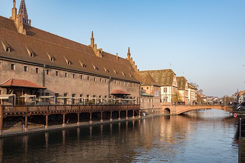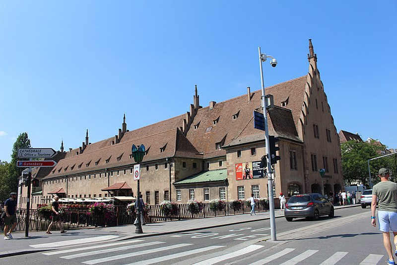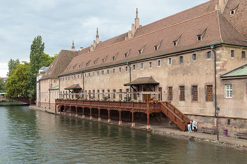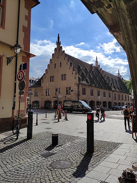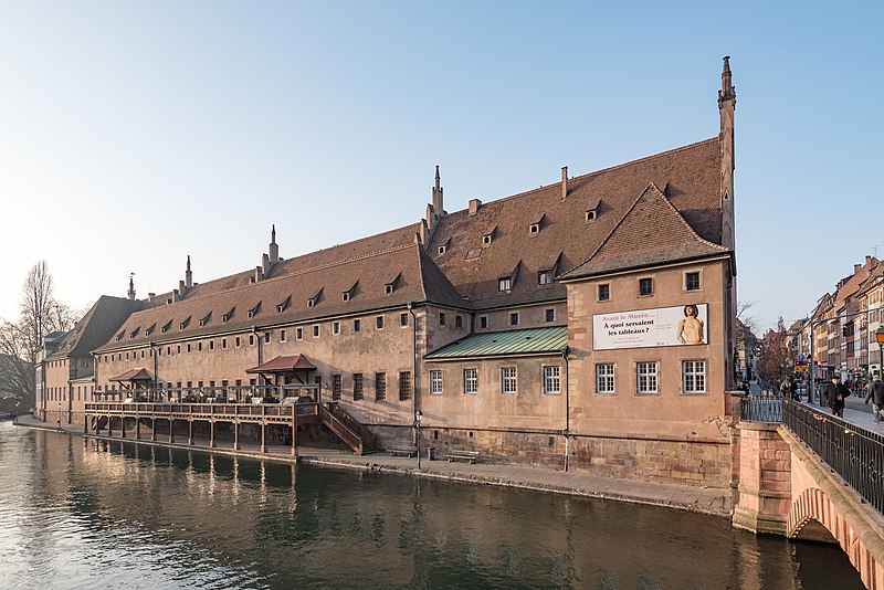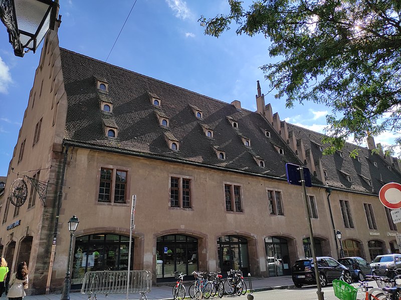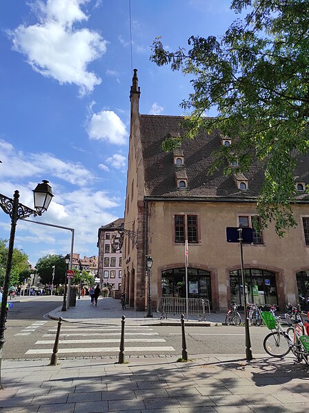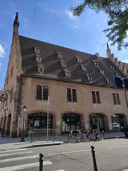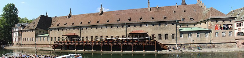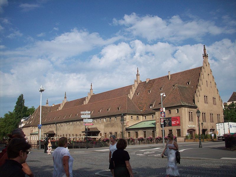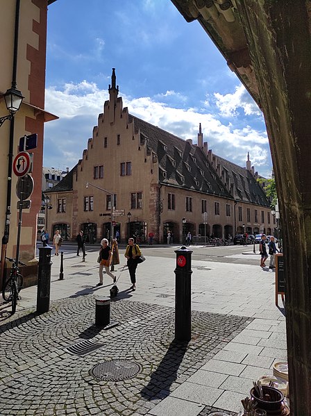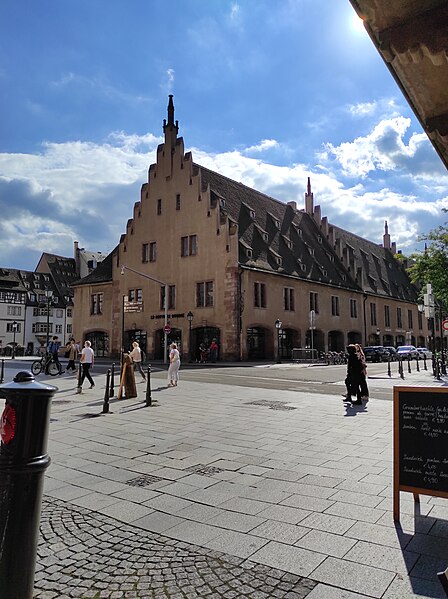 L’ancienne douane de Strasbourg, appelée s'Kaafhüs en dialecte strasbourgeois, se situe sur la Grande Île, le long de la rive gauche de l'Ill, juste en amont du pont du Corbeau, à proximité de la place du Vieux-Marché-aux-Poissons et du musée historique ; elle est classée monument historique depuis 1948. Construite en 1358 à l'initiative de la corporation des bateliers, elle occupait le site nommé Salzhof (« cour du sel ») où étaient entreposés les produits des salines de Lorraine. La Kaafhüs servait à contrôler, taxer et stocker les marchandises transitant sur le Rhin et était dirigée par un Kaufhausherr choisi parmi les bourgeois de la ville. Durant le Moyen Âge, le commerce fluvial fut essentiel au développement de Strasbourg ; les marchandises en transit comprenaient principalement, à partir du XVIIe siècle, le tabac, ainsi que le vin et le poisson. Le bâtiment accueillait de grandes foires, remplissait la fonction d'hôtel de change et abritait la frappe monétaire de Strasbourg. Considéré comme le plus important bâtiment civil de la ville, il fut agrandi dès 1389 du côté du pont Saint-Nicolas, puis encore à plusieurs reprises, notamment en 1751 par l'architecte municipal Boudhors et en 1781. En 1401, le rez-de-chaussée fut racheté par le boucher Spanbett qui y exploita une auberge ; celle-ci fut détruite par un incendie lors de la foire de la Saint-Jean en 1497 et reconstruite en 1507 grâce aux fonds de l'Œuvre Notre-Dame. Des grues anciennes, actionnées par des hommes dans des « cages d’écureuil » et datant du XIVe siècle, subsistèrent jusqu’au XVIIIe siècle. En 1803, après le départ de la douane, l'édifice prit le nom d'ancienne douane et fut utilisé comme marché aux vins jusqu'en 1842. Un magasin de tabac en feuilles y fut installé en 1853, puis il devint le marché aux poissons de la ville en 1897. Lors de la Seconde Guerre mondiale, l'édifice fut gravement endommagé par un bombardement allié le 11 août 1944 ; sa partie est, côté pont du Corbeau, fut presque détruite. Après la guerre, diverses options d'aménagement furent envisagées, mais l'édifice fut finalement reconstruit selon les plans d'origine, de 1962 à 1965, par l'architecte de la ville Robert Will dans un style légèrement épuré. La reconstruction fut inaugurée le 4 avril 1966 par le maire Pierre Pflimlin. Outre le restaurant avec terrasse sur l'eau, ajout rare par rapport à l'édifice primitif, la restauration a intégré une salle d'exposition de 600 m2 et une salle de conférences. Le restaurant fut victime d'un incendie le 8 juin 2000 et rouvrit en 2001 après une année de travaux. Jusqu'en 1998, la partie est abritait le musée d'art moderne et contemporain de Strasbourg ; la partie centrale accueille depuis 1966 le restaurant traditionnel L'Ancienne Douane. À la suite de la fermeture d'un bar à bière fin 2012, la ville a lancé le projet La Nouvelle Douane, un point de vente de produits agricoles en circuit court ; ce magasin de 250 m2, approvisionné par 22 producteurs locaux, a ouvert le 12 novembre 2014. L'édifice a été largement documenté et représenté : on le voit éclairé la nuit depuis le pont du Corbeau, peint par Lothar von Seebach (vers 1895) et photographié côté rue de la Douane.