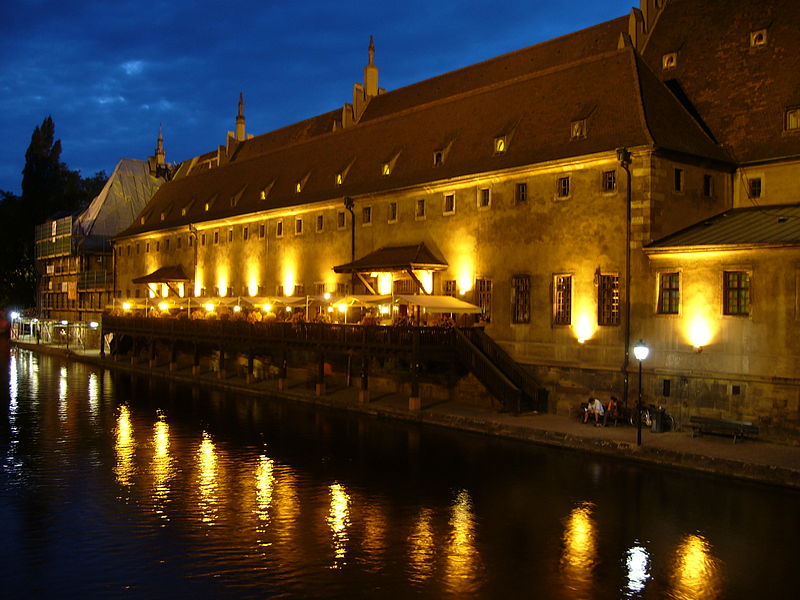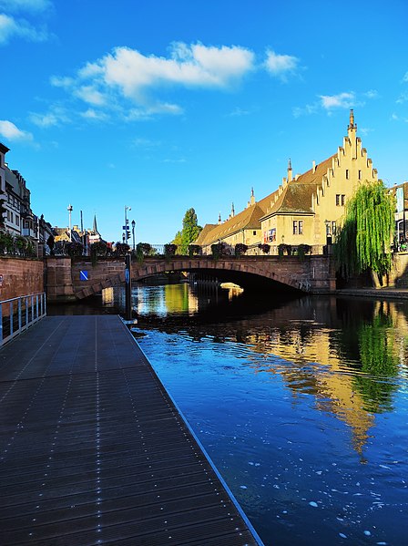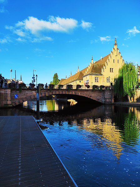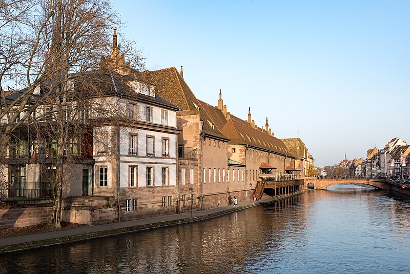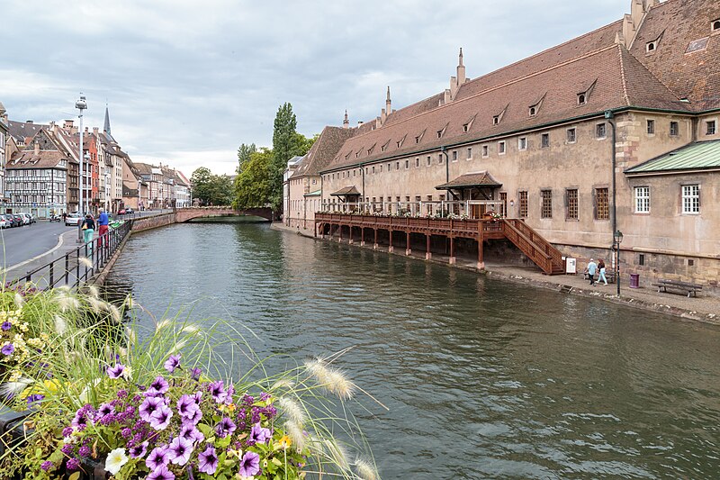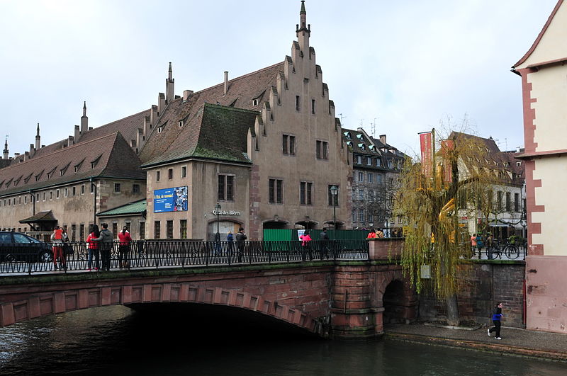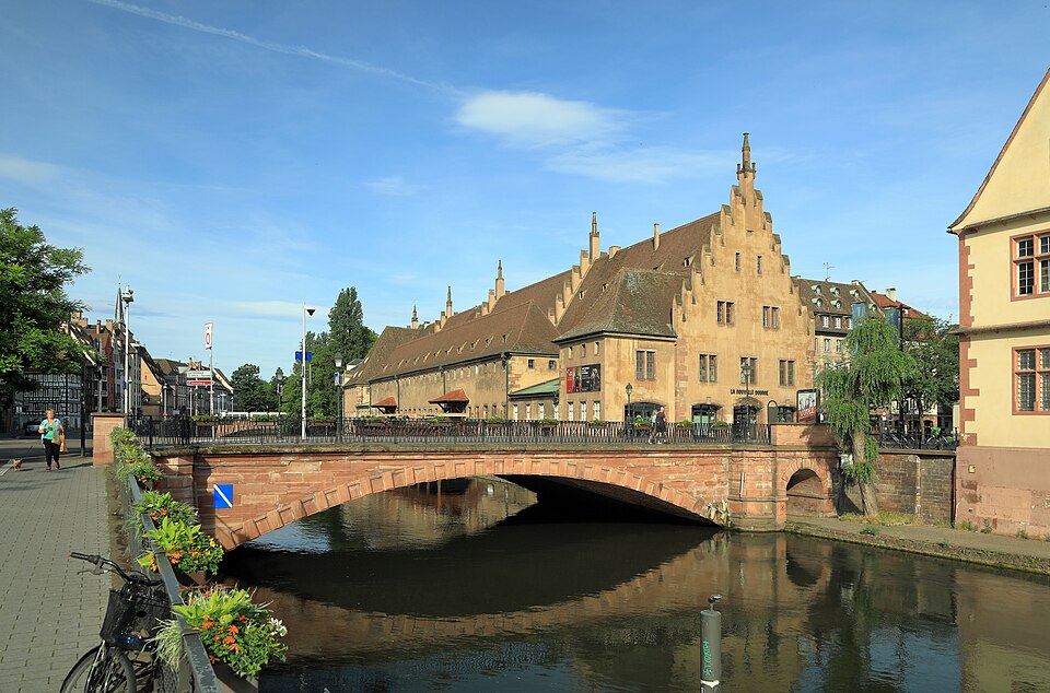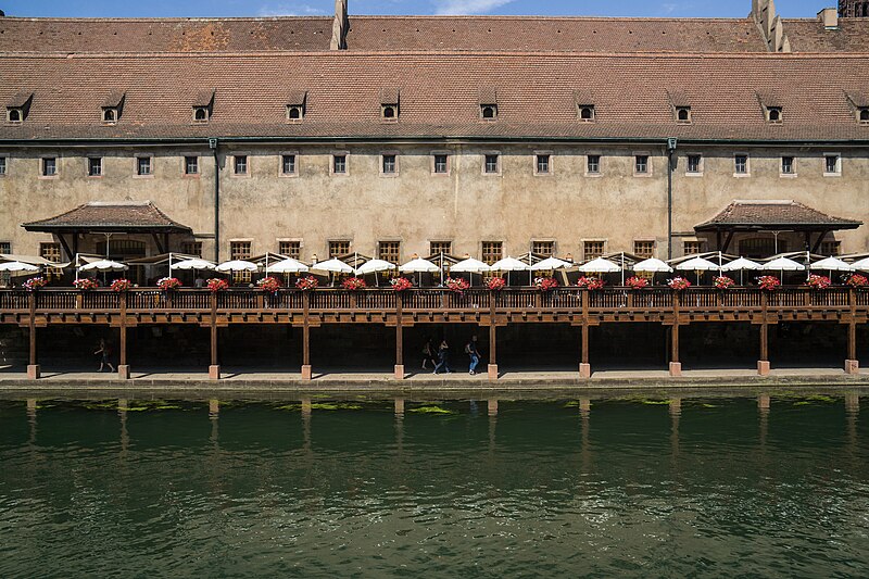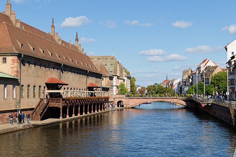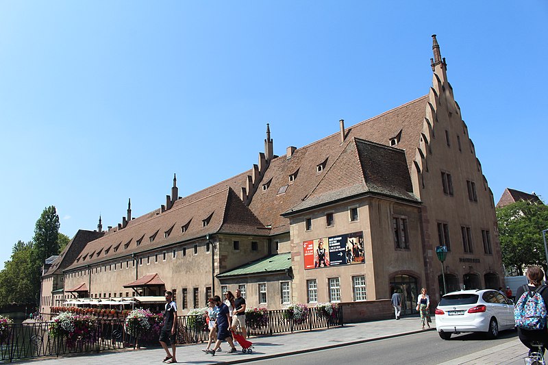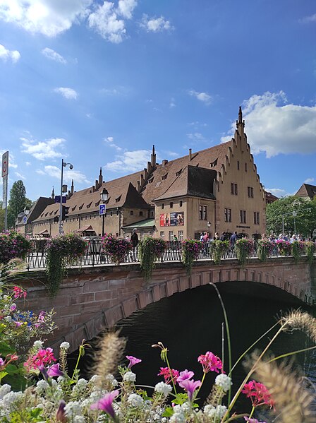 L’ancienne douane de Strasbourg, appelée s'Kaafhüs en dialecte strasbourgeois, se situe sur la Grande Île, le long de la rive gauche de l'Ill, juste en amont du pont du Corbeau, à proximité de la place du Vieux-Marché-aux-Poissons et du musée historique ; elle est classée monument historique depuis 1948. Construite en 1358 à l'initiative de la corporation des bateliers, elle occupait le site nommé Salzhof (« cour du sel ») où étaient entreposés les produits des salines de Lorraine. La Kaafhüs servait à contrôler, taxer et stocker les marchandises transitant sur le Rhin et était dirigée par un Kaufhausherr choisi parmi les bourgeois de la ville. Durant le Moyen Âge, le commerce fluvial fut essentiel au développement de Strasbourg ; les marchandises en transit comprenaient principalement, à partir du XVIIe siècle, le tabac, ainsi que le vin et le poisson. Le bâtiment accueillait de grandes foires, remplissait la fonction d'hôtel de change et abritait la frappe monétaire de Strasbourg. Considéré comme le plus important bâtiment civil de la ville, il fut agrandi dès 1389 du côté du pont Saint-Nicolas, puis encore à plusieurs reprises, notamment en 1751 par l'architecte municipal Boudhors et en 1781. En 1401, le rez-de-chaussée fut racheté par le boucher Spanbett qui y exploita une auberge ; celle-ci fut détruite par un incendie lors de la foire de la Saint-Jean en 1497 et reconstruite en 1507 grâce aux fonds de l'Œuvre Notre-Dame. Des grues anciennes, actionnées par des hommes dans des « cages d’écureuil » et datant du XIVe siècle, subsistèrent jusqu’au XVIIIe siècle. En 1803, après le départ de la douane, l'édifice prit le nom d'ancienne douane et fut utilisé comme marché aux vins jusqu'en 1842. Un magasin de tabac en feuilles y fut installé en 1853, puis il devint le marché aux poissons de la ville en 1897. Lors de la Seconde Guerre mondiale, l'édifice fut gravement endommagé par un bombardement allié le 11 août 1944 ; sa partie est, côté pont du Corbeau, fut presque détruite. Après la guerre, diverses options d'aménagement furent envisagées, mais l'édifice fut finalement reconstruit selon les plans d'origine, de 1962 à 1965, par l'architecte de la ville Robert Will dans un style légèrement épuré. La reconstruction fut inaugurée le 4 avril 1966 par le maire Pierre Pflimlin. Outre le restaurant avec terrasse sur l'eau, ajout rare par rapport à l'édifice primitif, la restauration a intégré une salle d'exposition de 600 m2 et une salle de conférences. Le restaurant fut victime d'un incendie le 8 juin 2000 et rouvrit en 2001 après une année de travaux. Jusqu'en 1998, la partie est abritait le musée d'art moderne et contemporain de Strasbourg ; la partie centrale accueille depuis 1966 le restaurant traditionnel L'Ancienne Douane. À la suite de la fermeture d'un bar à bière fin 2012, la ville a lancé le projet La Nouvelle Douane, un point de vente de produits agricoles en circuit court ; ce magasin de 250 m2, approvisionné par 22 producteurs locaux, a ouvert le 12 novembre 2014. L'édifice a été largement documenté et représenté : on le voit éclairé la nuit depuis le pont du Corbeau, peint par Lothar von Seebach (vers 1895) et photographié côté rue de la Douane.