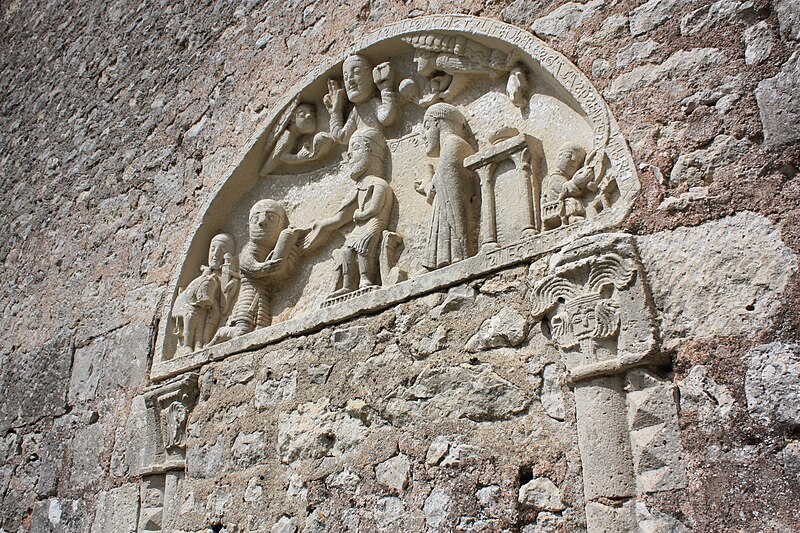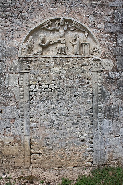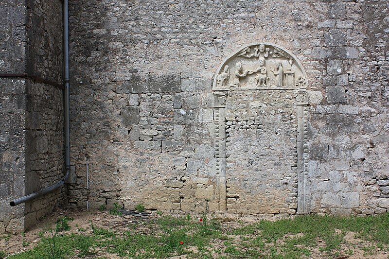 L'ancienne église Saint-Fiacre de Mervilliers, classée au titre des monuments historiques en 1915, est aujourd'hui une propriété agricole privée. De l'édifice détruit subsistent le tympan et les piédroits de l'ancien portail, datés du XIIe siècle, intégrés aux murs d'une grange et visibles depuis la cour de la ferme. Une inscription latine court autour du tympan. La sculpture offre une scène de don remarquable : la donation à l'église est figurée par le prêtre, tandis que le suzerain, assis sur un trône, autorise et transmet cet acte.