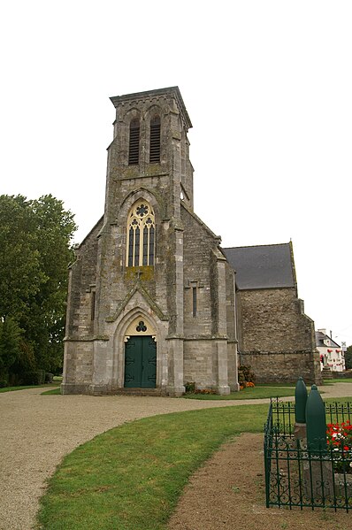 L'ancienne église de Trégon, située dans la commune éponyme des Côtes-d'Armor en Bretagne, était un prieuré-cure dépendant de l'abbaye de Saint-Jacut, mentionné dès le XIIe siècle. Le portail roman du XIe siècle, conservé au chevet et aujourd'hui utilisé comme entrée de la sacristie de l'église Saint-Pétrock, fait partie des éléments subsistants de l'édifice. Bien que de style roman, ce portail traduit une construction postérieure liée au décalage des styles en Bretagne. Il est réalisé en granit appareillé et s'ouvre par un arc en plein cintre chanfreiné. La porte est encadrée par un arc saillant mouluré d'un tore, et une archivolte en plein cintre surmonte la composition. Le listel est orné de dents de scie et, au-dessus de la porte, une frise de petits cubes de pierre alterne parties planes et cavées. L'église elle-même a été reconstruite entre 1843 et 1880. L'édifice est partiellement inscrit au titre des monuments historiques par arrêté du 18 juin 1946. Des informations complémentaires sont disponibles dans les notices consacrées à Trégon, dans les listes des églises et des monuments historiques des Côtes-d'Armor (dont la section P–Z et la liste des protections de 1946) ainsi que sur les bases et portails spécialisés tels que Mérimée, Clochers de France, le Portail de l'architecture chrétienne et les portails des Côtes-d'Armor et des monuments historiques français.