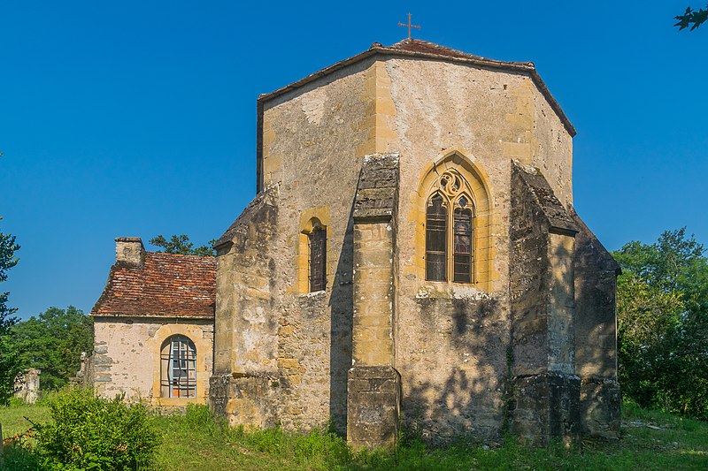 L'ancienne église Notre-Dame de Tisseyrolles fait partie des nombreuses églises reconstruites dans la région après les destructions causées par la guerre de Cent Ans. Elle est mentionnée en 961 dans le testament de Raymond Ier, comte de Rouergue. Démolie pendant la guerre de Cent Ans, elle a été reconstruite sur le même site à la fin du XVe siècle ou au début du XVIe siècle. De plan rectangulaire, l'édifice se termine à l'est par un chevet à trois pans coupés. La nef unique comprend deux travées, la seconde se confondant avec le chœur. La première travée est voûtée en croisée d'ogives, tandis que la seconde travée et le chœur sont couverts par une voûte sexpartite dont les arcs retombent sur des culs-de-lampe sculptés. La fenêtre d'axe est de style flamboyant et, à l'ouest, le portail s'ouvre en arc brisé. Le centre du mur de façade est percé d'un oculus garni d'une étoile à six branches. Un clocheton moderne surmonte le mur de façade ; il remplace peut-être un ancien clocher-mur. Une chapelle latérale, accolée à la première travée côté nord, a été démolie : il n'en subsiste que les fondations. La voûte de la nef s'est effondrée en 1737 et a été remplacée dans la seconde moitié du XIXe siècle par une voûte d'ogives en briques.