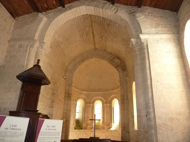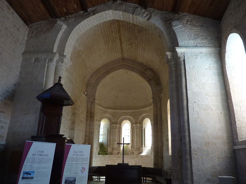 Cette église romane, aujourd'hui temple protestant, est mentionnée pour la première fois au XIVe siècle dans le plus ancien pouillé du diocèse de Poitiers, mais le grand appareil de l'abside et du chœur laisse penser que ses parties les plus anciennes remontent au XIIe siècle. Des actes d'assemblée paroissiale de 1599 et 1601 signalent la collecte de fonds pour l'acquisition de cloches, probablement disparues dans la tourmente des guerres de religion. Une date, 1686, gravée sur une pierre remployée au-dessus de la première baie gauche de la nef, pourrait se rapporter à des travaux commandés par M. Vallée, curé, sans que cela soit établi. Dès la seconde moitié du XVIIIe siècle, les paroissiens réclamaient des réparations concernant les murs et la charpente, le percement de baies et la reconstruction d'un clocher en très mauvais état. À la Révolution, l'édifice, devenu propriété communale, est cédé aux protestants pour servir de temple (an XI, 1803), mesure que le conseil presbytéral s'efforce de faire confirmer en 1833. À partir de 1838 se succèdent plusieurs campagnes de réfection et d'entretien, liées notamment à des problèmes récurrents d'insalubrité, ainsi que divers aménagements. En 1843, six ouvertures sont percées dans la nef, le clocher est dérasé et le temple doté de son mobilier. La façade est remaniée en 1873, un oculus caractéristique des temples protestants étant percé sur l'élévation ouest. L'étude de Deverin en 1907, puis le classement du chœur et de l'abside aux Monuments historiques en 1911 entraînent de nouveaux travaux financés par la commune. Une campagne de restauration complète du chœur et de l'abside a été conduite de 1983 à 1995. Aujourd'hui le temple est encore occasionnellement utilisé pour le culte et la nef sert momentanément de musée du protestantisme poitevin.