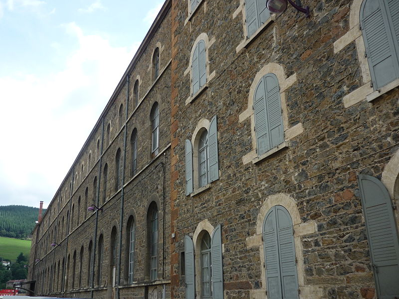 Le moulinage, qui subsiste avec les écuries après la destruction du tissage en 1970, est un long bâtiment percé de nombreuses et hautes fenêtres en plein cintre.