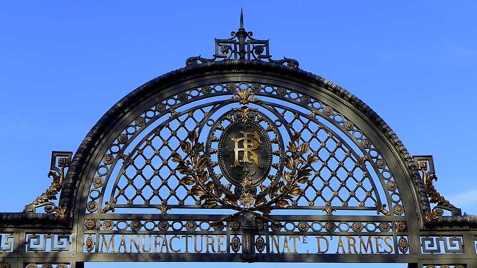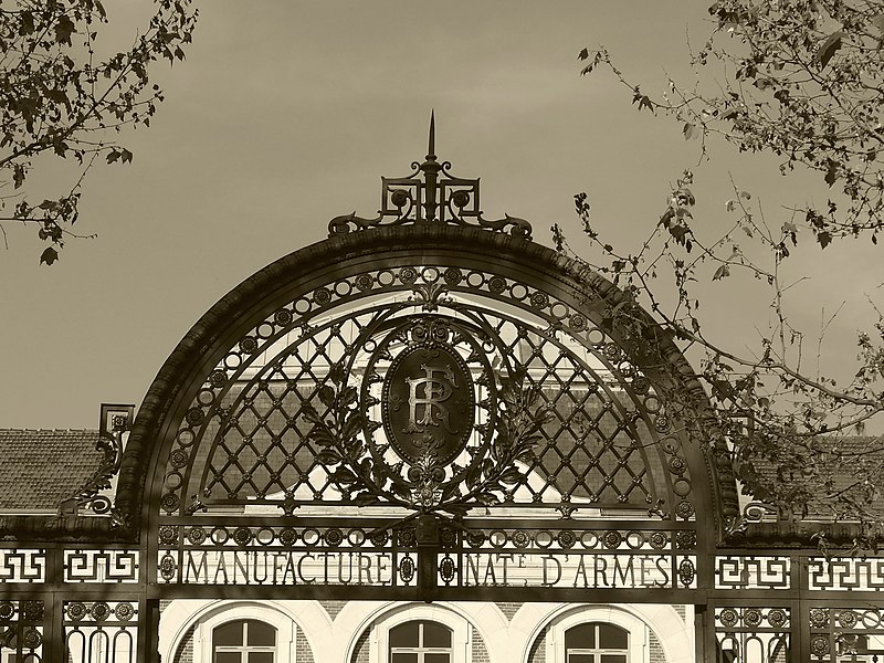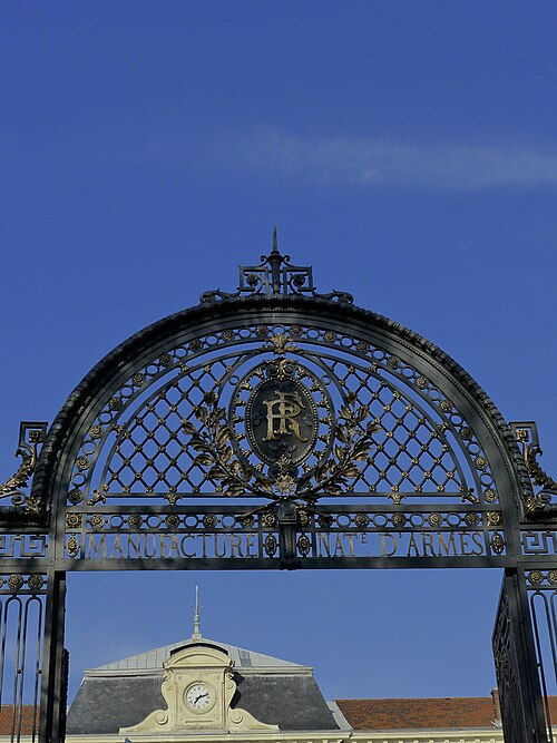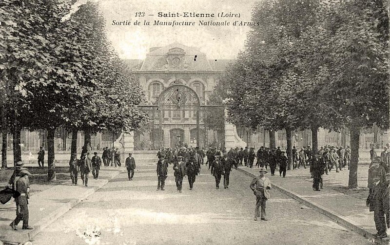 Construite de 1863 à 1868, l'ancienne manufacture impériale d'armes de Saint‑Étienne rassemble, selon une composition axiale, des bâtiments de production, d'administration et d'habitat. À l'ouest, la cour d'honneur est bordée par les bâtiments d'administration et les pavillons de logement directoriaux, précédés de jardins suspendus ; au centre se dresse la grande usine en double H, qui abrite quatre ateliers et la salle des machines. Le style éclectique mêle des références Louis XIII, Napoléon III et néo‑classiques aux structures modernes en fer et fonte, et les jardins conservent leurs essences d'origine. La manufacture royale d'armes est créée dans les années 1760 et, après des difficultés pendant la Révolution, se perfectionne sous la Restauration avant de recevoir d'importantes commandes autour de 1830. L'invention d'un nouvel arme à percussion conduit ensuite à la modernisation et à la réunion des ateliers dispersés, marquant la naissance d'une manufacture nouvelle, adaptée à l'usage des machines‑outils. En 1863, pour édifier la nouvelle manufacture au Treuil, le ministère de la Guerre répartit les constructions en trois groupes ; le premier, prévu pour 1864‑1865, comprenait la grande usine, le réservoir, l'usine à meule, le magasin à poudre, l'épreuve et le mur d'enceinte. Le montant initial des travaux était estimé à 769 648,80 F ; après projets complémentaires, le coût total atteint 1 199 391,29 F en 1866, somme qui couvre uniquement l'édification des bâtiments. La nouvelle manufacture est inaugurée le 26 avril 1866 lors de la mise en marche de la première machine à vapeur, et le chef d'escadron Boigeol succède au lieutenant‑colonel Jouffray à la direction à partir du 5 juin 1866. Les bâtiments actuels, datés de 1864, s'étendent sur douze hectares près de la place Carnot et s'inscrivent dans l'esprit des architectures rationalistes du XVIIIe siècle, évoquant la Saline royale d'Arc‑et‑Senans et le Grand‑Hornu. Palais industriel et militaire en briques rouges et pierres blanches, la manufacture illustre la puissance du Second Empire ; une partie des bâtiments, dont l'hôtel des directeurs, a été détruite pour la réalisation de la Cité du design. Saint‑Étienne, réputée depuis le Moyen Âge pour la coutellerie, fournissait déjà les arsenaux et comptait près de 80 moulins produisant armes de guerre et de chasse ; la production dépassait 12 000 armes par an à l'approche de la Révolution, obligeant le site à occuper plusieurs lieux dispersés en ville. En 1838, les frères Jovin vendent la manufacture au gouvernement, dont la production annuelle oscille alors entre 15 000 et 30 000 armes. Les premiers bâtiments de la nouvelle usine sont construits en 1864 — la grande usine de 155 × 130 mètres et un réservoir de 12 450 m3 —, complétés en 1866 par les bâtiments d'administration, les logements et la forge, puis en 1868 et 1870 par des ateliers de précision, de trempe, de montage et les bureaux. La superficie originelle au sol était de 22 000 m2 et la force motrice totale de 660 chevaux, permettant une production annuelle supérieure à 200 000 armes ; la manufacture traverse ensuite des difficultés pendant la guerre de 1870, et connaît une très forte industrialisation à la fin du XIXe siècle avec plus de 10 000 ouvriers et près de 9 000 machines produisant jusqu'à 1 600 fusils par jour. En 1894, la Manufacture devient un établissement d'État placé sous la direction du ministère de la Guerre. Au XXe siècle la production évolue au gré des conflits et des périodes de paix ; à partir des années 1960‑1970 la fabrication se diversifie en trois secteurs — armes et munitions légères, équipements blindés et défense chimique et nucléaire —, mais la baisse continue des commandes fait chuter les effectifs (plus de 11 000 en 1940 à 2 200 en 1981). GIAT Industries reprend la gestion en 1989 et l'activité se ralentit avant de cesser autour des années 2000‑2001. Le site de 12 hectares est depuis reconverti : la partie sud accueille plus de 300 logements résidentiels, la partie centrale la Cité du design et l'École supérieure d'art et design, la partie nord un centre de recherche et d'enseignement en optique‑vision, et l'ancienne imprimerie a été transformée en centre médiatique regroupant une école de médias et des bureaux de radios et télévisions. Le bâtiment dit « de l'horloge », la grille et le portail, les jardins, les murs de soutènement, les balustres, le monument aux morts, la grande usine dite « double H » avec sa salle des moteurs, l'ancienne usine des meules et l'atelier d'ajustage ont été inscrits au titre des monuments historiques par arrêté du 20 mars 2006. La manufacture a produit un large éventail d'armes : du pistolet de cavalerie modèle An XIII et du Chassepot (1866) aux revolvers Mas 1873 et 1874, en passant par le fusil Gras (1874), la baïonnette Gras modèle 1874 (1879), le revolver modèle 1892 (8 mm), le fusil Lebel (1886) et sa version raccourcie, le canon de 75 mm modèle 1897, la mitrailleuse modèle 1907, puis des armes et matériels du XXe siècle tels que les MAS 36 (1936), MAS 45 (1945), MAS 49 (1949), le MAC 50 (1950), l'AAT‑52 (1952), divers dérivés MAS (MAS 49/56), les fusils de précision FR‑F1 (1966) et leurs successeurs, le FAMAS (1973), des assemblages sous licence (HK G3 de 1977 à 1983, Beretta M12, MP5 sous la désignation MAS MP5F), ainsi que des lance‑roquettes LRAC F1 et d'autres munitions et cartouches. Certaines productions et prototypes ultérieurs mentionnés comprennent le PAMAS G1 (années 1980), le FA‑MAS Type 62 (prototype de 1962) et des armes d'appui comme l'AA52.