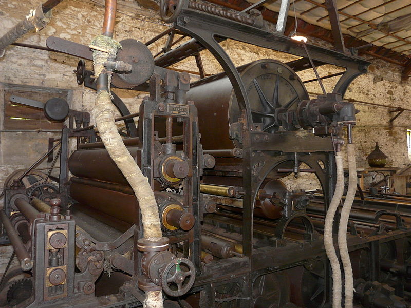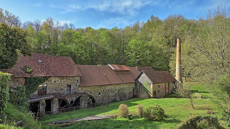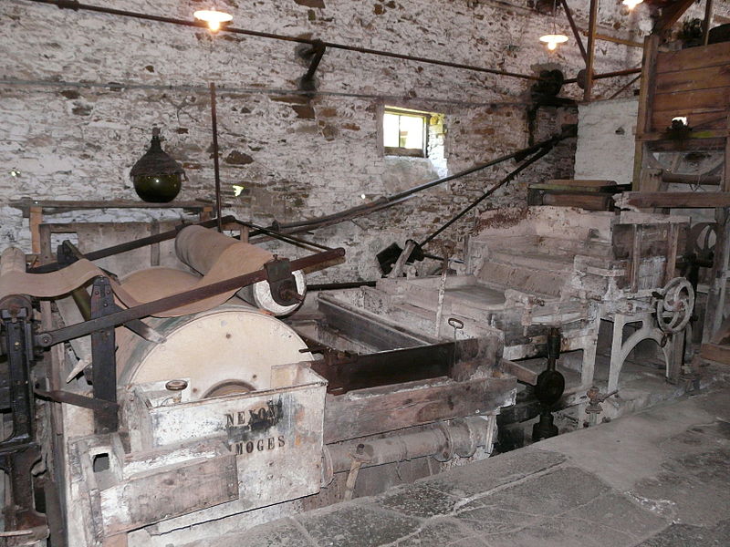 Camille Bon a établi la papeterie sur l'emplacement d'une ancienne forge à fer, convertie en 1861 en fabrique de papier de paille. Les roues à augets dateraient du XVIIIe siècle, tandis que l'essentiel des installations remonte à 1860. L'usine, remarquablement homogène, a conservé ses piles raffineuses construites à Angoulême, ainsi que la machine à forme ronde (Nexon, Limoges et Duveau et Trousset d'Angoulême) et la plupart des accessoires, notamment découpeuses, palans, rouleaux, mandrins et rateliers. Le papier de seigle, invention limousine dont le succès technique s'étendit à toute la région, servait à l'emballage des viandes chez le détaillant. La ligne de production, qui a fonctionné pendant plus d'un siècle avec le même matériel, comprenait deux roues hydrauliques verticales à augets entraînant les mécanismes, puis a été complétée par un gazogène. Une chaudière Serves Frères (Saint-Étienne, 1905), posée en 1925, apportait la chaleur nécessaire aux cylindres sécheurs. La papeterie a fonctionné jusqu'en 1968 ; la commune, qui a racheté les lieux, a entrepris sa réhabilitation.