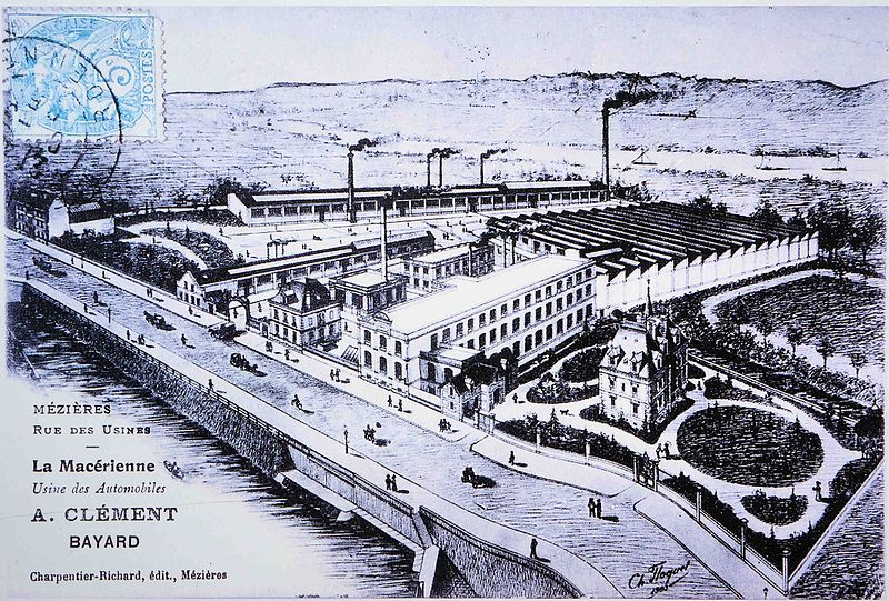L'ancienne usine métallurgique La Macérienne, à Charleville-Mézières, est un site industriel inscrit aux monuments historiques, connu pour avoir fabriqué des pièces pour les cycles Clément-Gladiator puis pour les automobiles Clément‑Bayard. La ville de Mézières, déclassée comme place forte en 1884, vit l'aménagement de terrains militaires situés au bord de la Meuse par le maire ingénieur Marie‑Georges Mialaret, qui y fit creuser un étang et un canal fournissant une force motrice bon marché. Profitant de cette offre, Adolphe Clément y installa en 1894 l'usine appelée La Macérienne, destinée à la production de pièces détachées, et développa le site jusqu'à la Première Guerre mondiale. Dès 1897 il s'oriente vers l'automobile en s'associant avec Gladiator pour les véhicules Clément‑Gladiator, puis voit évoluer la raison sociale et l'image de marque de son entreprise jusqu'aux noms Bayard‑Clément puis Clément‑Bayard. Pendant la Première Guerre mondiale, l'usine subit l'occupation allemande : des machines sont emportées, l'atelier mécanique sert d'hôpital militaire et la fonderie est réutilisée par l'état‑major ennemi. Après 1919, la production du site se tourne progressivement vers la fonderie, la construction mécanique sous licence (notamment pour des tracteurs et des pelleteuses), le traitement de surface des métaux et le rayonnage. Adolphe Clément conserva l'usine de Mézières alors qu'il céda d'autres installations, et ses descendants en restèrent propriétaires jusqu'en 1975 ; l'entreprise fermera en 1984. Depuis les années 2000, une partie des bureaux accueille des services municipaux, la friche accueille chaque année le festival Cabaret Vert, et la ville a engagé un projet de réhabilitation visant des usages économiques et culturels, incluant des locaux tertiaires et une scène de musiques actuelles. L'édifice a été inscrit au titre des monuments historiques en 2012 et 2014.