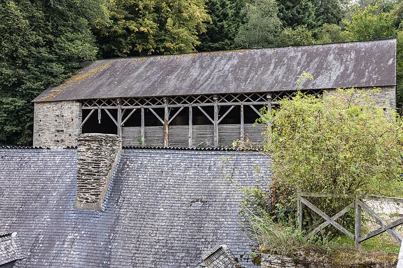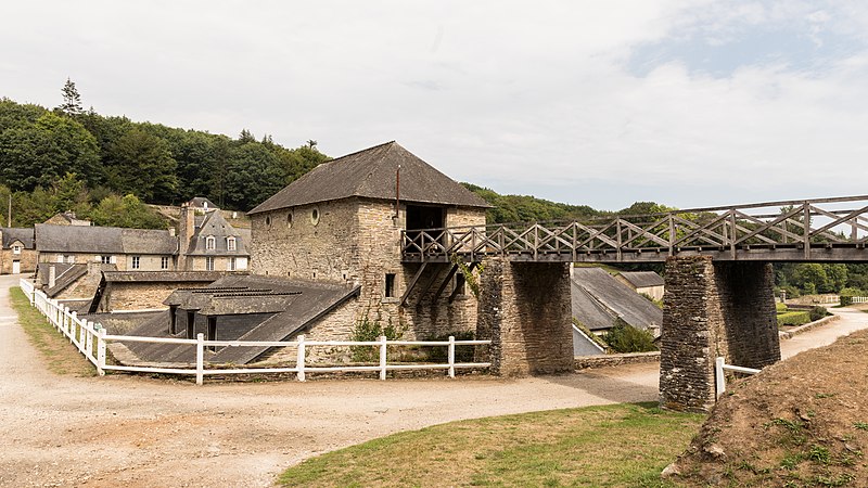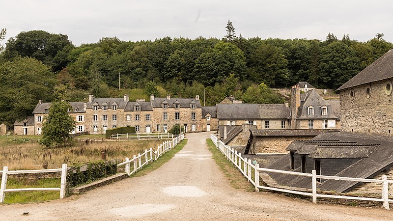 Les forges des Salles, implantées sur les communes de Sainte‑Brigitte (Morbihan) et Perret (Côtes‑d'Armor), forment un village sidérurgique fondé au début du XVIIe siècle et installé au cœur de la forêt de Quénécan. Établies entre 1621 et 1623 par Henri II de Rohan, elles ont introduit en Bretagne la technique indirecte et accueilli une fenderie confiée à Geoffroy de Finement. Plusieurs bâtiments furent remaniés au XVIIIe siècle — certains auraient été reconstruits en 1750 — et d'autres aménagés au XIXe siècle sous la famille de Janzé, propriétaires jusqu'à la fin de l'exploitation. L'activité métallurgique, qui produisait marmites, galettoires, verges à clous et boulets, s'appuyait sur les ressources locales : mines de minerai dans les collines voisines, forêts pour le charbon de bois et retenues d'eau aménagées pour actionner les roues hydrauliques. Quatre étangs (des Salles, du Vieux Fourneau, de la Forge Neuve, du Guéhault) alimentaient la forge, le plus vaste couvrant près de trente hectares ; un bief de plusieurs kilomètres reliait ces retenues pour assurer la force motrice nécessaire.