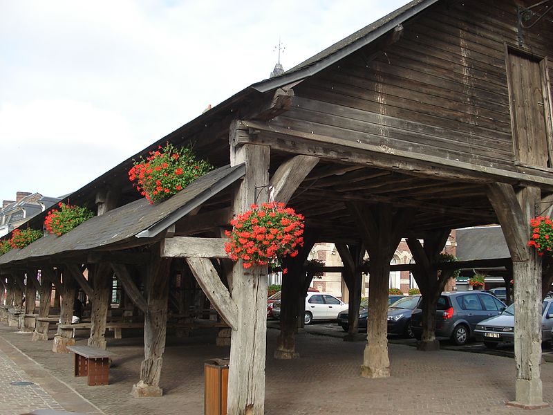 Les anciennes halles de Buchy se trouvent place de la Mairie, dans la commune de Buchy (Seine‑Maritime). La commune bénéficie du droit de tenir marché depuis le XIIIe siècle, droit confirmé au XVIIe siècle. Les halles actuelles ont été édifiées en 1679 et appartiennent à la municipalité depuis environ 1830. L'édifice est classé au titre des monuments historiques depuis le 26 mars 1934. Pour en savoir plus, on peut consulter Le Patrimoine des Communes de la Seine‑Maritime (Collectif, t. I, Éditions Flohic, 1997, p. 197, ISBN 2842340175) et des ressources en ligne telles que la page de la commune, la galerie Wikimedia Commons, une vidéo intitulée « La Seine‑Maritime confidentielle : les halles de Buchy » et le portail des monuments historiques.