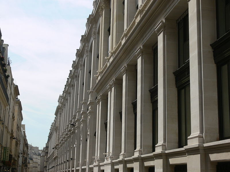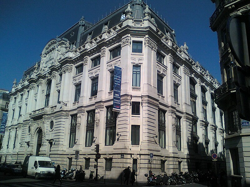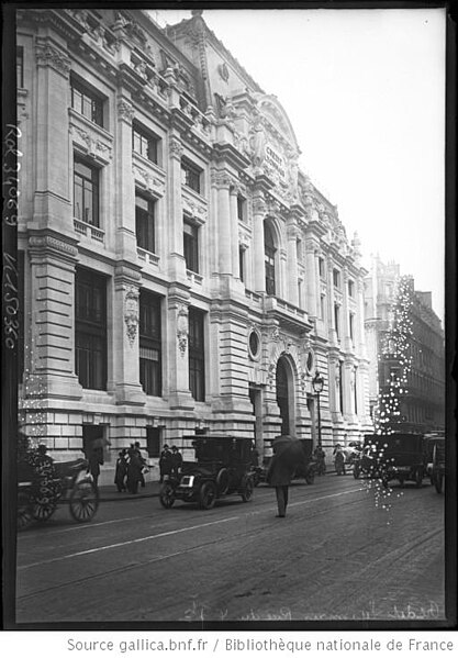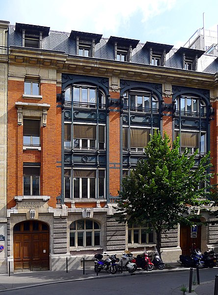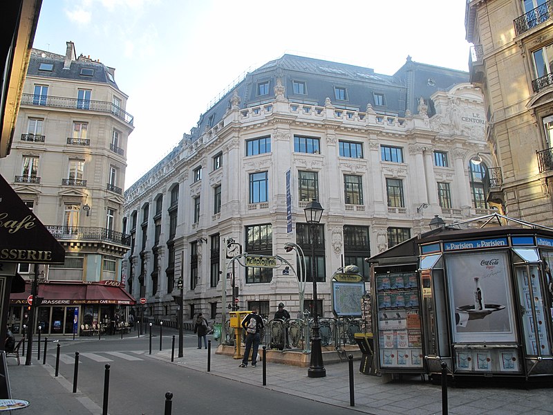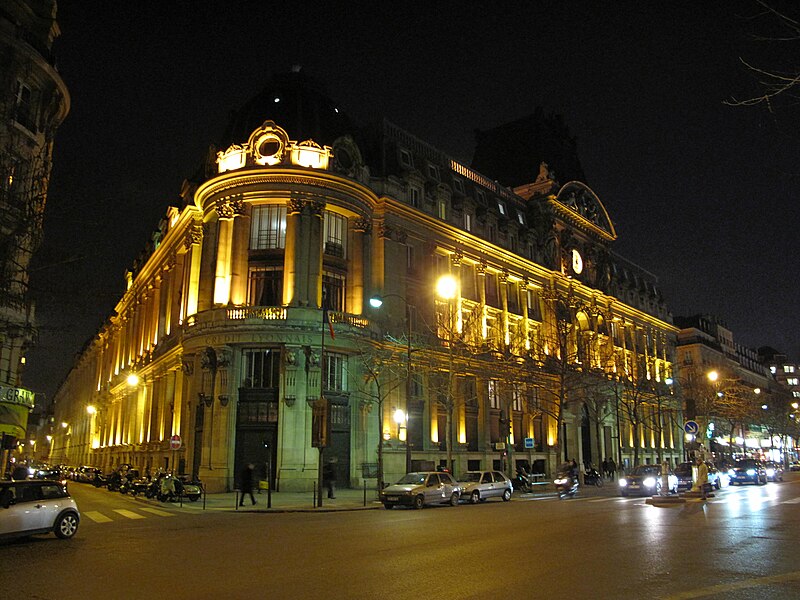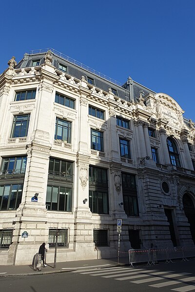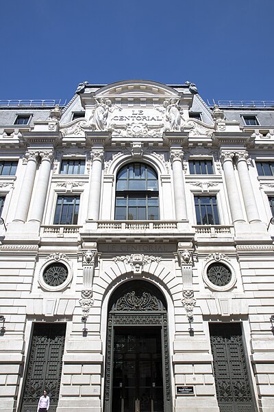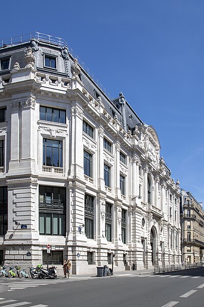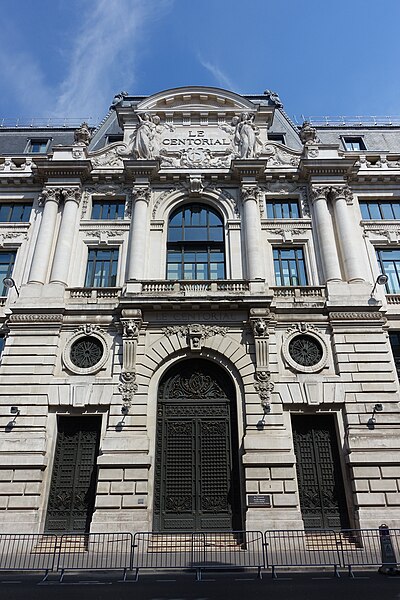 Banque fondée à Lyon en 1863 par Henri Germain, le Crédit Lyonnais installa son siège central parisien sur l’emplacement de l’hôtel de Boufflers à l’angle du boulevard des Italiens et de la rue de Choiseul, chantier engagé à partir de 1875. L’architecte William Bouwens van des Boijen, naturalisé français, assisté de son fils Richard, dirigea les premiers travaux et signa notamment, en 1882, le grand escalier à vis à double révolution inspiré de celui du château de Chambord. La construction se poursuivit par agrandissements successifs entre 1882 et 1913 sous la conduite des mêmes architectes, André-Félix Narjoux prenant la direction des travaux dès 1905 et Victor Laloux contribuant à l’achèvement et à la façade sur la rue du Quatre-Septembre en 1912-1913. En 1913, l’édifice occupait l’ensemble de l’îlot d’un hectare délimité par le boulevard des Italiens, la rue de Gramont, la rue du Quatre-Septembre et la rue de Choiseul ; son unité monumentale masque la diversité des campagnes de construction. Surnommé Hôtel des Italiens et propriété de LCL, le bâtiment, inscrit parmi les témoins de l’architecture commerciale parisienne de la fin du XIXe siècle, fut quitté par la banque en 2010 pour Villejuif ; il est desservi par les stations Quatre-Septembre et Richelieu–Drouot. À l’extérieur, le pavillon central, inspiré du pavillon de l’Horloge et du pavillon de Flore du Louvre, présente une double serlienne et un fronton sculpté par Camille Lefèvre représentant une allégorie des activités bancaires, soutenu par quatre cariatides autour d’une grande horloge. L’habillage en pierre recouvre une ossature métallique, en partie fournie par les établissements de Gustave Eiffel ; de vastes verrières éclairent deux halls d’extrémité et la grande galerie centrale. L’intérieur conserve la double vocation publique et hiérarchique voulue par ses concepteurs : halls et galeries traversants, bureaux non cloisonnés et espaces prestigieux comme la salle du conseil qui a gardé son décor et son mobilier. La salle des titres a disparu, mais subsistent l’agence centrale avec ses deux halls sur le boulevard des Italiens, modernisée dans son mobilier mais intacte dans son architecture, et l’agence Quatre-Septembre dont la coupole conserve son armature métallique peinte. L’escalier à double révolution demeure l’élément emblématique : conçu pour permettre à deux populations d’emprunter le même escalier sans se rencontrer, il alterne volées en pierre et marches métalliques aux étages supérieurs et s’éclaire par une verrière élevée, selon le parti pris industriel de l’époque. Au tournant du XXe siècle le bâtiment fut l’un des premiers de Paris à recevoir de l’électricité et des dispositifs originaux, comme des dalles vitrées pour éclairer les coffres, et comprenait des salles ouvertes et des guichets sans fermeture. Il échappa en 1957 à un projet de percement central au profit d’une tour de vingt étages et fit l’objet, au début des années 1970, d’une rénovation visant à moderniser installations et informatiques : la salle des titres due à Eiffel fut alors supprimée, la verrière retirée et un jardin suspendu installé au-dessus des bureaux. Le 14 mai 1976, le président Jacques Chaine fut assassiné devant le siège ; en avril 1996 le hall Quatre-Septembre servit de décor au tournage du film Le Cri de la soie. Le 5 mai 1996 un incendie déclenché dans la salle des marchés se déclara tôt le matin et, après l’effondrement de la dalle du jardin intérieur, se propagea violemment ; quelque 600 pompiers mobilisés mirent environ dix-neuf heures à maîtriser l’incendie, qui dévasta les deux tiers du côté de la rue du Quatre-Septembre, inonda partiellement la salle des coffres et fut qualifié d’incendie volontaire. Après ces dégâts importants, le Crédit Lyonnais vendit le siège pour 1,3 milliard de francs à l’assureur AIG ; le bâtiment fut alors séparé en deux, la banque conservant le cœur historique appelé « Hôtel des Italiens », qui représente environ un quart de l’ensemble et abrite notamment l’état-major, la salle du Conseil et l’escalier en double révolution, tandis que la partie la plus endommagée fut rebaptisée « le Centorial ». D’importants travaux de reconstruction engagés en janvier 2001 pour le compte du nouvel investisseur ont cherché à concilier la préservation des parties classées et la création d’un immeuble de bureaux moderne : la salle des marchés et le jardin suspendu furent remplacés par une longue galerie couverte d’une verrière métallique évoquant la galerie des titres originelle. Le lieu a depuis retrouvé des usages variés, accueillant notamment la rédaction du journal Les Échos en 2006 et le campus parisien de l’EDHEC en 2012. En 2008, la restitution d’un écusson décoratif en plomb aux armes de Lyon, œuvre de Jean‑Claude Duplessis, fut recommandée pour reposer au sommet du pavillon d’honneur afin de rétablir un élément de son décor d’origine.