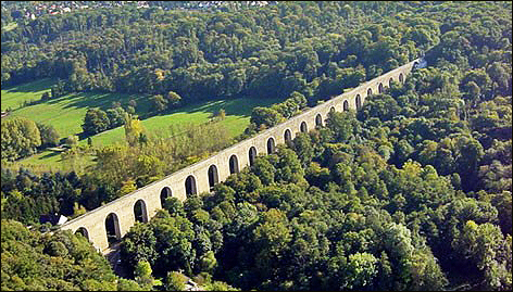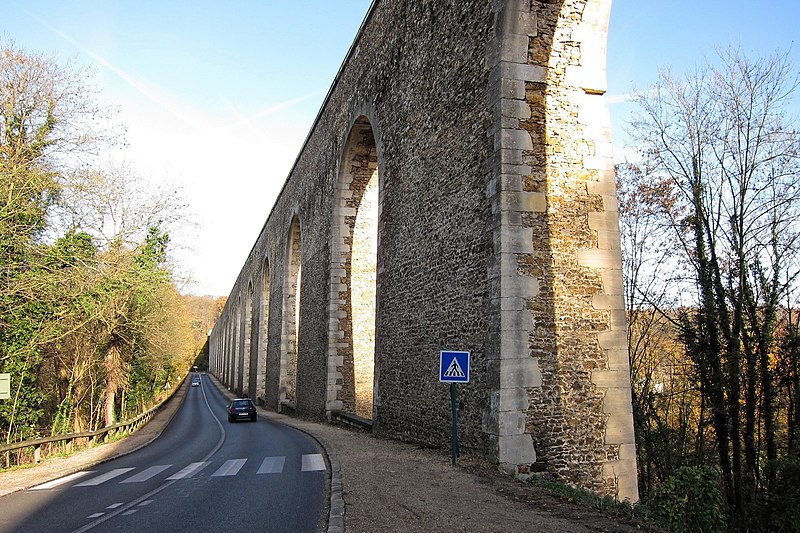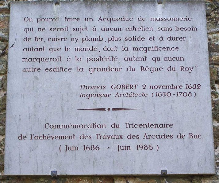 L'aqueduc de Buc, situé sur la commune de Buc dans les Yvelines, est un ouvrage conçu pour conduire vers Versailles les eaux drainées du plateau de Saclay. Construit entre 1682 et 1686 — certaines sources indiquent 1684-1686 — il répondait aux besoins croissants du parc de Versailles pour l'alimentation des fontaines et des jeux d'eau. Le projet fut dessiné par Jules Hardouin-Mansart et réalisé par l'ingénieur Thomas Gobert, sur ordre de Louvois ; la maison du fontainier accolée fut terminée en 1686 et est toujours habitée. L'aqueduc recueillait les eaux des étangs et des rigoles du plateau, avec des liaisons notamment vers l'étang du Trou Salé, le Pré-Clos à Toussus-le-Noble, l'étang d'Orsigny et, via un aqueduc souterrain, l'étang de Saclay, puis l'étang de Villiers par l'aqueduc des Mineurs. Contrairement à la machine de Marly, l'acheminement se faisait par simple gravité. Réalisé en pierre meulière avec chaînages et bandeaux d'arcades en pierre de taille, il remplaça un siphon hydraulique en fonte alors jugé inadapté. Les travaux furent exécutés notamment par les soldats du Régiment royal de Normandie. Mis en service le 13 juin 1686, l'ouvrage mesure 580 mètres de long et atteint une hauteur totale de 24 mètres ; son tunnel descend à plus de 30 mètres de profondeur. Il est composé de deux rangées superposées de 19 arcades, hautes de 21 mètres ; les piles inférieures, espacées de 9 mètres, ont une épaisseur de 4 mètres et reposent sur des fondations de 24 mètres. Au sommet, le canal proprement dit mesure 1 mètre de large pour 1,91 mètre de profondeur et est couvert de lourdes dalles de pierre. Une plaque commémorative du tricentenaire porte une citation de Thomas Gobert de 1682 qui loue la solidité et la longévité d'un aqueduc de maçonnerie. La partie de l'aqueduc allant de la décharge au sud jusqu'à la forêt au nord fait l'objet d'un classement au titre des Monuments historiques par arrêté du 22 septembre 1952.