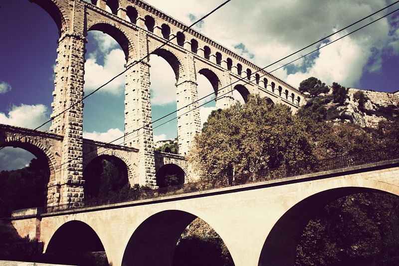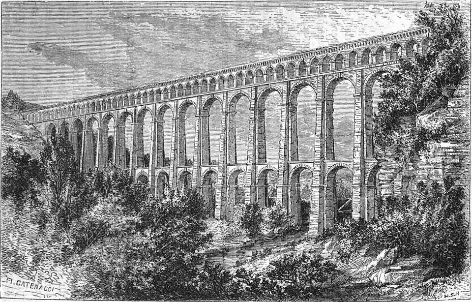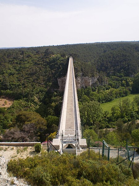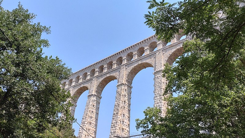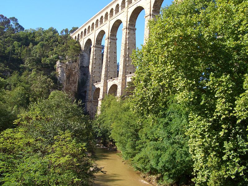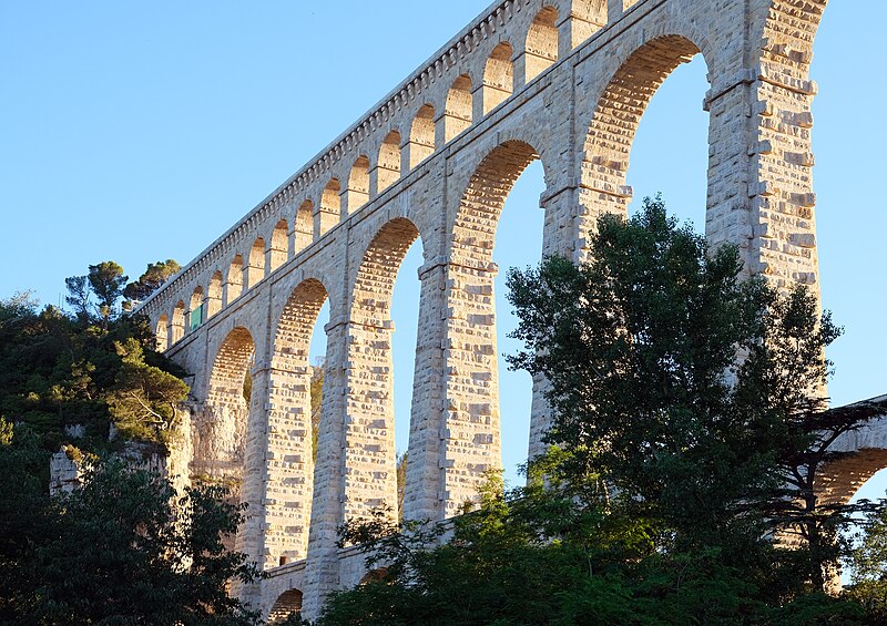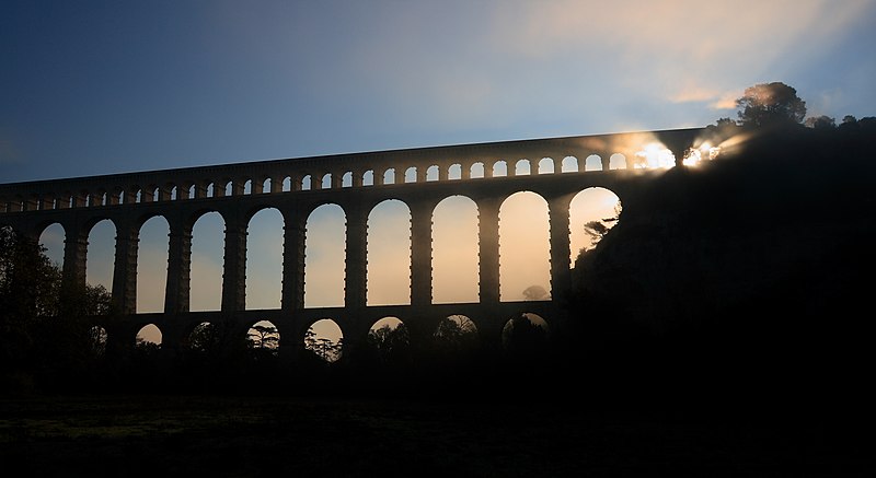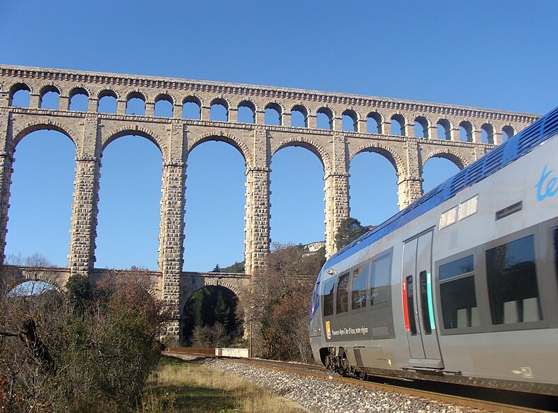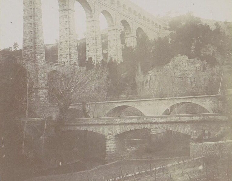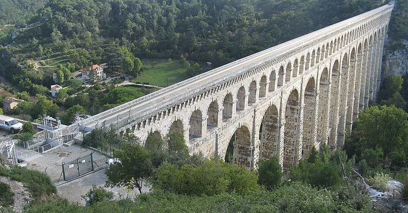 L'aqueduc de Roquefavour est un pont-aqueduc en pierre long de 393 mètres et haut de 82,65 mètres, situé sur la commune de Ventabren (Bouches‑du‑Rhône); il achemine l'eau de la Durance vers Marseille dans le cadre du canal de Marseille et franchit la vallée de l'Arc, la rivière, la route d'Aix-en‑Provence à Berre et la voie ferrée Aix‑Rognac. Sa construction, lancée en 1841 et achevée en 1847, a été dirigée par Jean François Mayor de Montricher; un technicien suisse nommé ingénieur en chef, secondé par William Fraisse, a assuré la conduite du chantier. Le projet, présenté après les sécheresses de 1833‑1834 et les troubles sanitaires qui ont suivi, avait été proposé en 1835 par le maire de Marseille Maximin‑Dominique Consolat; la ville choisit l'option d'un pont‑aqueduc en maçonnerie plutôt qu'un pont‑siphon malgré un coût de 3 784 871 francs‑or, sensiblement supérieur à des ouvrages contemporains. Les sondages et recherches de carrières furent menés en 1839‑1840, l'adjudication intervint en 1840 et les travaux débutèrent l'année suivante. Le chantier mobilisa 5 000 ouvriers, dont environ 300 tailleurs de pierre; les blocs, parfois lourds de 15 tonnes, venaient de carrières à Velaux et étaient acheminés sur une voie ferrée de 9 km créée pour l'occasion. La réalisation se révéla plus complexe et plus coûteuse que prévu; après des tensions contractuelles, le ministre des Travaux publics Jean‑Baptiste Teste ordonna la poursuite des travaux le 16 avril 1842 et la suite se fit en régie. L'ouvrage fut terminé en mai 1847 et, le 30 juin, l'eau de la Durance franchit pour la première fois le pont‑aqueduc. La capacité de transit a été augmentée en 1971 à 4,4 m3/s grâce à deux conduites superposées d'un mètre de diamètre intégrées au troisième niveau, puis en 1975 la cunette a été remplacée par un tuyau de 2,20 mètres de diamètre. L'aqueduc, largement inspiré du pont du Gard et construit sur trois étages, est considéré comme le plus haut aqueduc en pierre du monde; il mesure 393 m de long et sa hauteur atteint pratiquement le double de celle du pont du Gard. Sur le plan architectural, la base comprend 12 arches d'ouverture 15 m et une hauteur de 34,1 m, le deuxième niveau comporte 15 arcades de 16 m d'ouverture et 34,9 m de hauteur, et le troisième niveau compte 53 arches de 5 m d'ouverture pour 13,5 m de hauteur; les faces intérieures des blocs ont été taillées tandis que les parements extérieurs ont été laissés bruts pour des raisons d'économie, produisant des effets d'ombre et de lumière. L'ouvrage a longtemps été présenté comme le plus grand ouvrage en pierre de son type et a joué un rôle symbolique dans l'arrivée de l'eau à Marseille, liée notamment à la construction du Palais Longchamp; Alphonse de Lamartine le qualifia de « merveille du monde ». Le monument a aussi suscité des critiques, par exemple en 1990 de la part de Bernard Marrey au sujet de ses proportions et de son coût; Louis Napoléon Bonaparte récompensa Jean François Mayor de Montricher en lui décernant la croix d'officier de la Légion d'honneur en 1852. L'aqueduc est classé monument historique depuis 2005. En 2016, le canal de Marseille, dont l'aqueduc de Roquefavour, a fourni 240 millions de m3 d'eau potable, soit 80 % de la consommation de Marseille. Des travaux de restauration importants, lancés en 2020 et prévus pour 44 mois afin d'assurer la pérennité de l'ouvrage, se sont achevés avec la pose de la dernière pierre le 17 mai 2024 par Martine Vassal; le chantier a coûté 16,8 millions d'euros hors taxes, financés en majeure partie par la métropole (10,4 M€, soit 62 %), la Direction régionale des Affaires culturelles (2,9 M€) et l'Agence de l'eau (3,5 M€). L'aqueduc a été représenté dès le XIXe siècle, notamment par Édouard Baldus et par un dessin de Freeman, et figure dans des prises de vues modernes ainsi que dans plusieurs productions audiovisuelles, parmi lesquelles des épisodes des séries Draculi & Gandolfi et Tout cela je te le donnerai, ainsi que le film Un petit miracle.