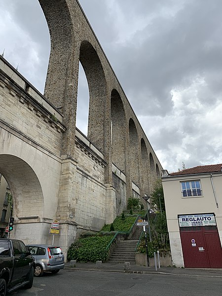 Le pont-aqueduc d'Arcueil-Cachan est le seul ouvrage d'art apparent de l'aqueduc : long de 379 mètres et haut au maximum de 18,86 mètres, il a été construit par Thomas Francine et Louis Métezeau, se compose de deux massifs flanquant une partie centrale à dix-huit travées dont neuf en arc plein cintre, est limité par les regards n°13 et n°14 et domine le cimetière de Cachan ; il est classé au titre des monuments historiques.