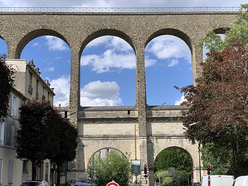L’aqueduc Médicis, dit aussi aqueduc des Eaux de Rungis, a été construit sur ordre de Marie de Médicis pour conduire à Paris les sources captées à Rungis, dans l’actuel Val‑de‑Marne ; il appartient à la Ville de Paris et est géré par Eau de Paris. Mis en eau le 19 mai 1623 jusqu’à la Maison du Fontainier, il fallut attendre cinq ans pour qu’il fournisse les fontaines publiques de la capitale. Il s’agit essentiellement d’une galerie souterraine qui franchit la vallée de la Bièvre par un pont‑aqueduc entre Arcueil et Cachan, ouvrage qui a valu à l’ouvrage son ancien nom d’« aqueduc d’Arcueil ». La portion extérieure à Paris est inscrite au titre des monuments historiques et certains éléments sont classés. Les travaux furent adjugés en 1612 à Jean Coingt, dont le gendre Jean Gobelain prit la suite après sa mort ; le jeune Louis XIII posa la première pierre du grand regard de Rungis en juillet 1613. À l’origine long de 12 936 mètres, l’aqueduc reliait le carré des eaux de Rungis au château d’eau de l’Observatoire à Paris en traversant Fresnes, L’Haÿ‑les‑Roses, Cachan, Arcueil, Gentilly puis les 14e et 6e arrondissements. Sous le Second Empire, la partie parisienne fut déclassée : à partir du boulevard Jourdan les eaux furent acheminées vers les réservoirs du Panthéon, puis, après la suppression de ceux‑ci en 1904, déversées dans le lac du parc Montsouris, ce qui réduit la longueur actuelle à 10 420 mètres. Contrairement aux aqueducs du Second Empire, son tracé n’est pas matérialisé en surface et il traverse des propriétés privées soumises à une servitude de 30 mètres de part et d’autre, limitant constructions et installations polluantes. La galerie souterraine fait environ un mètre de large et 1,75 mètre de hauteur, voûtée en plein cintre et appuyée sur des murs en meulière et caillasse liés au mortier, avec des chaînages de pierres de taille ; le sol présente deux banquettes séparées par une cunette carrée d’environ 40 centimètres. Située à quelques mètres sous le niveau du sol (jusqu’à 15 mètres entre Rungis et Fresnes), elle permet de marcher à sec sur toute sa longueur et présente une pente moyenne de 1,4 m pour 1 000 m. L’eau y circule librement jusqu’au regard n°10 à Cachan ; au‑delà, elle chemine dans une conduite en fonte installée lors du raccordement aux réservoirs du Panthéon. La galerie n’a jamais été reconstruite intégralement, malgré des réparations ponctuelles, la réalisation de deux siphons au niveau des autoroutes A86 et A6, et une déviation contournant le parc Médicis. Les regards, édicules permettant l’accès à la galerie via un escalier et favorisant l’oxygénation et la décantation, jalonnent le parcours avec 21 regards encore en service et 258 trappes de visite ; seuls les n°16 et 21 n’existent plus en surface. Les regards n°1 à Rungis (regard Louis‑XIII), n°3 à Fresnes et n°13 à Arcueil sont classés au titre des monuments historiques. L’ancienne partie parisienne comptait six regards ; le n°27, le château d’eau de l’Observatoire ou « Maison du Fontainier », abritait le logement du fontainier et, en sous‑sol, la répartition des eaux entre le roi, la ville et les communautés religieuses ; ses sous‑sols, restaurés en partie et accessibles au public sous condition, ont été classés en 1994. Parmi les autres regards parisiens subsistent les n°25, visible depuis l’avenue René‑Coty dans l’enceinte de l’hôpital La Rochefoucauld, et n°26 dans les jardins de l’Observatoire ; certains tronçons parisiens ont été cédés à des riverains et transformés en caves ou abris. Le débit primitif fut réparti en deux parts, 18 pouces pour le palais et les jardins du Luxembourg et 12 pouces pour les besoins publics, alimentant quatorze fontaines publiques ou privées telles que la fontaine des Carmélites, la fontaine du Pot‑de‑Fer rue Mouffetard, la fontaine Censier, la fontaine Saint‑Magloire, la fontaine du collège de Navarre, la fontaine Sainte‑Geneviève et la fontaine Saint‑Côme. Le pont‑aqueduc d’Arcueil‑Cachan est le seul ouvrage d’art en surface de l’aqueduc : long de 379 mètres et haut de 18,86 mètres, il se compose de deux massifs en maçonnerie encadrant une partie centrale de dix‑huit travées dont neuf arcades en plein cintre ; œuvre de Thomas Francine et de Louis Métezeau, il est classé au titre des monuments historiques. Le captage initial s’effectuait au carré des eaux de Rungis, une galerie collectrice alimentée par des barbacanes, mais ce bassin ne recueillait qu’environ 40 % des eaux de l’ancien aqueduc de Lutèce ; d’autres sources et captages, comme la Pirouette et le Maillet à Rungis, la Fontaine Pesée à Cachan et des prises de la plaine sud vers Wissous et Morangis, furent par la suite raccordés. À la fin du XIXe siècle et au XXe siècle, des travaux liés à l’aqueduc de la Vanne puis l’urbanisation et l’extension de l’aéroport d’Orly ont drainé et asséché la plupart des sources de Rungis, de sorte que l’aqueduc n’est aujourd’hui alimenté que par les eaux de la plaine de Paray et des coteaux de la Bièvre. Les eaux, longtemps réputées très limpides et fortement calcaires, ont perdu cette qualité avec l’urbanisation ; une analyse réalisée sur un prélèvement à Montsouris en 1996 montrait des concentrations élevées de bactéries pathogènes, de nitrates, de sulfates et de fer. Le musée Carnavalet conserve de nombreuses représentations et objets liés à l’aqueduc, dont une médaille de 1614 commémorant le commencement des travaux.