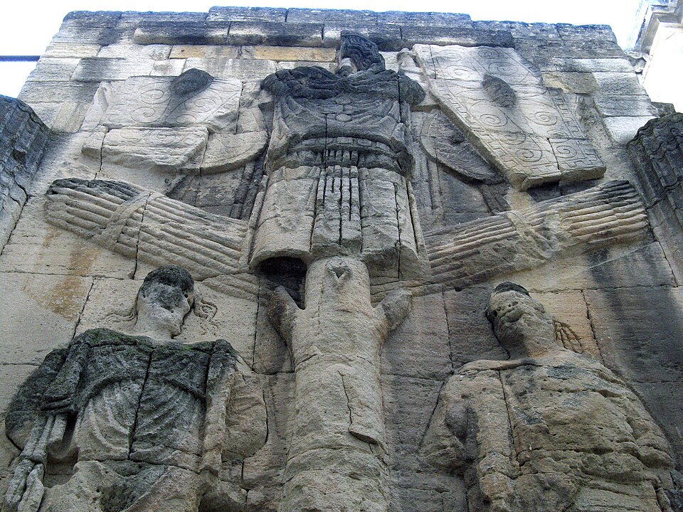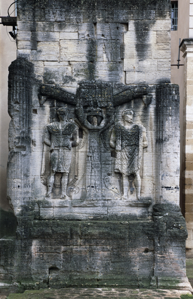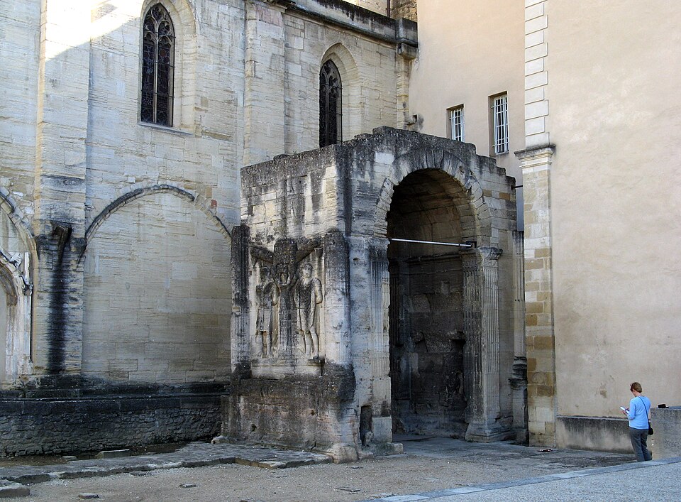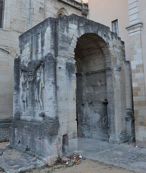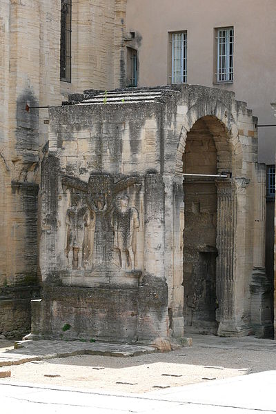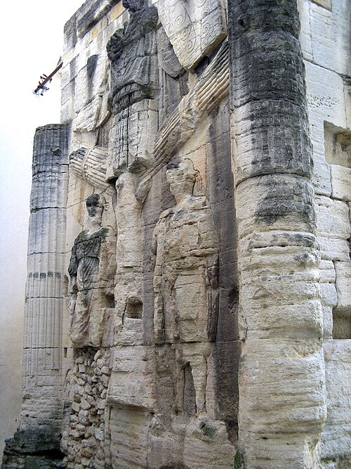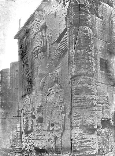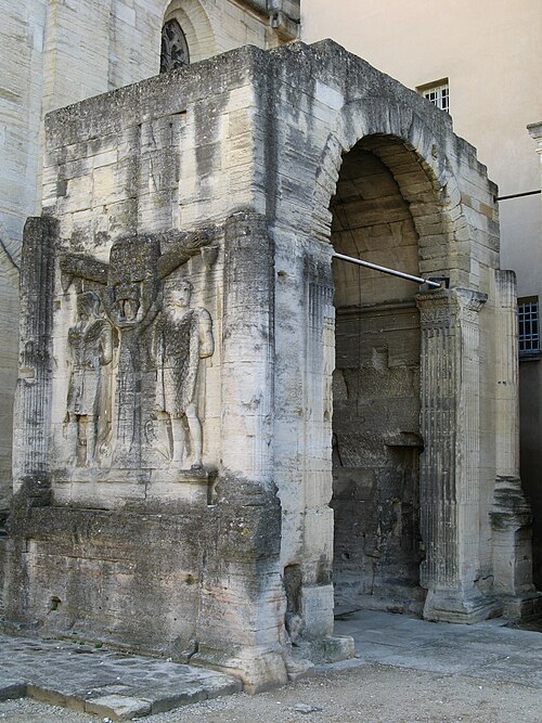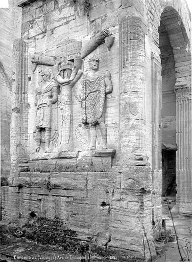 L'arc de Carpentras est un arc monumental romain du Ier siècle, situé dans le centre historique de Carpentras (Vaucluse), entre la cathédrale Saint‑Siffrein et le palais de Justice. Il a été classé sur la première liste des monuments historiques en 1840. Selon l'historien Robert Turcan, il aurait été élevé au Ier siècle en l'honneur de l'empereur Tibère, peut‑être aussi en mémoire de son père, fondateur de la colonie Colonia Julia Meminorum, dite Forum Neronis. À l'époque de sa construction, la ville était la capitale des Memini et figurait parmi les vingt‑deux cités gauloises les plus importantes ; l'arc marquait l'entrée du forum, place publique rassemblant les principaux édifices civiques. La tradition historiographique, non confirmée, évoque un réemploi de l'arc dans la cathédrale romane détruite en 1404. Le cardinal Bichi a intégré l'arc dans la partie ouest de son palais épiscopal, aujourd'hui palais de Justice, et l'édifice a ensuite subi des aménagements où l'arc a même fait partie de l'architecture de la cuisine. Plusieurs projets de déplacement ont été proposés, notamment en 1879 par J. Martin, qui proposait de vendre le monument au musée de Saint‑Germain auquel le musée n'a fourni qu'un moulage des façades, et en 1936 par la commune, sans autorisation de la Commission des Monuments Historiques. L'arc a été décrit par Jules Formigé en 1909 et représenté, entre autres, par des lithographies de Jean Joseph Bonaventure Laurens. Des prisons XIXe jouxtant le palais de Justice enserraient le monument ; ces constructions ont été démolies en 1968, rendant l'arc plus accessible. L'architecture de l'ouvrage rappelle l'arc d'Auguste (arc de Suse) et, comme l'arc d'Orange, présente ses reliefs sur les faces latérales. L'arc mesure environ 10 mètres de hauteur, 7,8 mètres de largeur et 4,53 mètres de profondeur ; il est adossé à la cathédrale Saint‑Siffrein. Il comporte une unique ouverture appuyée sur des pilastres cannelés et deux faces latérales sculptées de trophées encadrant des captifs. Sur la face ouest, un arbre à deux branches est dressé entre deux captifs : à gauche un personnage imberbe coiffé du bonnet phrygien, vêtu d'une tunique ceinturée et d'un long manteau, avec une hache à double tranchant à ses pieds ; à droite un personnage vêtu d'une peau de bête, interprété comme un roi ou tyran hellénistique, avec une sica en forme de tête d'oiseau à ses pieds. Ces reliefs sont interprétés comme la représentation de la défaite d'Orientaux et de peuples du Nord. La face est, difficilement visible en raison de la proximité du bâtiment voisin, présente également deux captifs : le prisonnier de gauche porte des éléments rappelant la cuirasse de l'Auguste de Prima Porta et un casque de type gladiateur de Pompéi, tandis que celui de droite est flanqué d'une chlamyde et porte un diadème. Les façades latérales conservent encore des décors sculptés témoignant de la qualité du relief antique.