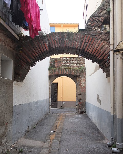 L'Arc sur l'impasse, à Elne (Pyrénées-Orientales), est une arcade du XVIe siècle située entre les nos 10 et 12 de la rue Constantin et donnant accès à une petite impasse. Il s'agit d'un arc en plein cintre, légèrement désaxé par rapport au passage. Une arrière-voussure lui fait suite et repose, à gauche, sur un pilier de briques et, à droite, directement sur le mur ; l'encadrement intérieur est chanfreiné. La clé en marbre porte, en creux, la date de 1569 et un cartouche décoré d'enroulements et de volutes. En relief figurent une paire de ciseaux — une lame large et l'autre évidée — dont les branches ouvertes servent de support à deux oiseaux affrontés. Ce petit passage a vraisemblablement desservi des maisons ou des ateliers d'artisans, comme en témoignent ces emblèmes de métier sculptés sur la clé. L'arc est inscrit aux Monuments historiques depuis le 19 décembre 1972.