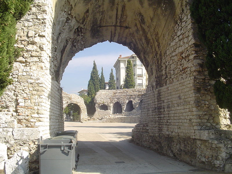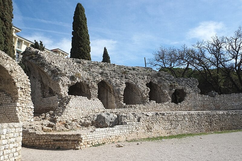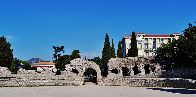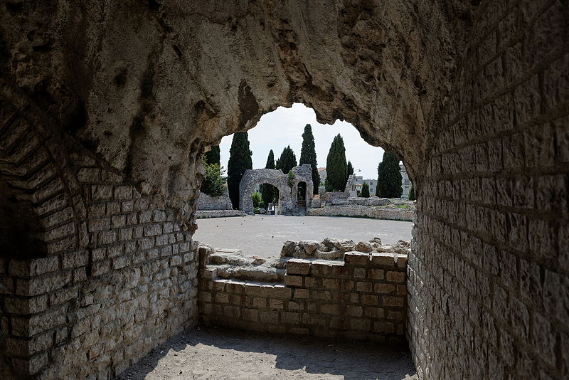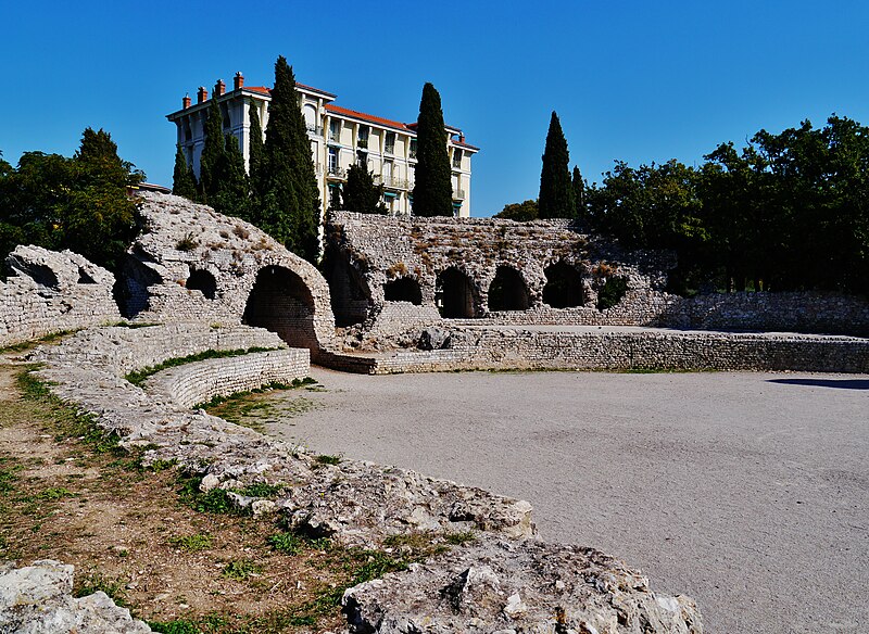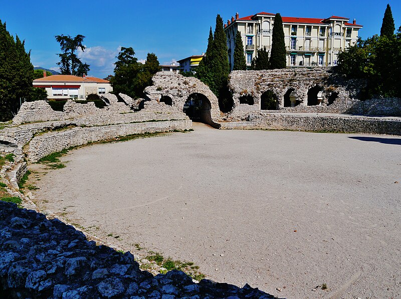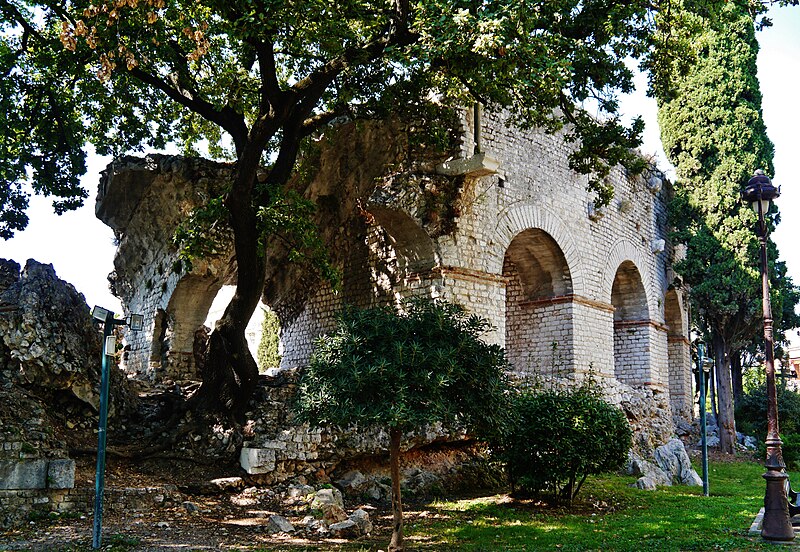 Les Arènes de Cimiez sont un amphithéâtre romain situé à Nice, dans le quartier de Cimiez. Monument de spectacles de la ville antique de Cemenelum, il figure parmi les plus petits amphithéâtres recensés en Gaule, avec une capacité estimée à 4 000 spectateurs. Construit en deux campagnes successives entre 70 et 80 de notre ère, il paraît abandonné au IVe siècle. Fouillé dans les années 1930-1940 puis en 2007, le site est ouvert au public et accueille encore des manifestations culturelles. Classé monument historique en 1965, l'édifice occupe l'angle nord-ouest d'une ville antique couvrant environ vingt hectares, les thermes romains se trouvant au sud-est. Les limites de Cemenelum sont déduites de l'emplacement des nécropoles, situées hors de l'espace urbanisé, ce qui situe l'amphithéâtre dans ce secteur nord-ouest. La première phase de construction concerne l'arène et une cavea réduite à trois rangs de gradins établis sur un remblai issu de la mise à niveau de l'arène ; des fosses du Ier siècle occupaient auparavant cet emplacement. Des trous observés sur la face externe, d'abord interprétés comme supports de gradins en bois, sont aujourd'hui considérés comme des trous de boulins liés au montage des échafaudages. La maçonnerie de cette phase est réalisée en petit appareil de moellons sans emploi de briques ni de tuiles, avec joints au mortier. Lors d'une seconde campagne, probablement au IIIe siècle, l'amphithéâtre est agrandi par la construction de deux gradins supplémentaires, l'incorporation de lits de terre cuite architecturale (opus mixtum) et la modification des accès par un promenoir annulaire et des escaliers. Ces travaux coupent également un aqueduc qui longeait le monument dans son premier état. Dans sa configuration agrandie, l'amphithéâtre forme une ellipse de 67,20 × 56 m, avec une arène de 46 × 34,80 m, et était pourvu d'un velum dont certains points d'ancrage sont encore visibles. Le rôle primitif du monument reste discuté : sa petite taille a fait envisager un usage militaire d'entraînement, mais l'absence de cages et de fosses et la capacité limitée rendent peu vraisemblable la tenue de combats d'animaux ou d'affrontements opposant de nombreux gladiateurs, ce qui suggère plutôt des jeux destinés à distraire la population. Après son abandon, des monnaies retrouvées dans les matériaux de démolition indiquent un abandon au plus tôt à la fin du IIIe siècle, et la reprise des entrées nord et sud avant l'an 350 traduit peut-être un changement d'affectation. L'arène a ensuite servi de jardin et de vignoble ; la partie orientale des gradins a été en partie supprimée au profit d'une rue qui passa plus tard dans l'arène avant des restaurations. Les observations et fouilles depuis le XVIe siècle sont nombreuses — Michel de L'Hospital signale les ruines en 1559, des relevés et fouilles se poursuivent aux XIXe et XXe siècles avec des interventions notables de Nino Lamboglia et de Paul‑Marie Duval, et un programme de fouilles d'études a été mené en 2007. Malgré des dégradations, une grande partie du monument reste visible : le mur-podium de l'arène est conservé sur presque tout son périmètre, les vomitoires nord et sud subsistent, ainsi que les gradins inférieurs et certaines portions des gradins supérieurs au-dessus des voûtes. Les vestiges accessibles forment le « jardin des arènes de Cimiez » et les objets découverts lors des fouilles sont conservés et exposés au musée archéologique de Nice‑Cimiez, situé au sud de l'amphithéâtre. L'édifice conserve son affectation principale de lieu de spectacle en accueillant des concerts et animations, notamment le Nice Jazz Festival de 1974 à 2010 et les manifestations de la Fête des Mai.