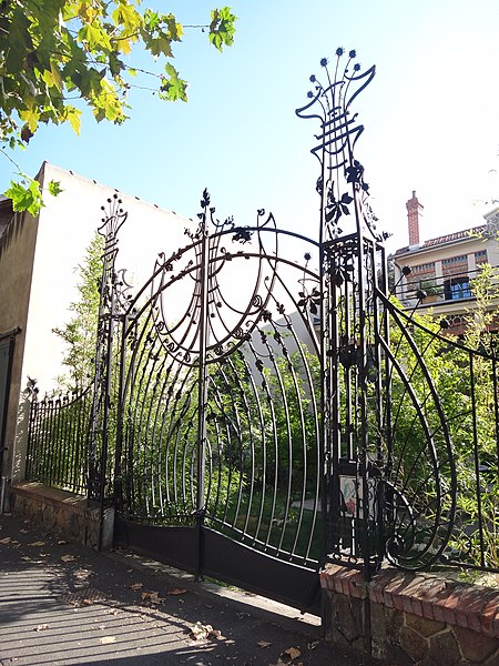 Construite en 1912 par l'architecte Louis Raynaud pour Auguste Bernardin, qui exécuta de nombreux ouvrages de ferronnerie publics et privés, la maison associait production et habitation tout en conservant leur autonomie. Le rez-de-chaussée aménageait un vaste espace fonctionnel rendu possible par des structures métalliques supprimant les divisions intérieures et ouvert sur l'extérieur par de grandes verrières. À l'étage, en retrait, se situe un logement desservant deux terrasses. Le bâtiment jouait aussi le rôle d'enseigne pour l'atelier : la grille de ferronnerie fermant la cour côté rue, réalisée par Bernardin, se distingue par la complexité de son exécution, l'élégance de son dessin et l'exubérance de son décor.