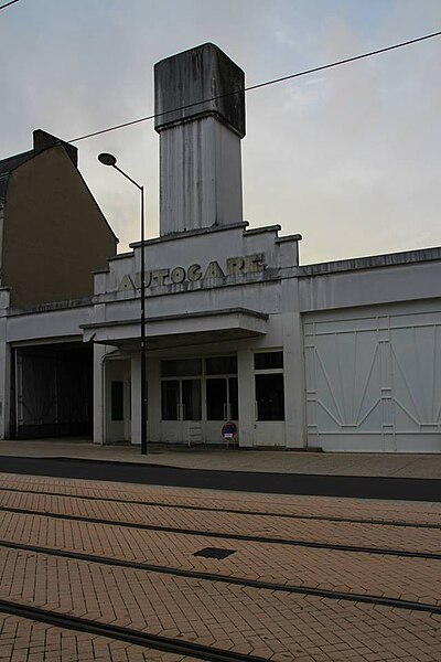 L’autogare de la Société des transports automobiles de l’Ouest (S.T.A.O.) a été construite en 1935 au Mans par la S.T.A.O., réseau issu de la Société centrale de chemins de fer et d’entreprise, devenue Compagnie générale des transports Verney (GTV) en 1990. Située au 20 avenue du Général-Leclerc, à proximité de la gare SNCF, elle a longtemps assuré l’arrivée et le départ des autocars interurbains du réseau sarthois jusqu’à la réalisation du pôle multimodal de la gare en juillet 2013. L’édifice, inscrit au titre des monuments historiques en 2008, comprend un hall voyageurs en rotonde couvert par une coupole en béton et pavés de verre sertis, flanqué de couloirs latéraux de départ et d’arrivée couverts par des dalles de béton associant des canons de verre enchâssés. Propriété du groupe Verney, puis rachetée par Connex, la gare a fait l’objet d’un projet immobilier après sa vente à un promoteur : l’arrière du bâtiment a été détruit pour laisser place à un immeuble de rapport de trente appartements et un parking souterrain donnant sur la rue Auvray, tandis que seuls 500 m², côté avenue du Général-Leclerc, ont été préservés en raison de la protection de la façade et de la coupole. Sur la façade rénovée, le portail métallique gauche a été réinstallé et le portail droit a retrouvé un aspect ajouré, mais les cartouches d’origine portant l’inscription « STAO » ont disparu. Le traitement de l’entrée oppose ainsi le maintien de la façade protégée et une intervention contemporaine autonome, donnant à l’ensemble un déséquilibre perceptible.
