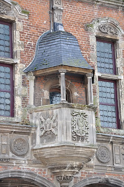 De conception flamande et de style Renaissance, l’édifice présente un plan quadrilatère irrégulier et une surface au sol de 125 m2. Il compte quatre niveaux — cave, salle du rez-de-chaussée, grande salle du premier étage et combles — reliés par un escalier en bois dont la rampe est d’origine ; la grande salle du premier étage, la plus vaste, mesure dix par onze mètres. Les façades, richement ornées, sont l’un des traits les plus remarqués du bailliage : de fines colonnes en pierre bleue supportent des arcades ouvrant sur la Grand’Place et la rue du Bourg, tandis que le reste des élévations combine brique rouge, craie blanche sculptée et un soubassement en grès dur gris. Une frise sommitale porte les attributs de la Toison d’or et est surmontée de statues représentant les trois vertus théologales, les quatre vertus cardinales, les quatre éléments et un personnage non identifié ; rue du Bourg, deux cartouches « ANNO » et « 1600 » indiquent la date de construction.