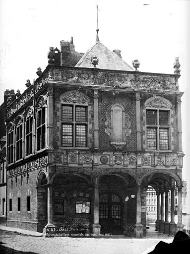 L’ancien bailliage d’Aire-sur-la-Lys (Pas-de-Calais) est un édifice administratif classé monument historique en 1886. Il doit son nom au fait d’avoir accueilli à plusieurs reprises, aux XVIIe et XVIIIe siècles, le tribunal du bailli, mais il a d’abord été construit pour servir de corps de garde à la milice municipale. Souhaité par les magistrats à la fin du XVIe siècle, sa construction fut officiellement demandée aux autorités de Bruxelles en 1595 et financée par un impôt sur la consommation de bière et de vin autorisé en 1597 ; ces recettes ont parfois été affectées à la nourriture des troupes wallonnes stationnées à Aire pendant les sièges d’Arras et d’Amiens, et l’imposition se poursuivit jusqu’en 1604. Le bâtiment fut inauguré le 22 novembre 1600 après quelques mois de travaux, l’achèvement définitif intervenant quelques années plus tard ; son architecte, Pierre Framery, s’inspira largement de l’ancien hôtel de ville d’Amsterdam, et un banquet d’inauguration eut lieu en 1603. Restauré en 1871-1872 par l’architecte communal Magnard et le sculpteur Louis Noël, puis en 1906 par M. P. Paquet et le sculpteur A. Geoffroy, il fut endommagé pendant la Première Guerre mondiale et remis en état entre 1921 et 1925, la bretèche ayant été refaite à l’identique en 1925. Le bailliage occupe un angle de la Grand’Place, à la rencontre de la rue du Bourg et de la rue d’Arras, à quelques mètres de l’Hôtel de Ville.