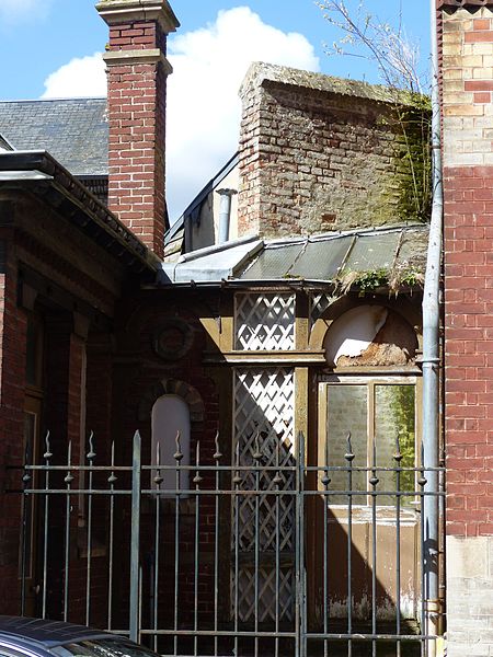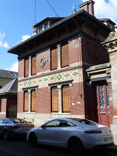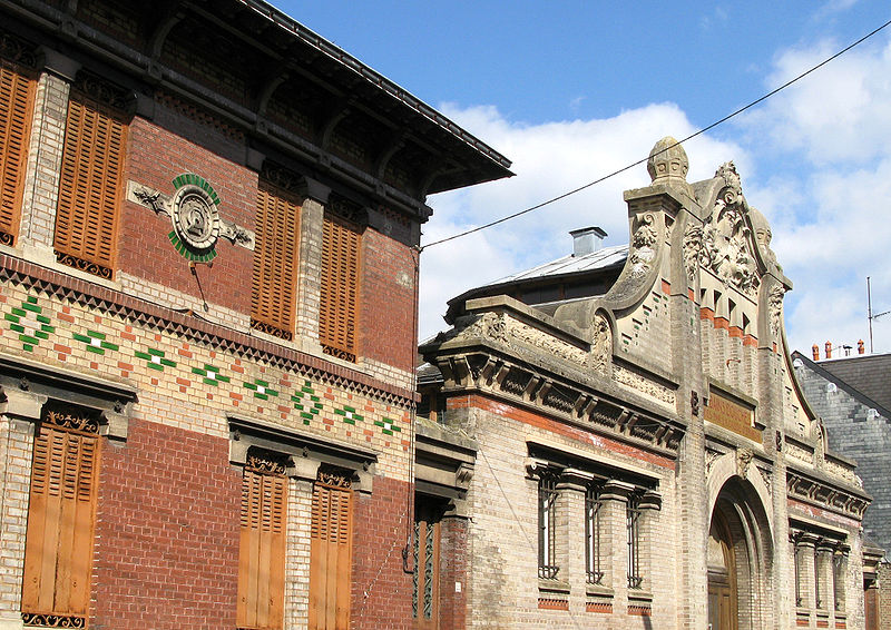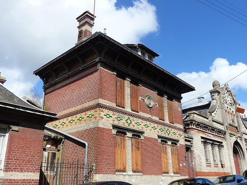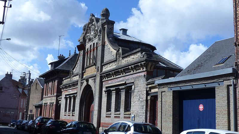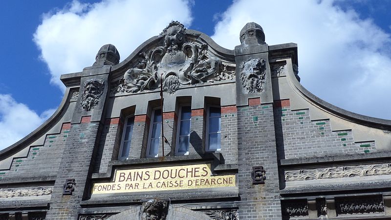 Les bains-douches d'Abbeville, construits en 1909–1910 d'après les plans des architectes Greux et Marchand, présentent une décoration sculptée réalisée par l'Amiénois Louis Leclabart (1876–1929), auteur notamment du monument aux morts d'Abbeville et de celui du stade Delique. Édifié sur l'emplacement de l'ancien quartier de cavalerie Saint-Joseph, le bâtiment est principalement en briques de sable et s'orne, en façade, d'un fronton en pierre sculpté de motifs végétaux et de mascarons. À l'intérieur, les vitraux sont de style Art nouveau. La création des bains-douches résulte de l'utilisation, au profit des habitants, des économies de la Caisse d'Épargne d'Abbeville, qui fit construire cet établissement moderne, resté en activité jusque dans la seconde moitié du XXe siècle. L'administration municipale avait un moment envisagé de les installer à la Halle aux Toiles. La cérémonie de la pose de la première pierre, le 17 juillet 1909, fut présidée par le maire Charles Bignon, en présence des adjoints Henry Picquet et Bertin ; les assistants se rendirent ensuite à l'Hôtel de la Caisse d'Épargne pour la signature du procès-verbal. Les bains-douches ont été inscrits aux Monuments historiques en totalité le 23 juillet 2003 ; l'inscription concerne aussi les façades et toitures de la maison de gardien attenante. Vendus par la mairie en 2005, les locaux ont été loués à un salon de coiffure entre 2012 et 2014.